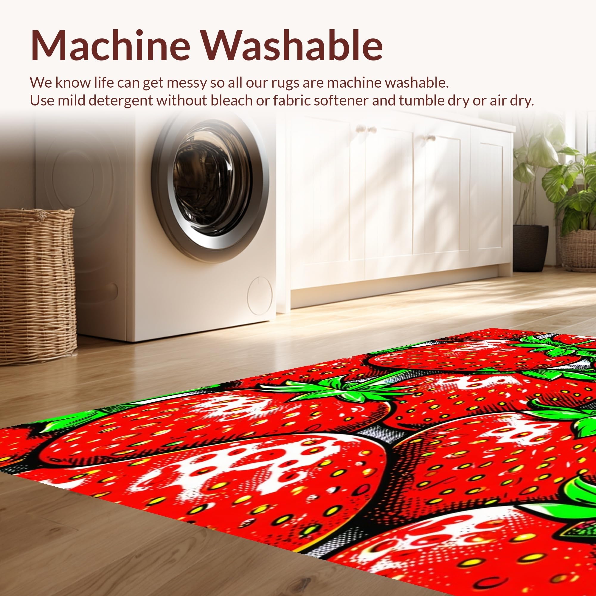 - Machine Washable: Our rugs can be easily thrown in the wash machine.