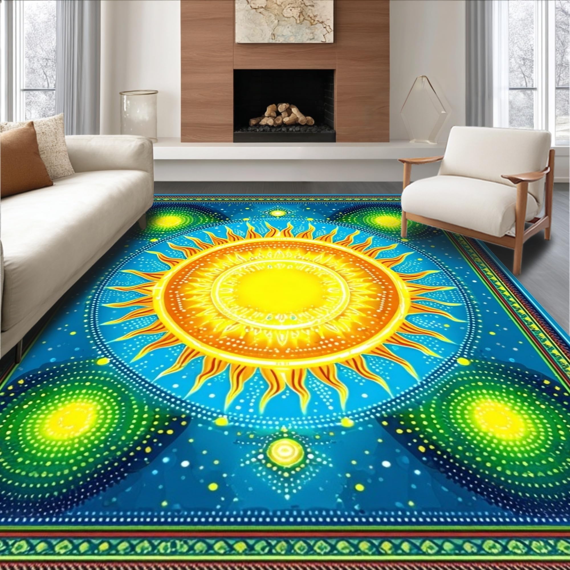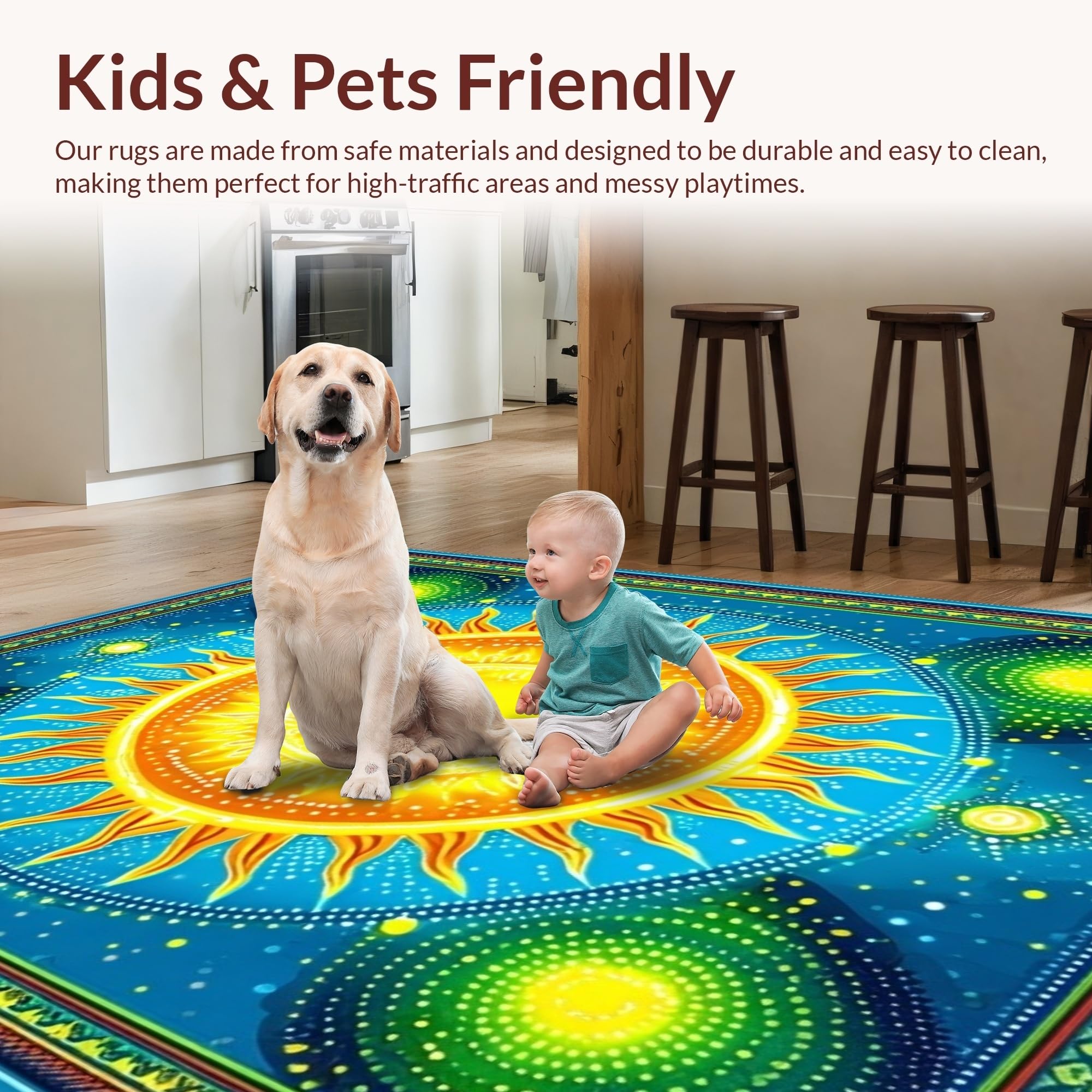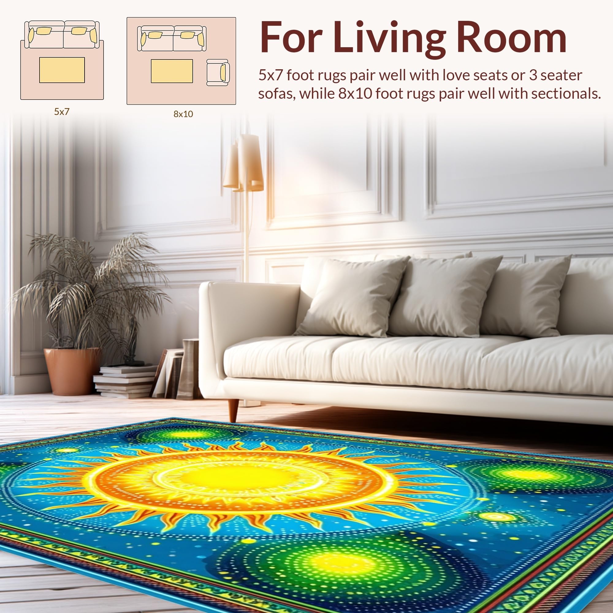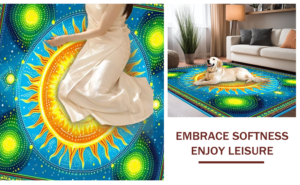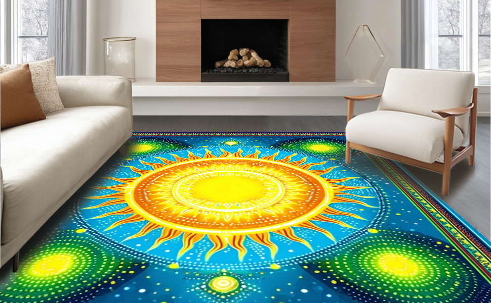 Ultra Soft Area Rug, Non Slip, Stain Resistant, Washable Area Rugs for Living Room, Bedroom, Lively Retro Circle Pattern(Blue) Overview: