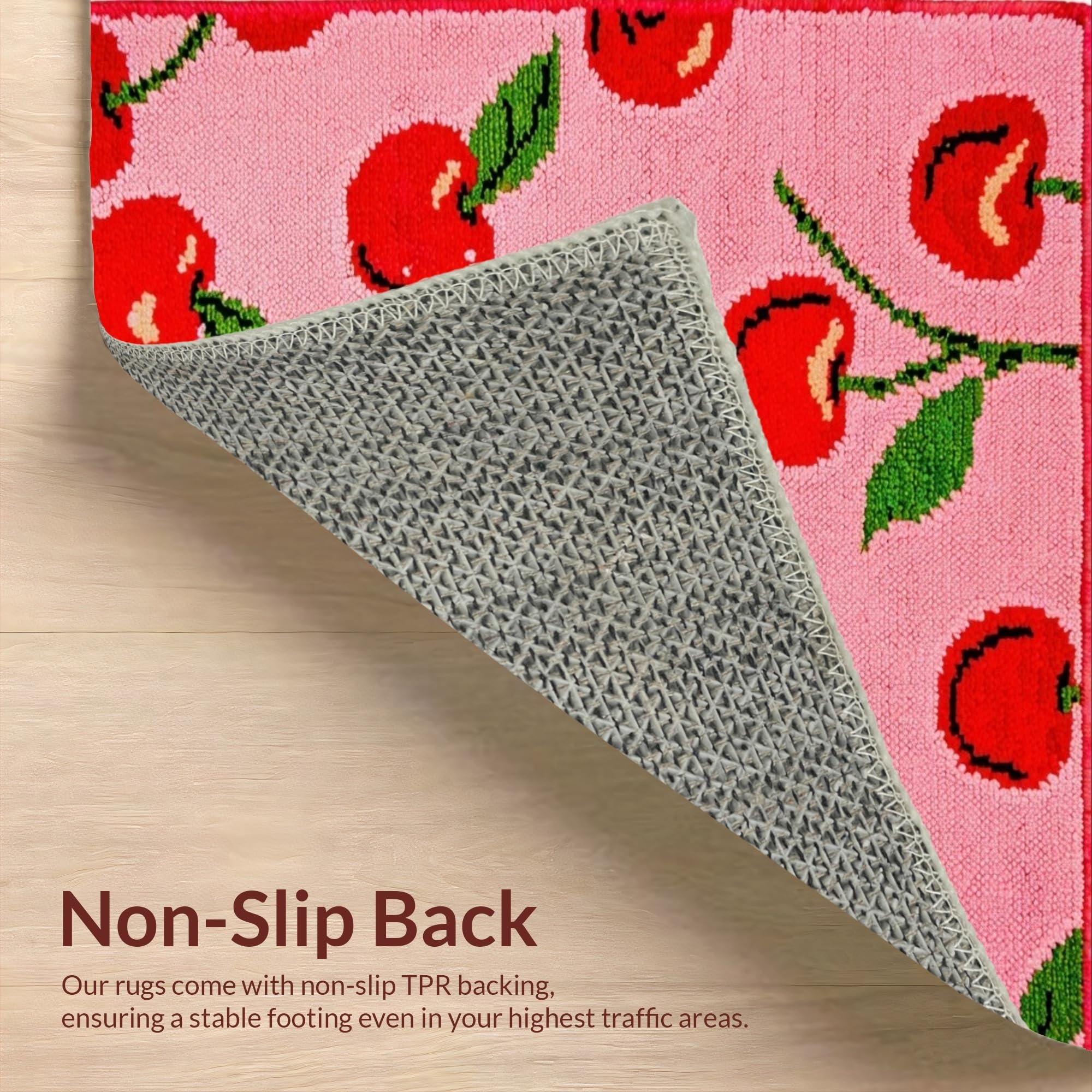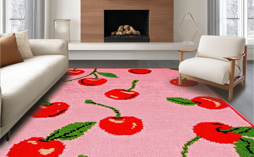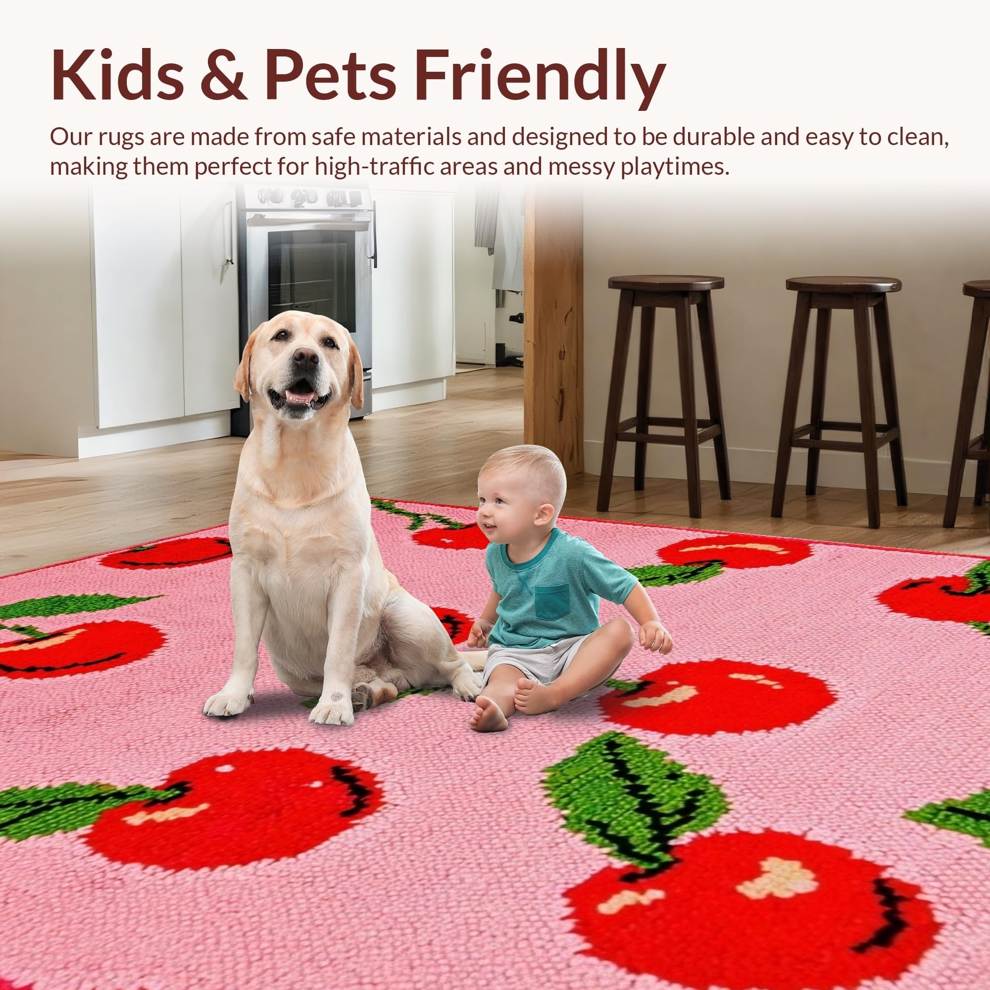Ultra Soft Area Rug, Non Slip, Stain Resistant, Washable Area Rugs for Living Room, Bedroom, Lively Retro Fruit Arrangement(Pink) Overview: