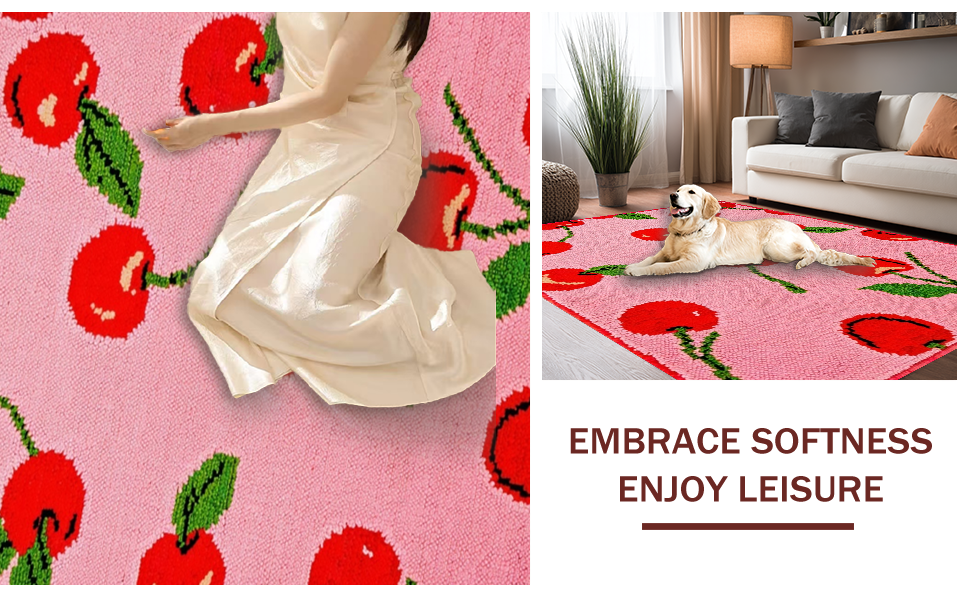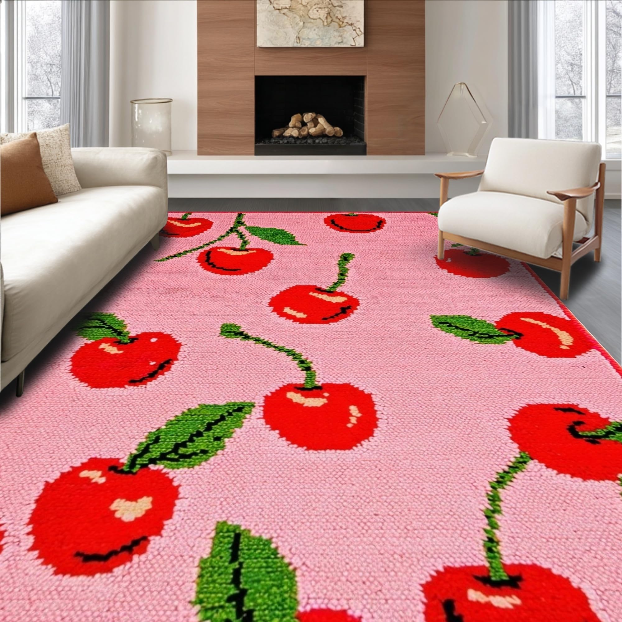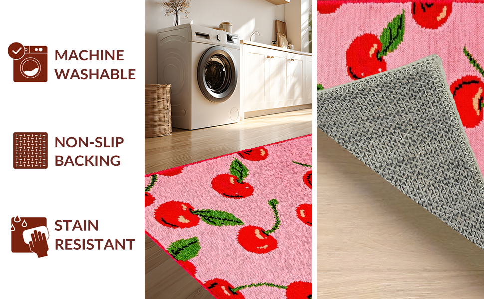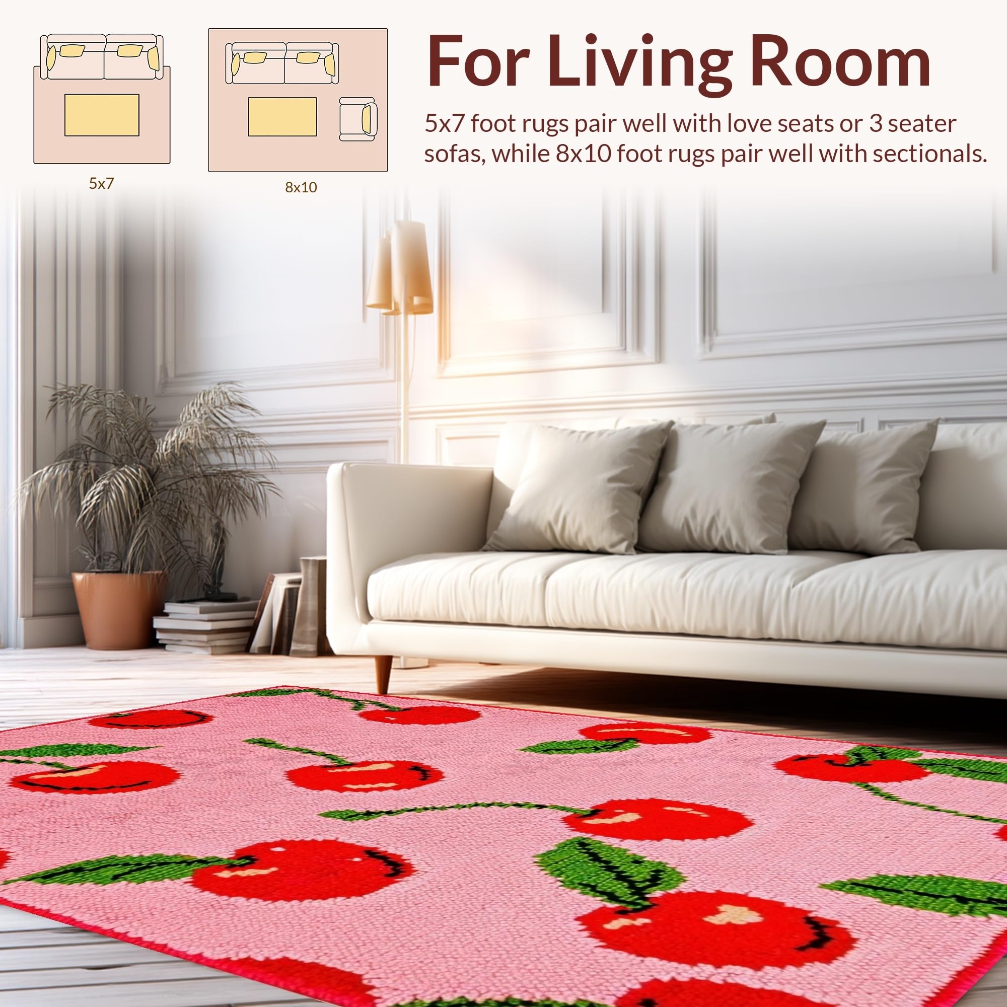 Ultra Soft Area Rug, Non Slip, Stain Resistant, Washable Area Rugs for Living Room, Bedroom, Lively Retro Fruit Arrangement(Pink) Overview: