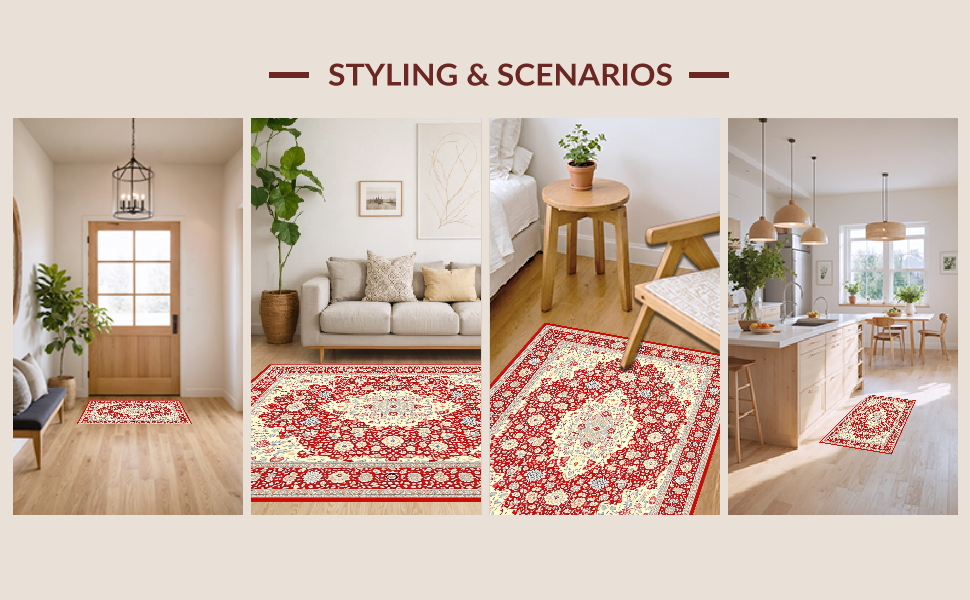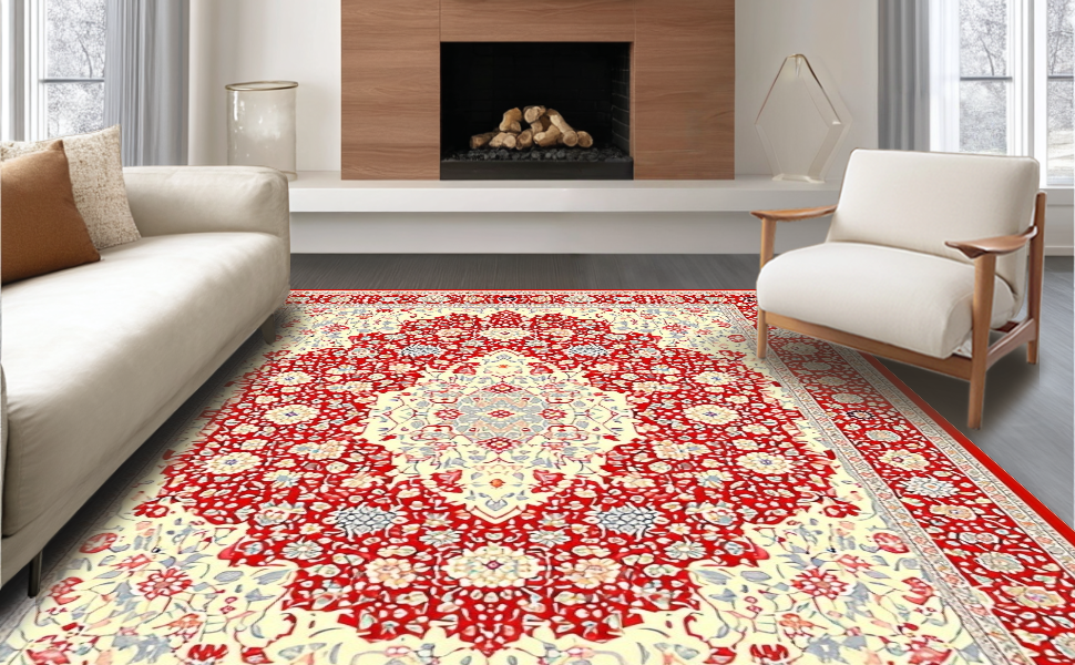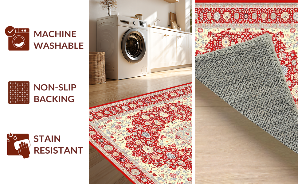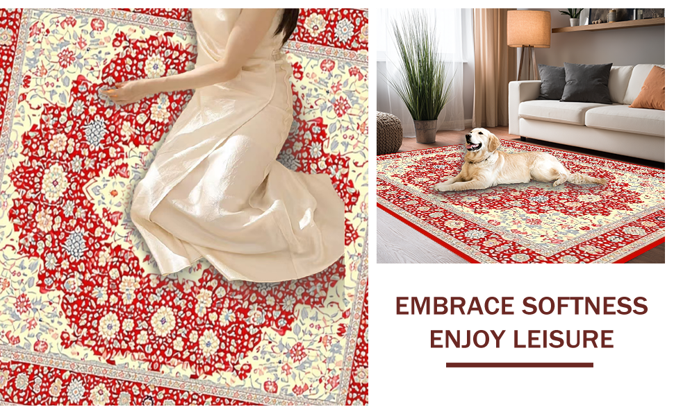 Ultra Soft Area Rug, Non Slip, Stain Resistant, Washable Area Rugs for Living Room, Bedroom, Lively Rustic Charm with Texture(Red) Overview: