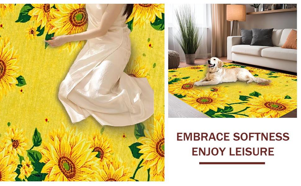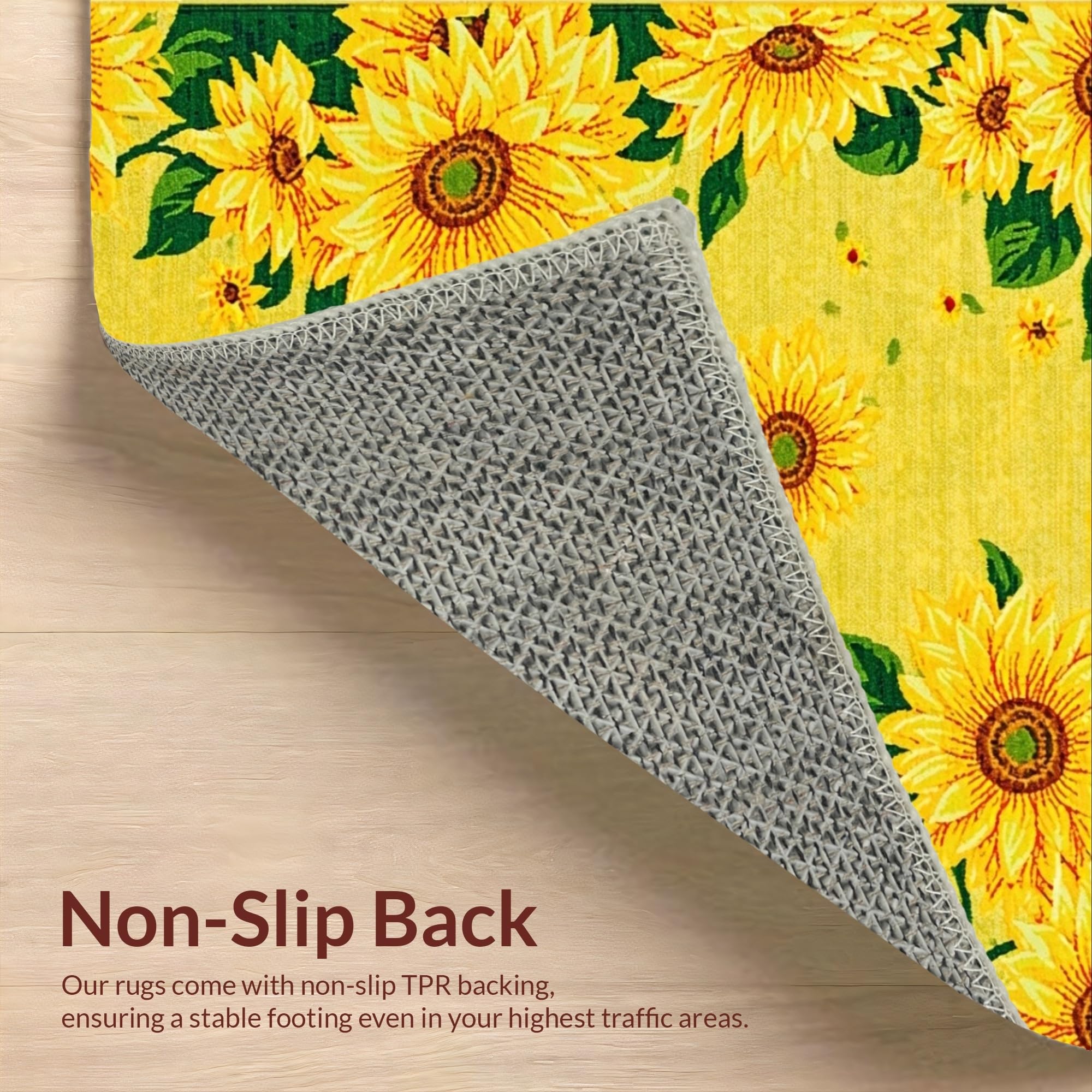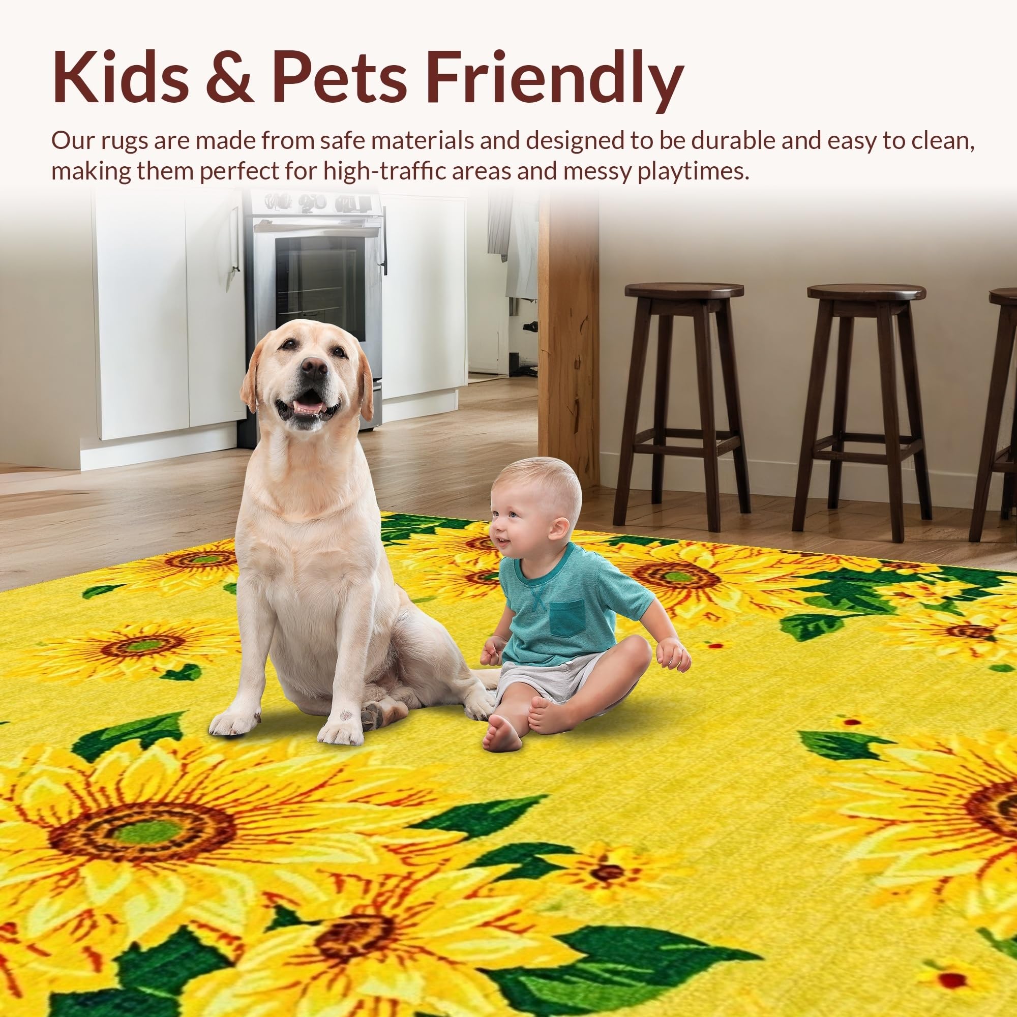 Ultra Soft Area Rug, Non Slip, Stain Resistant, Washable Area Rugs for Living Room, Bedroom, Lively Rustic Sunflower Accents(Yellow) Overview: