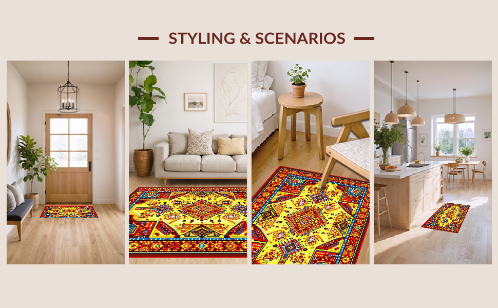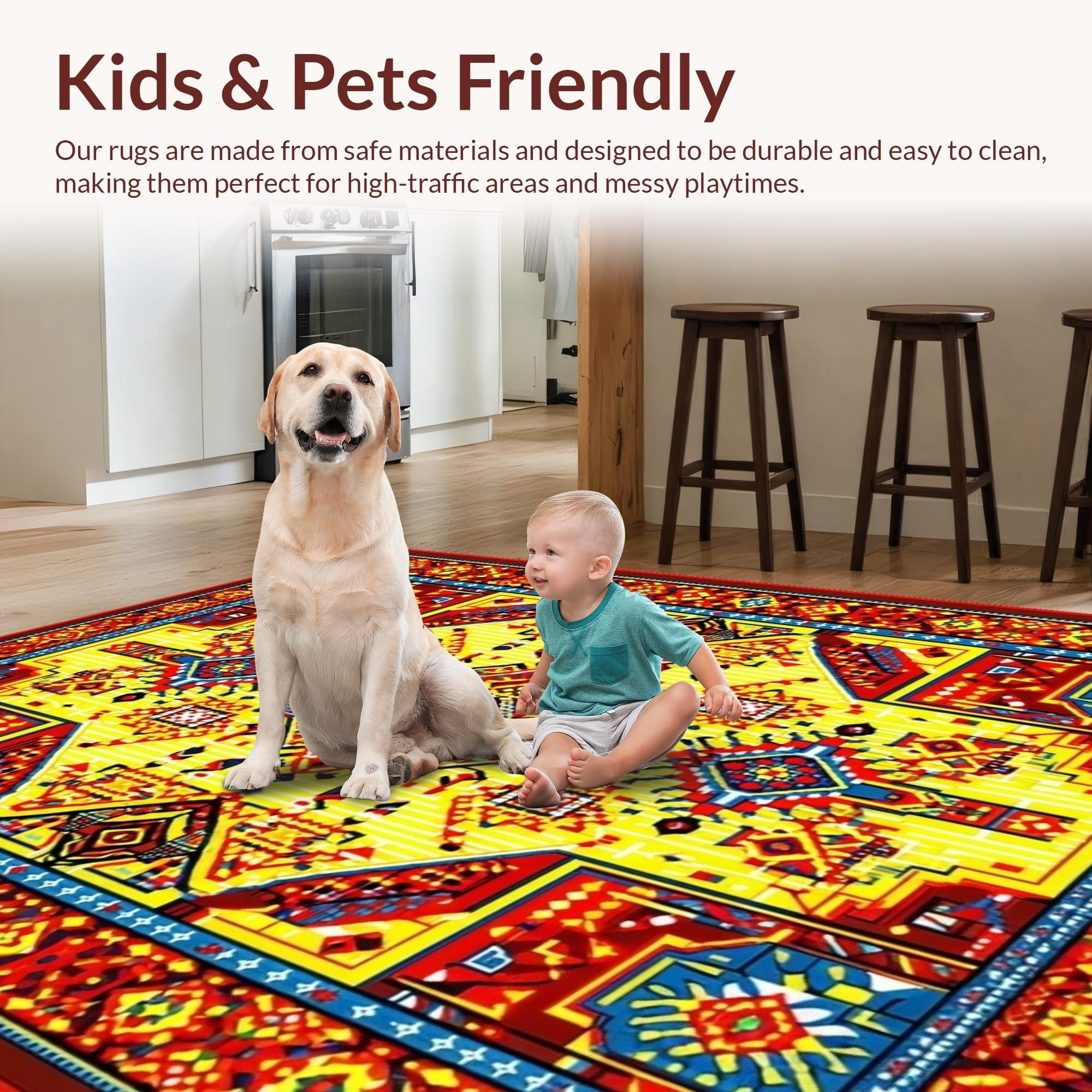 Ultra Soft Area Rug, Non Slip, Stain Resistant, Washable Area Rugs for Living Room, Bedroom, Lively Rustic Textured Geometry(Yellow) Overview: