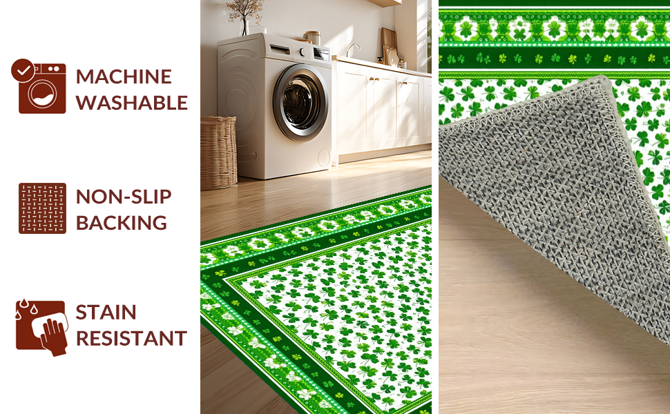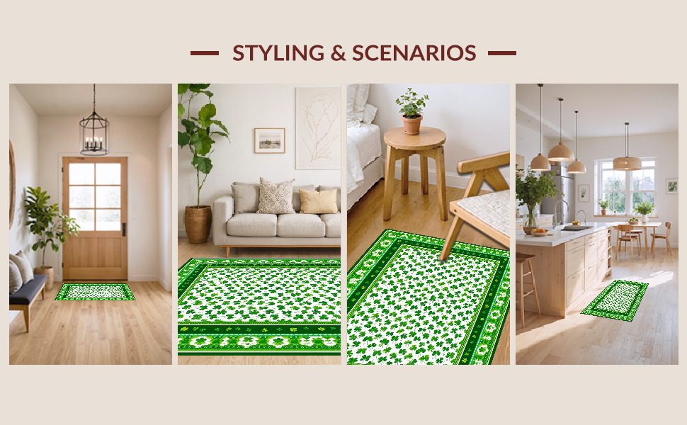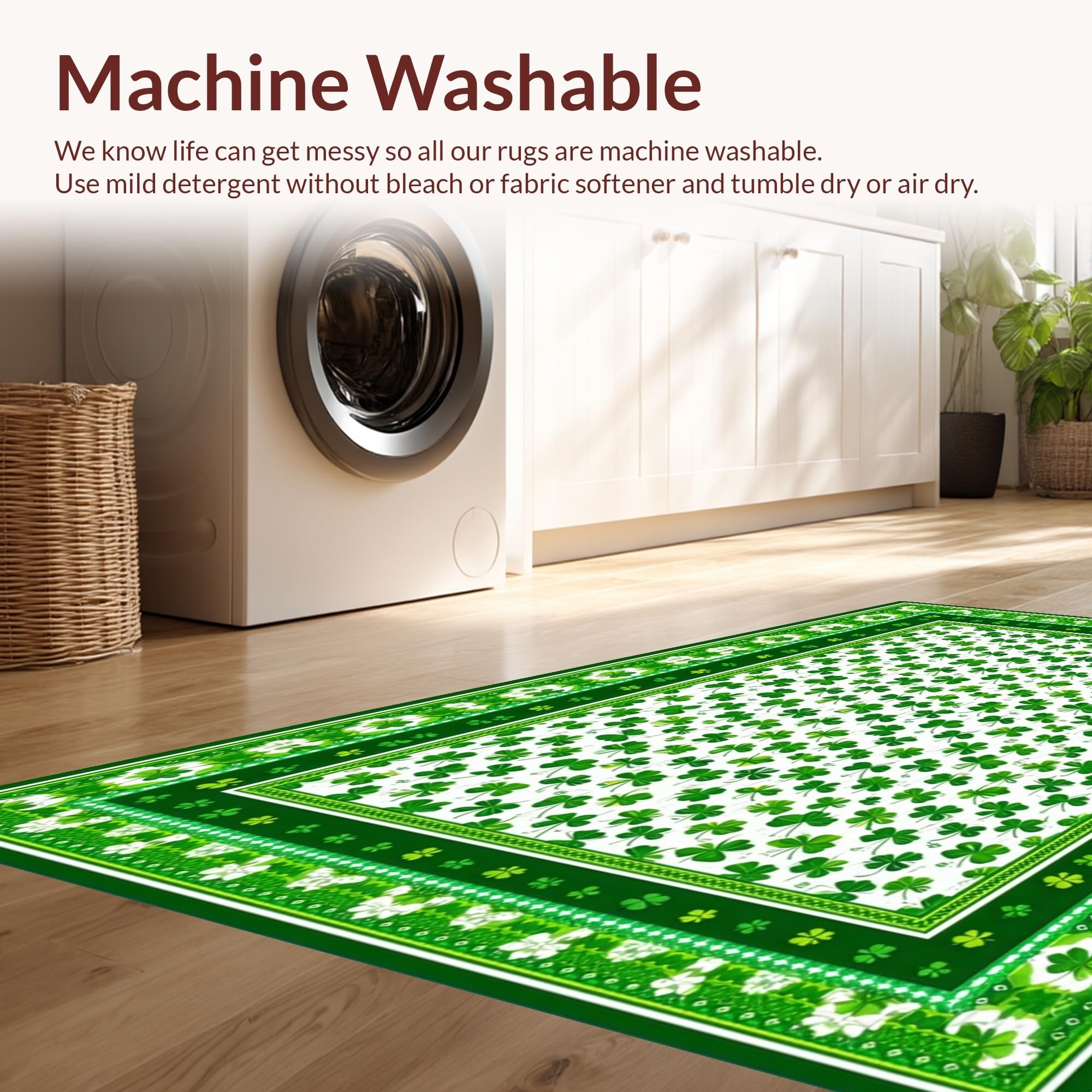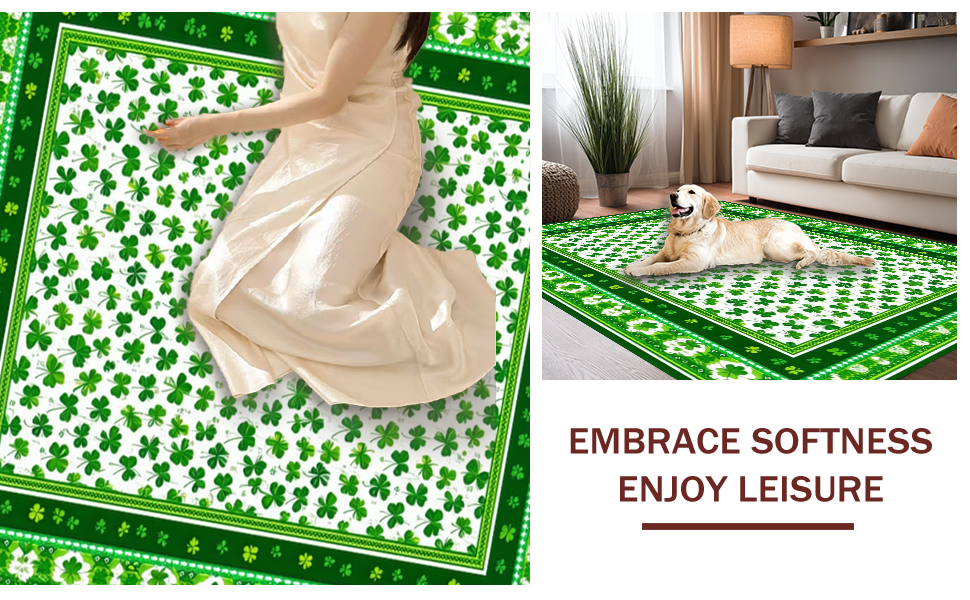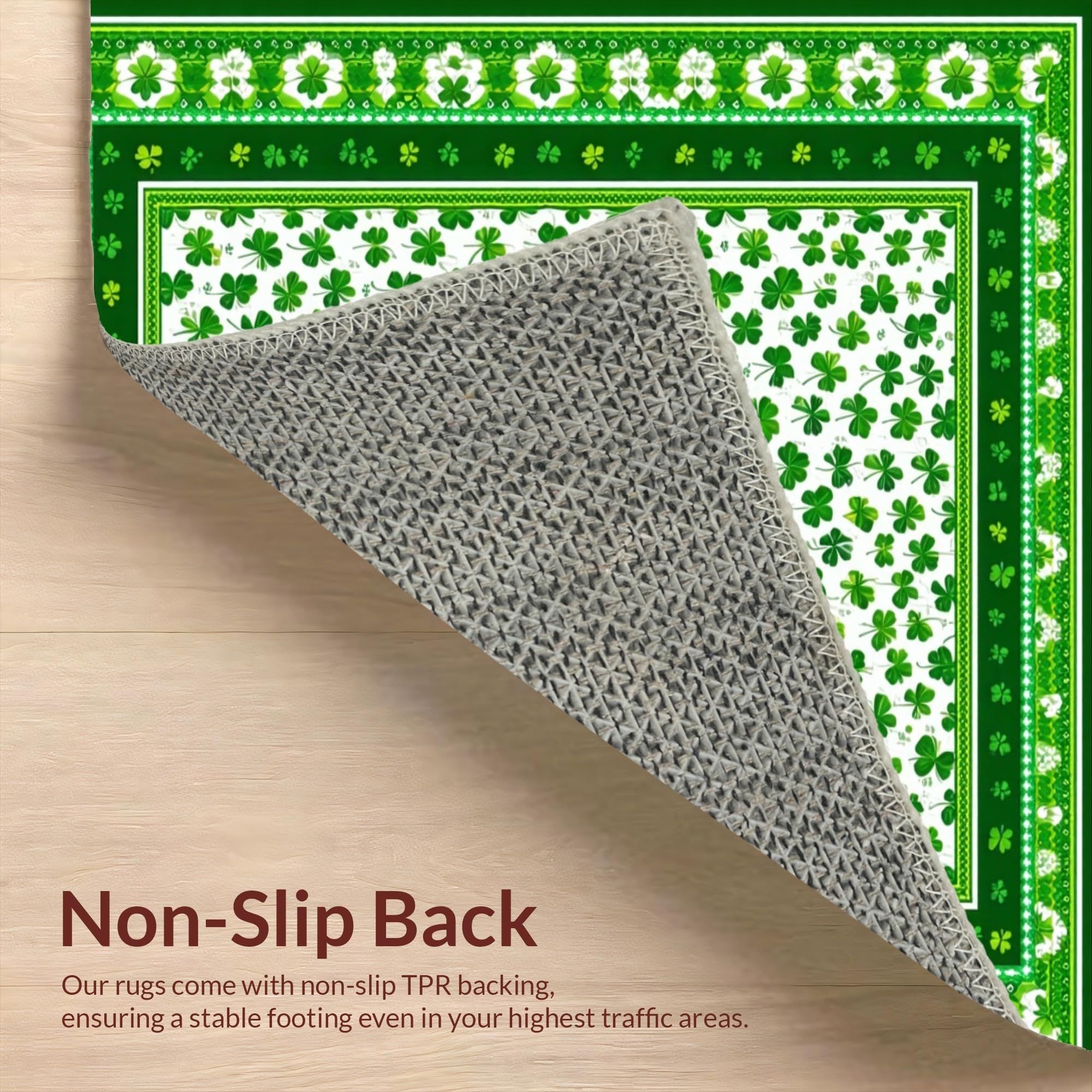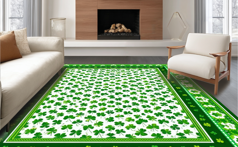 Ultra Soft Area Rug, Non Slip, Stain Resistant, Washable Area Rugs for Living Room, Bedroom, Lively Seasonal Clover Welcome Decor(Green) Overview: