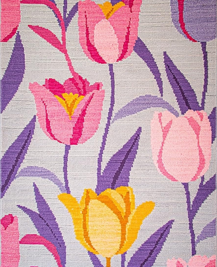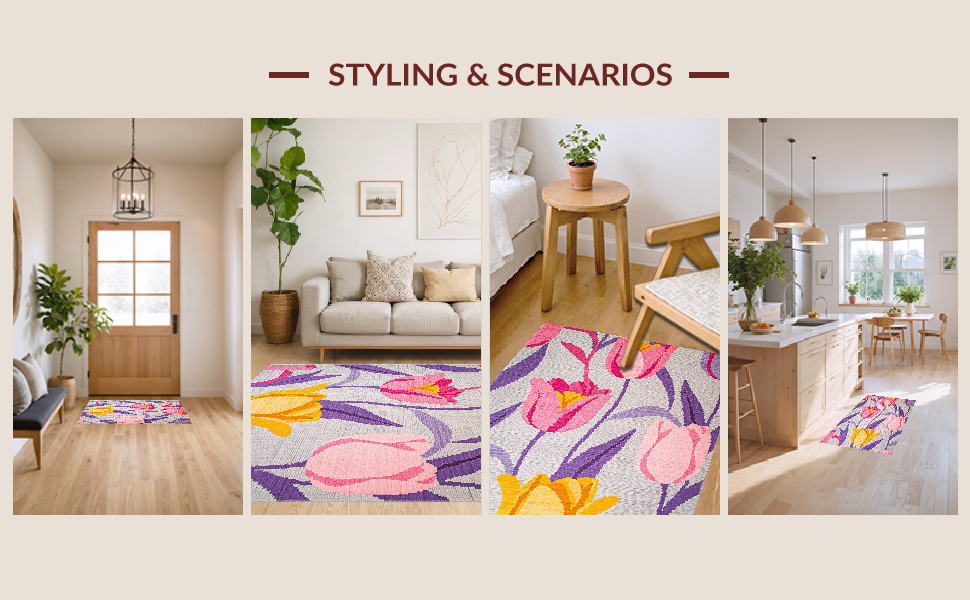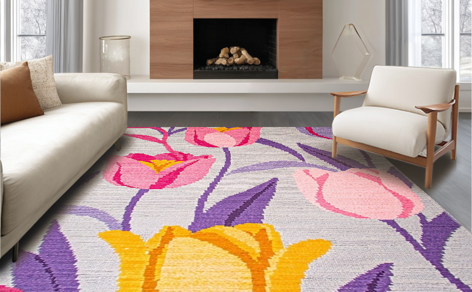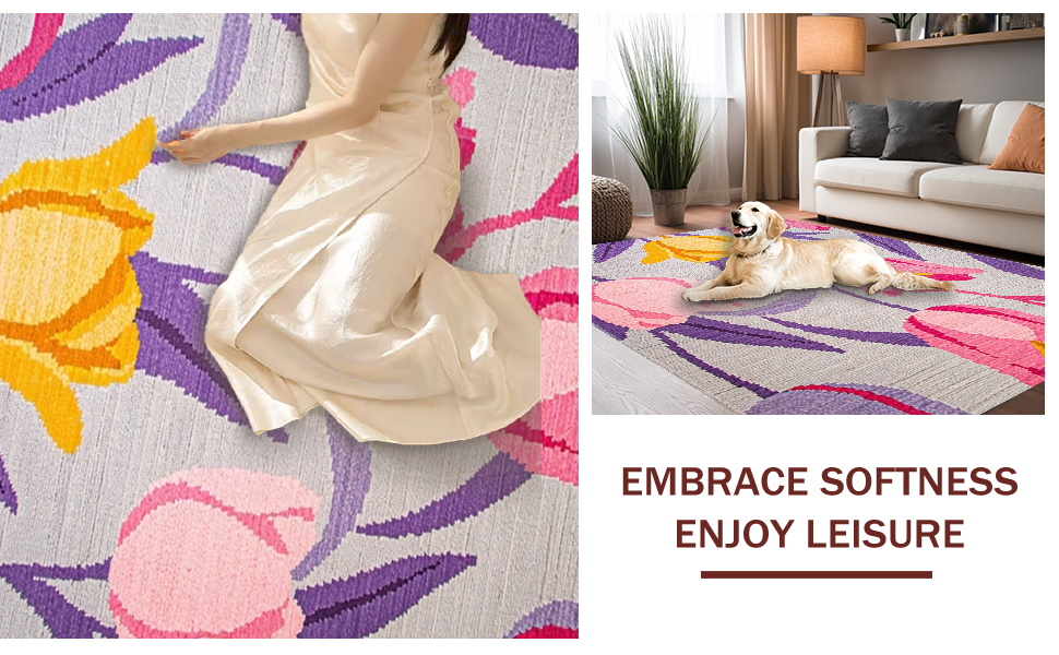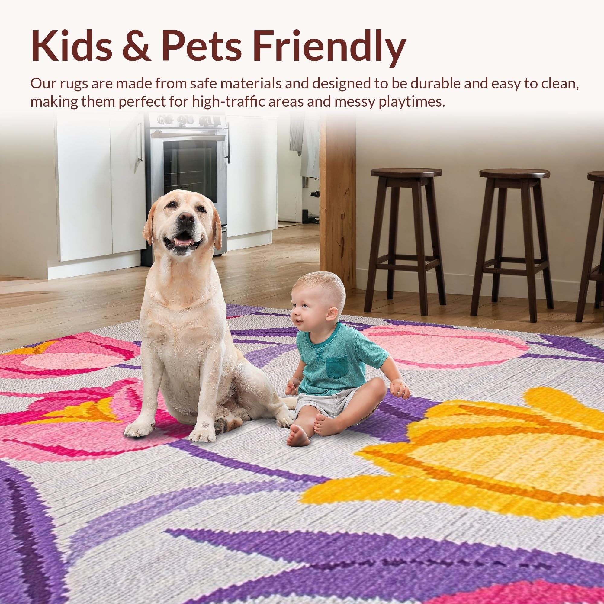 Ultra Soft Area Rug, Non Slip, Stain Resistant, Washable Area Rugs for Living Room, Bedroom, Lively Seasonal Flower Motif(Pink) Overview: