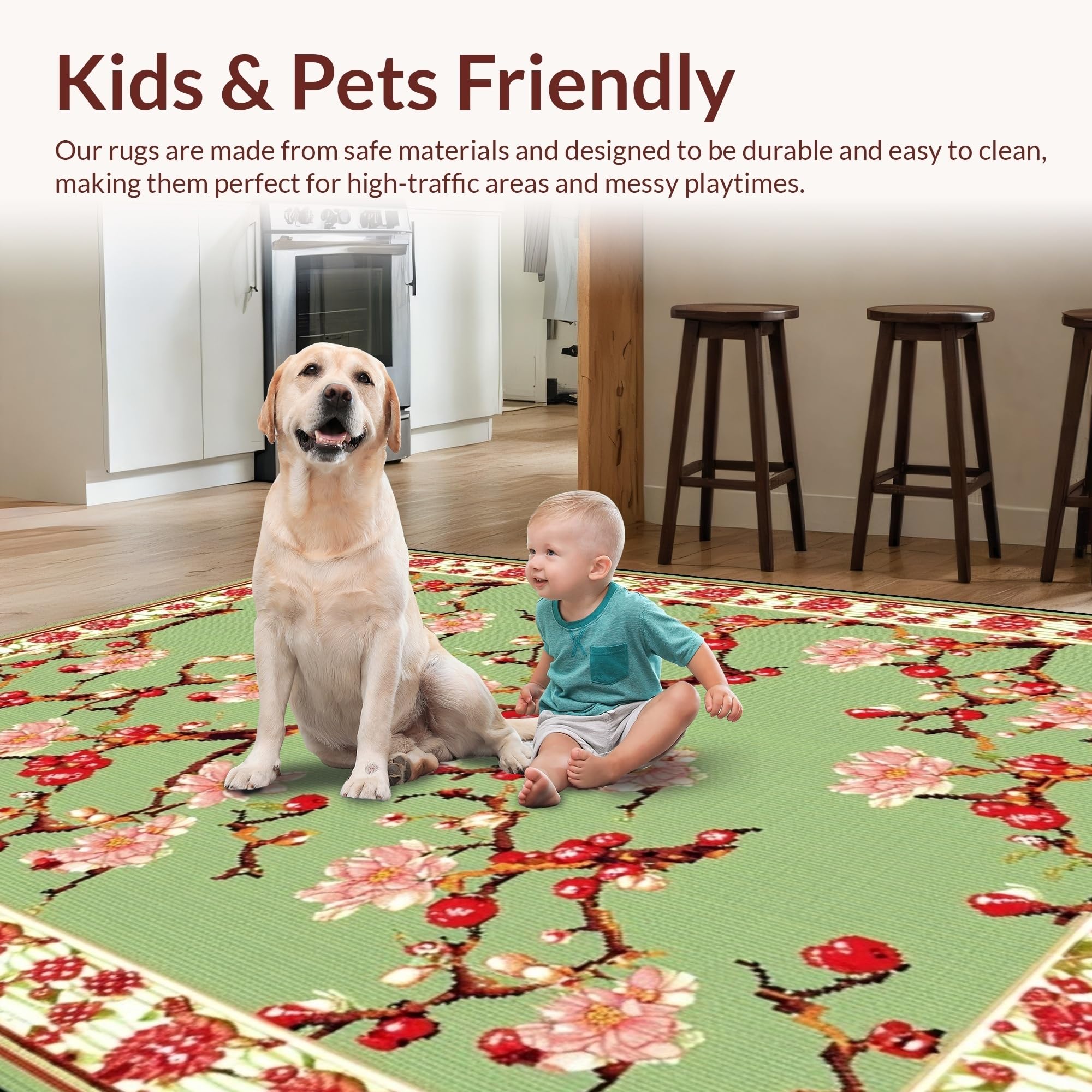 Ultra Soft Area Rug, Non Slip, Stain Resistant, Washable Area Rugs for Living Room, Bedroom, Lively Soft Abstract Patterns(Green) Overview: