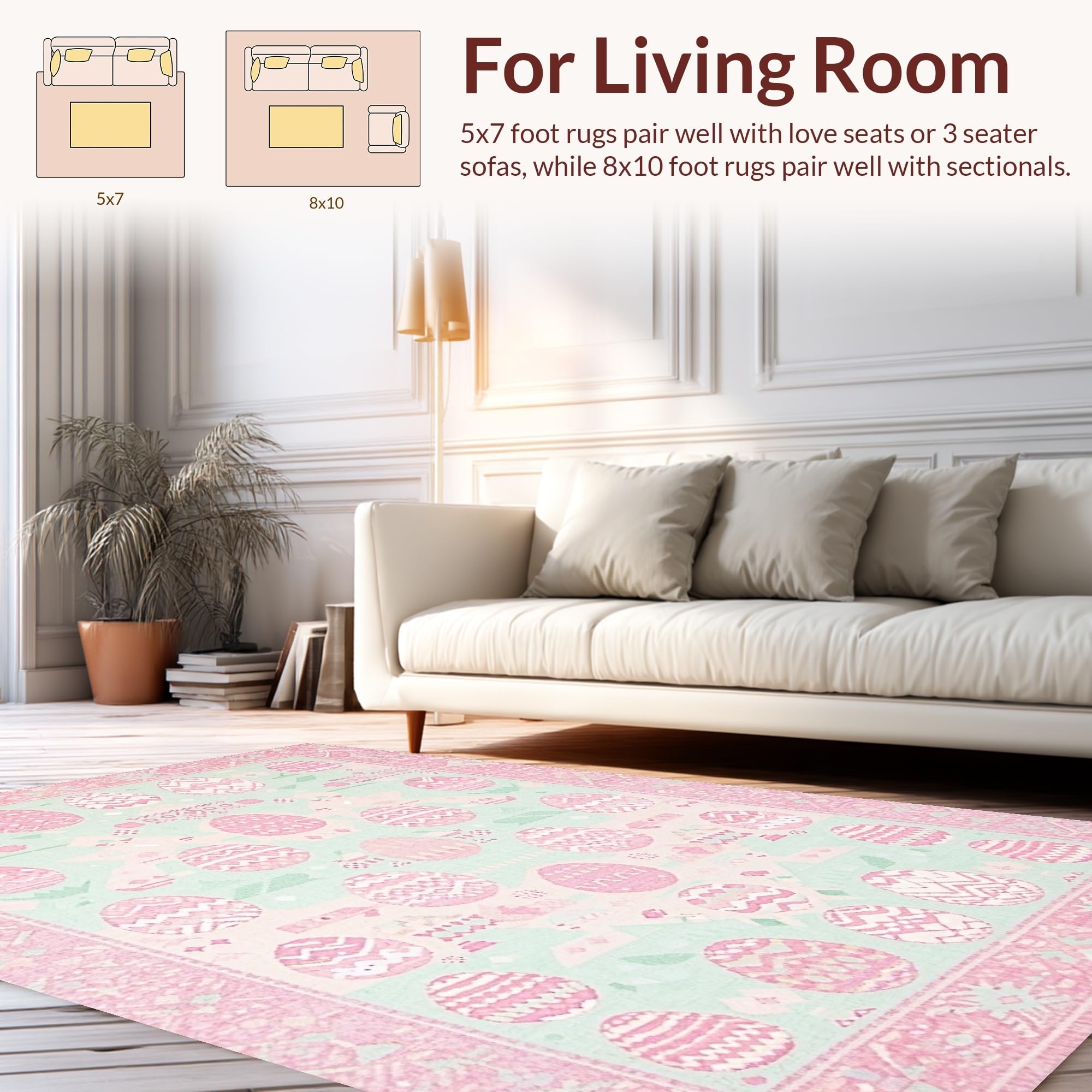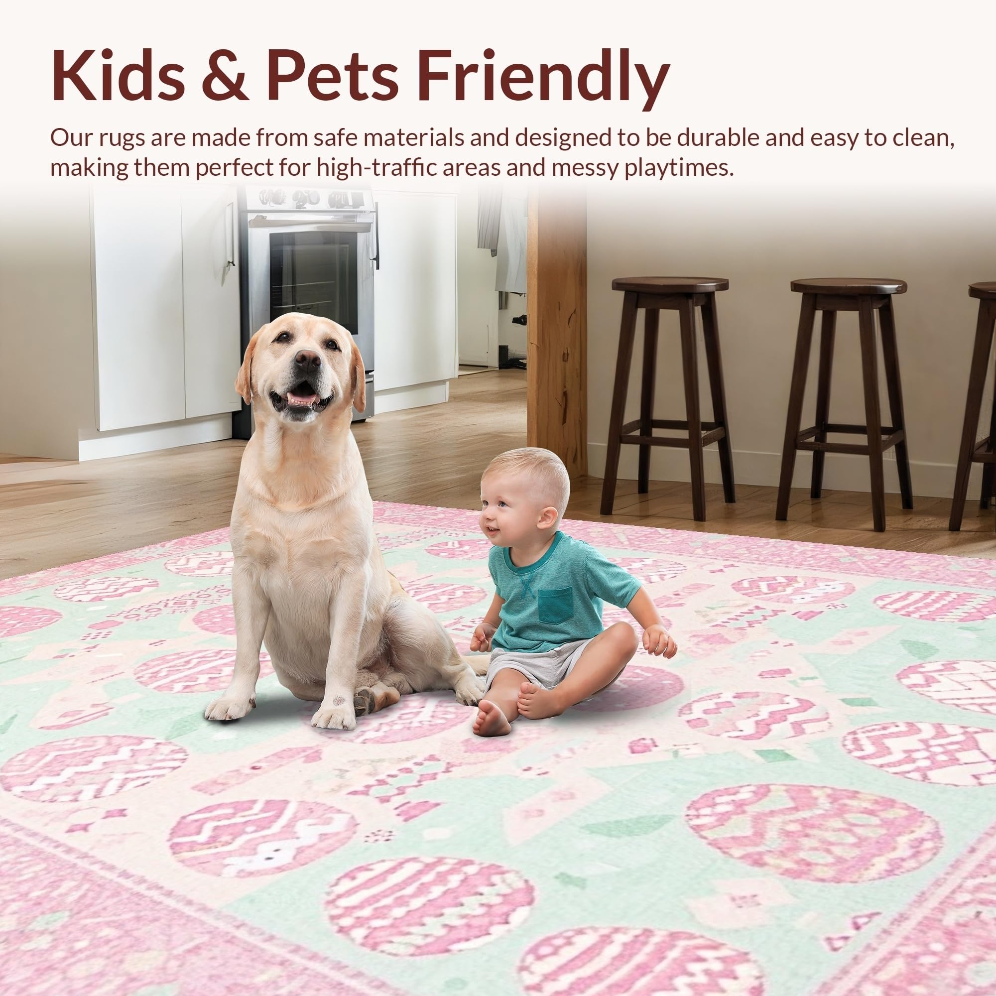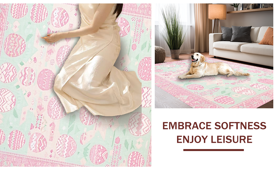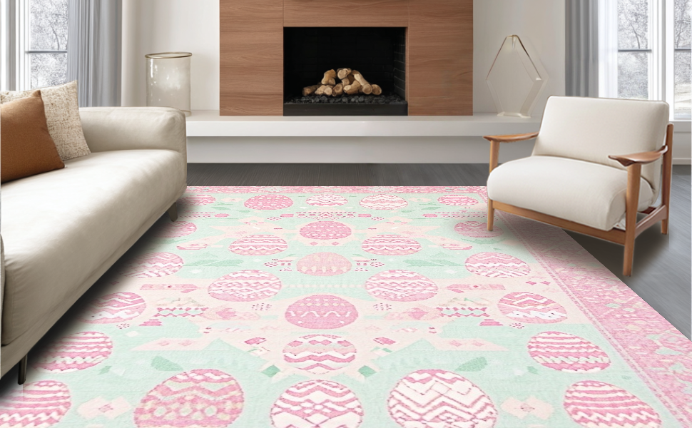 Ultra Soft Area Rug, Non Slip, Stain Resistant, Washable Area Rugs for Living Room, Bedroom, Lively Springtime Color Fusion(Pink) Overview: