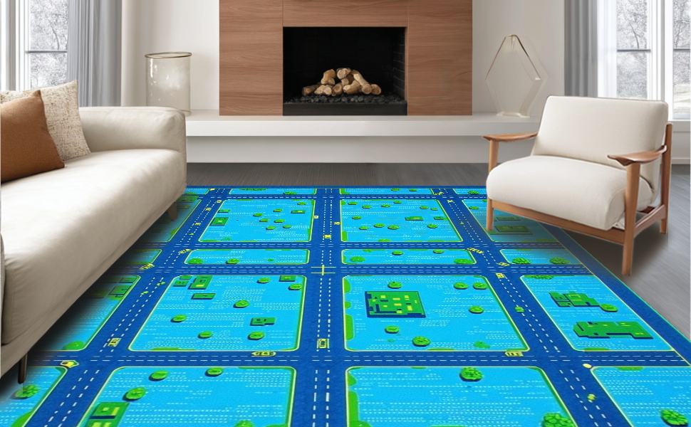 Ultra Soft Area Rug, Non Slip, Stain Resistant, Washable Area Rugs for Living Room, Bedroom, Lively Townscape Imaginative Surface(Blue) Overview:
