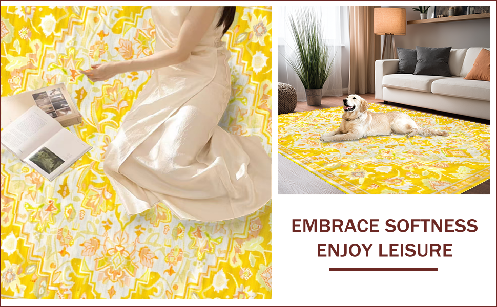 Ultra Soft Area Rug, Non Slip, Stain Resistant, Washable Area Rugs for Living Room, Bedroom, Lively Yellow Abstract Aesthetic(Yellow) Overview: