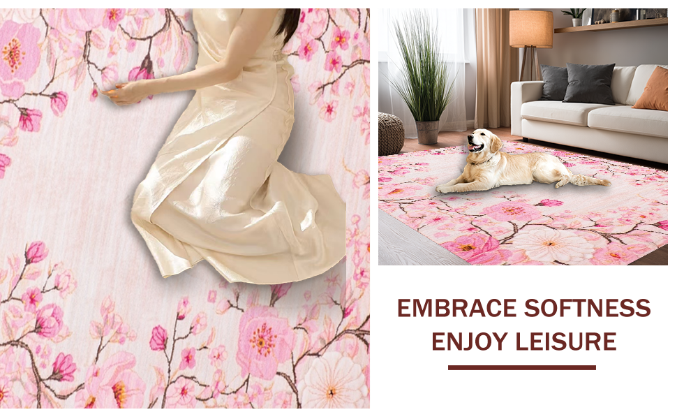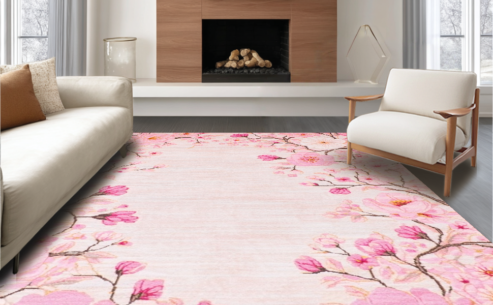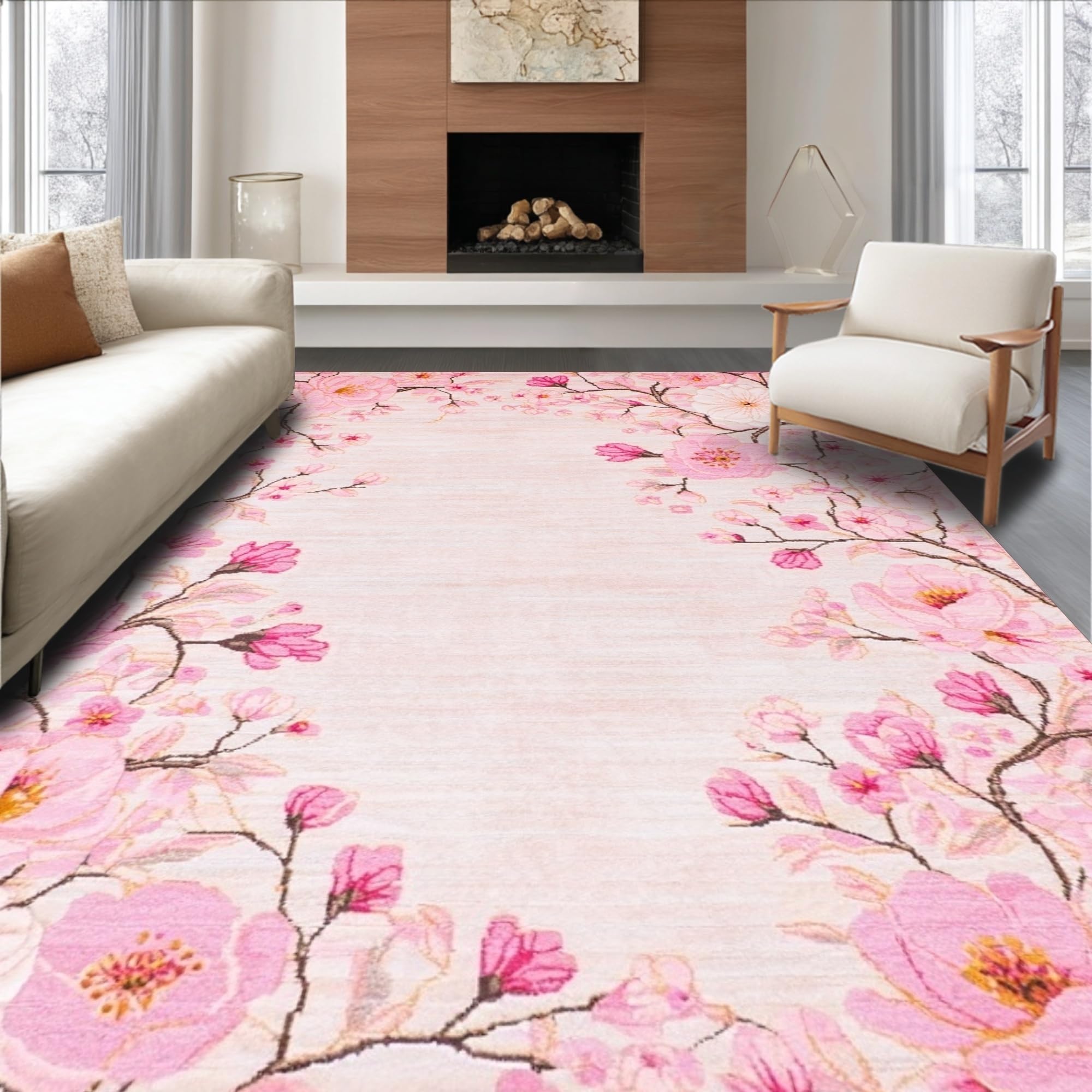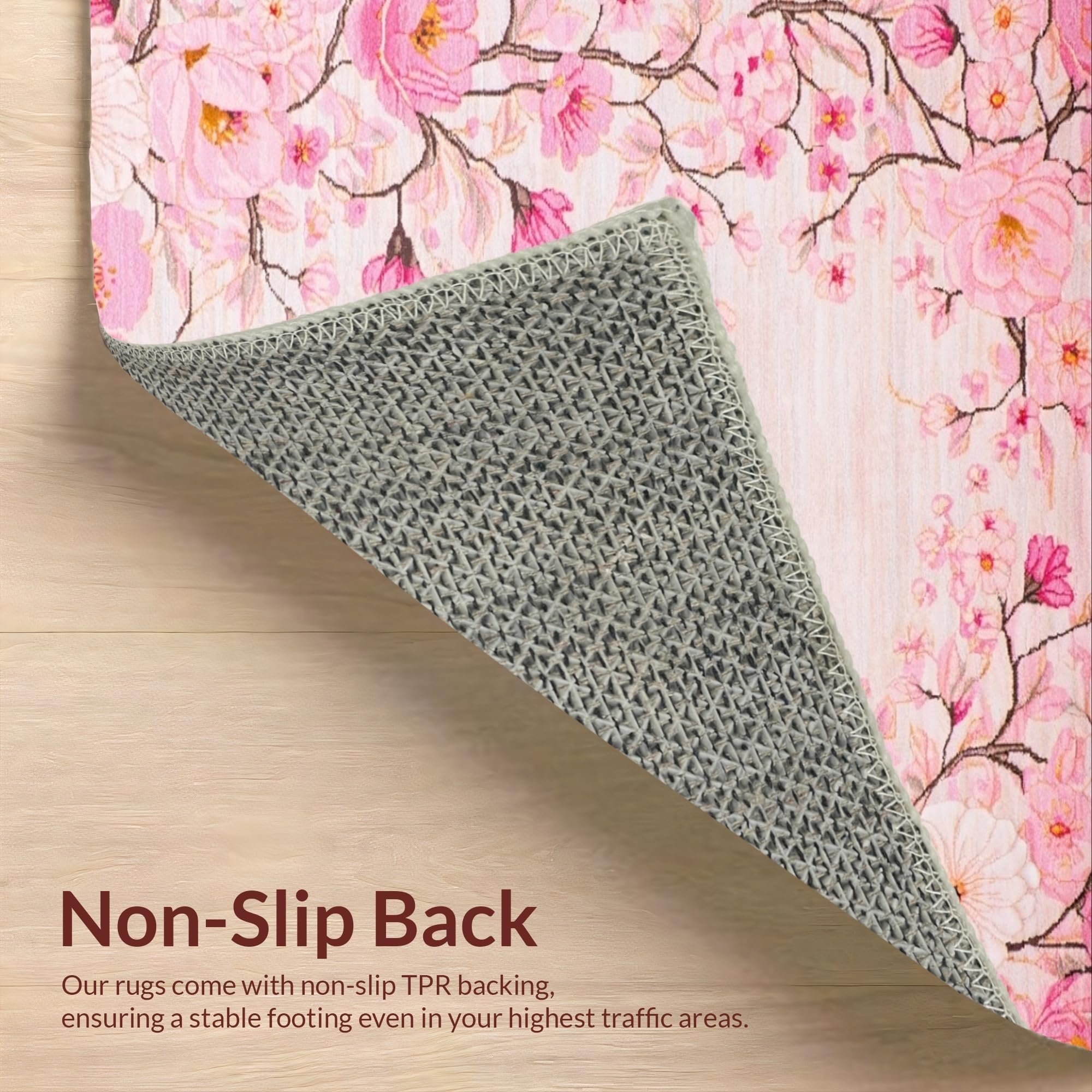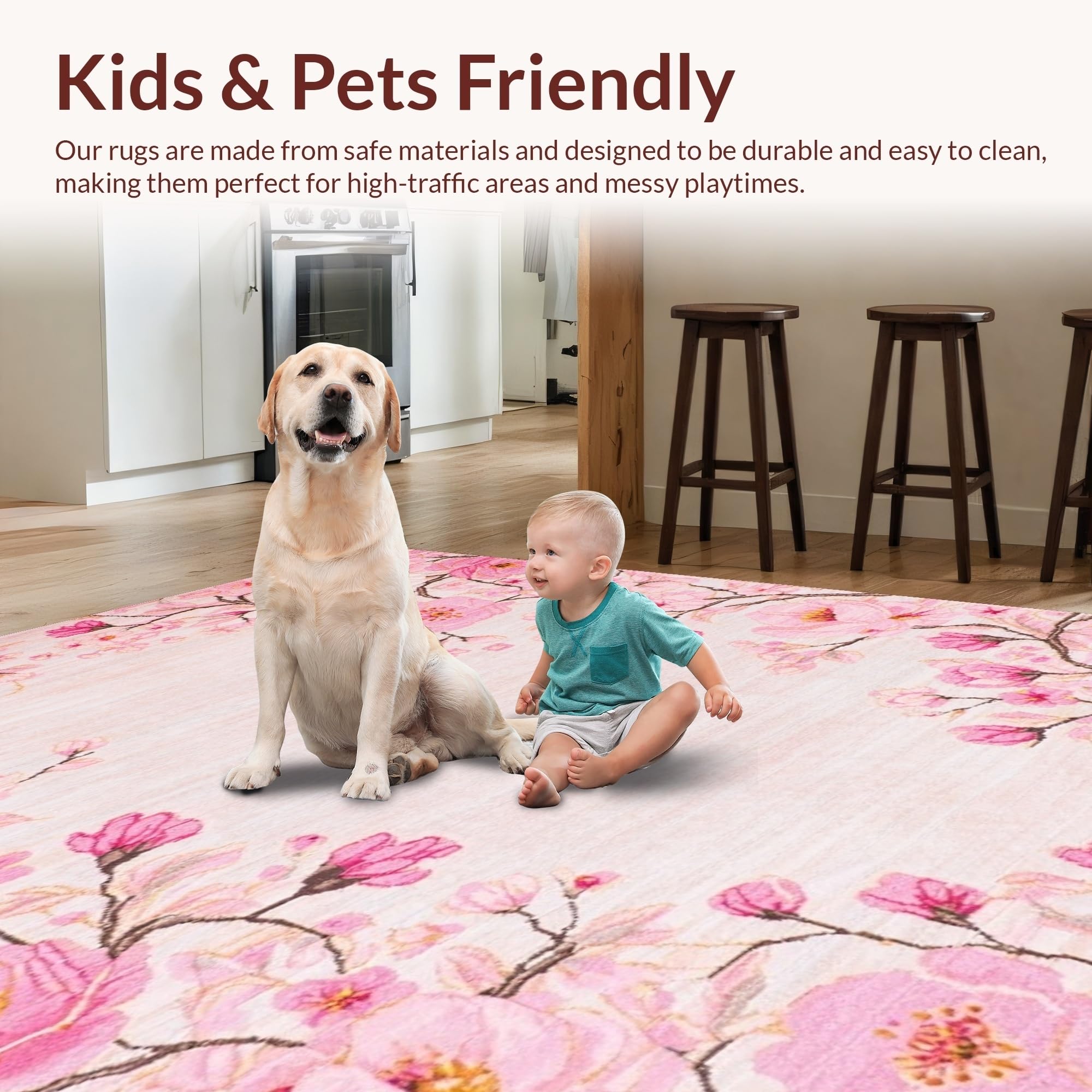 Ultra Soft Area Rug, Non Slip, Stain Resistant, Washable Area Rugs for Living Room, Bedroom, Lovely Spring-Inspired Circle Pattern(Pink) Overview: