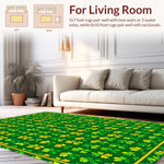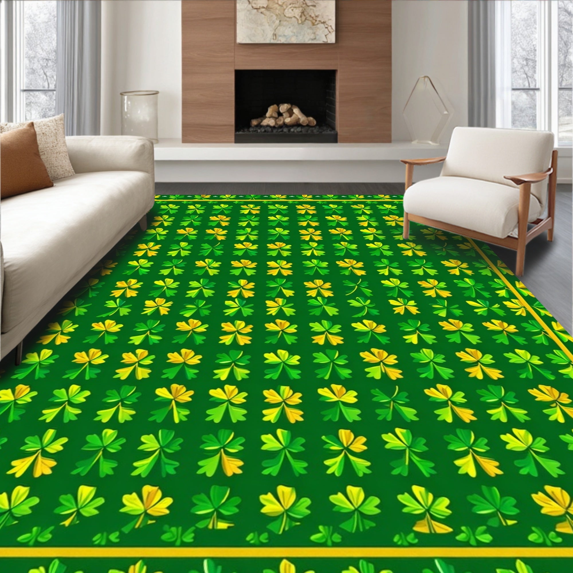 Flatwoven High Traffic Area Rug, Lucky Shamrock Motif Embellishment, Non Slip, Stain Resistant, Washable Area Rugs for Living Room, Bedroom (Green) Overview: