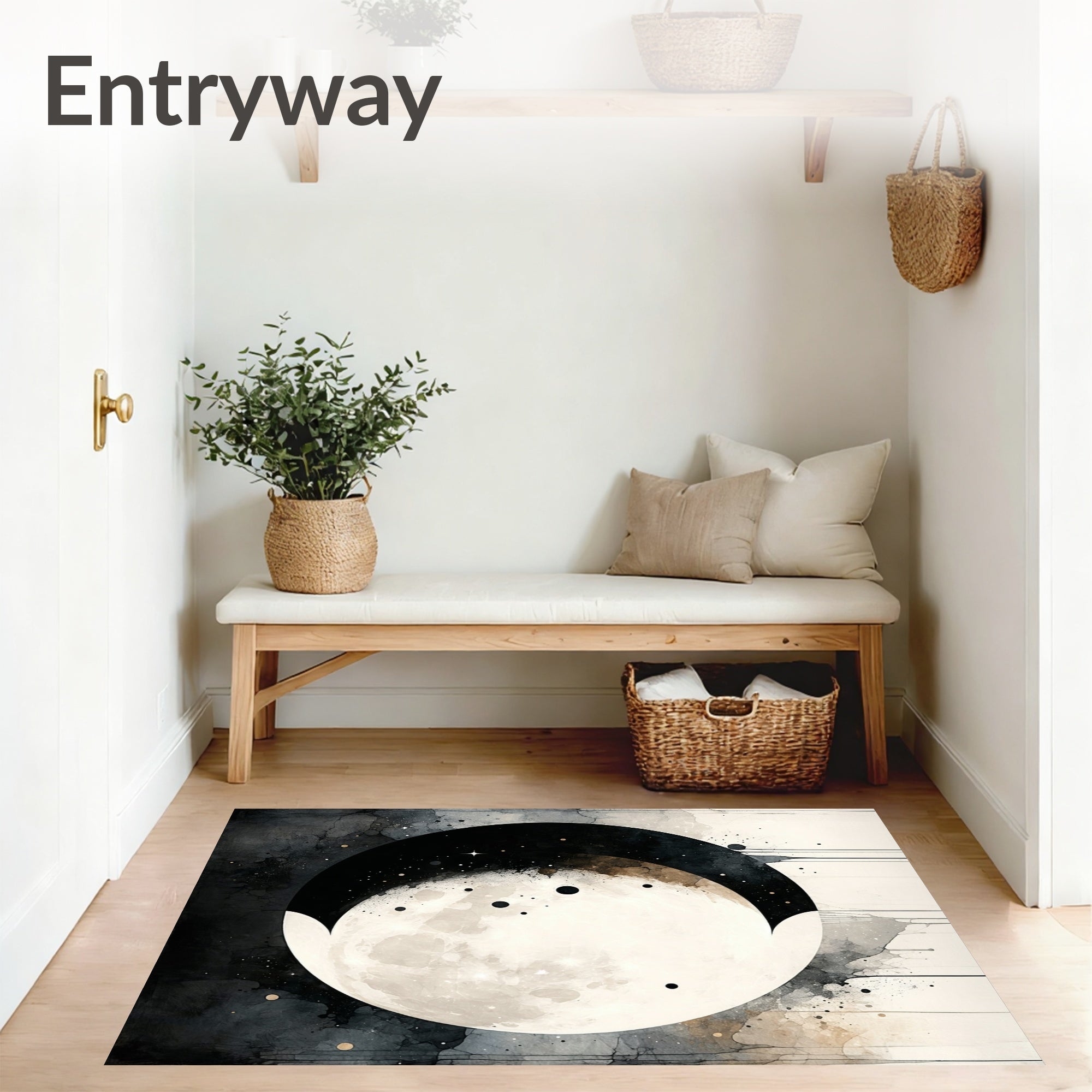 Ultra Soft Area Rug, Non Slip, Stain Resistant, Washable Area Rugs for Living Room, Bedroom, Lunar Eclipse Area Taupe & Cream Moon Phase Witchy Accent(Gray) Overview:
