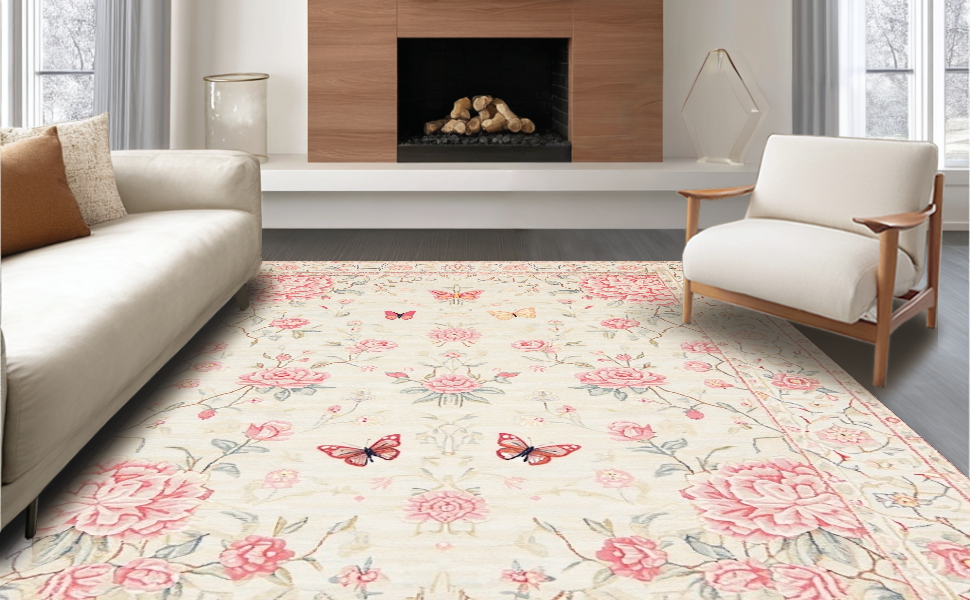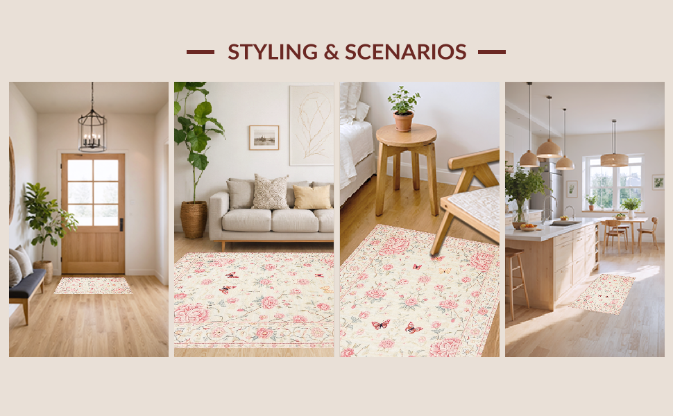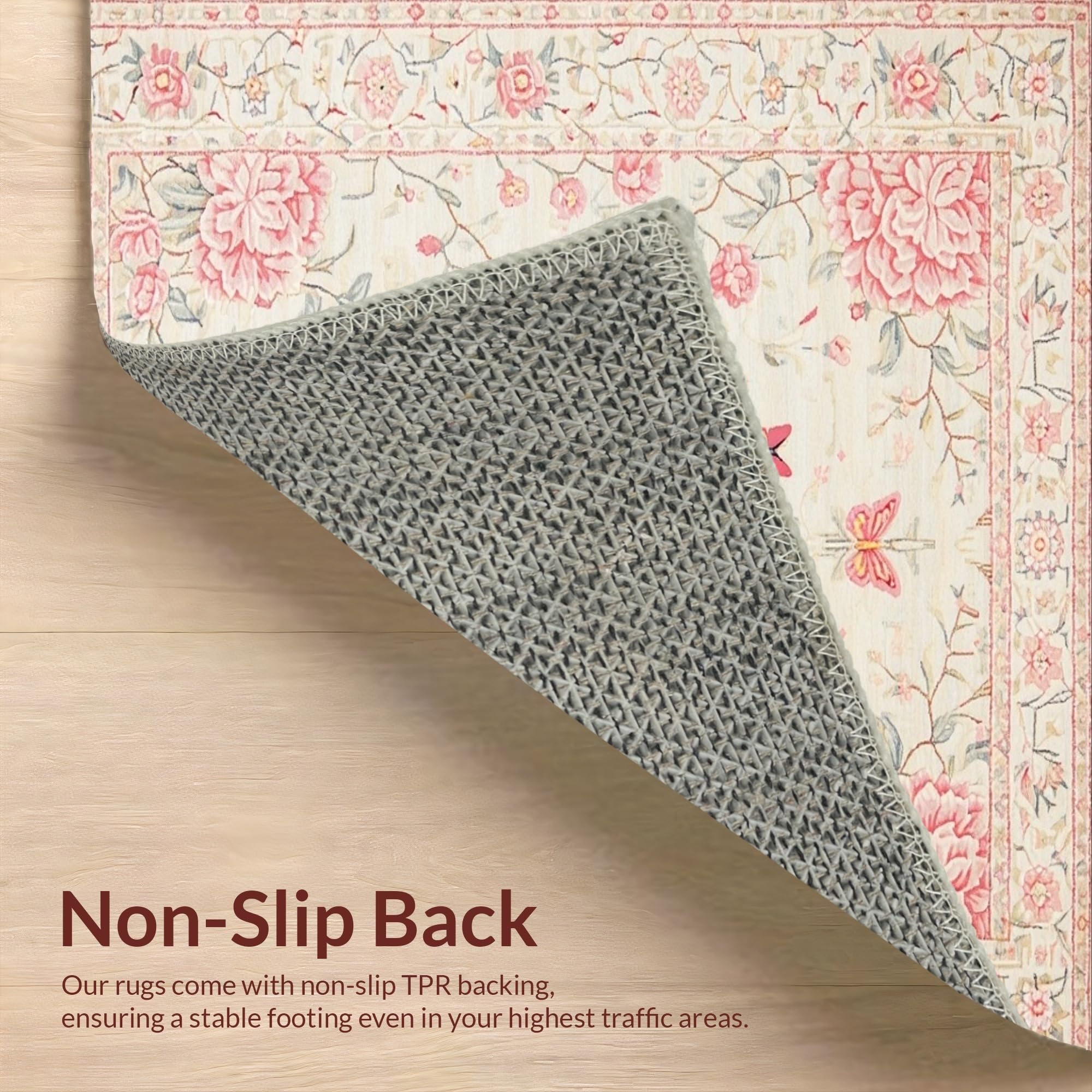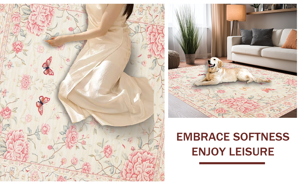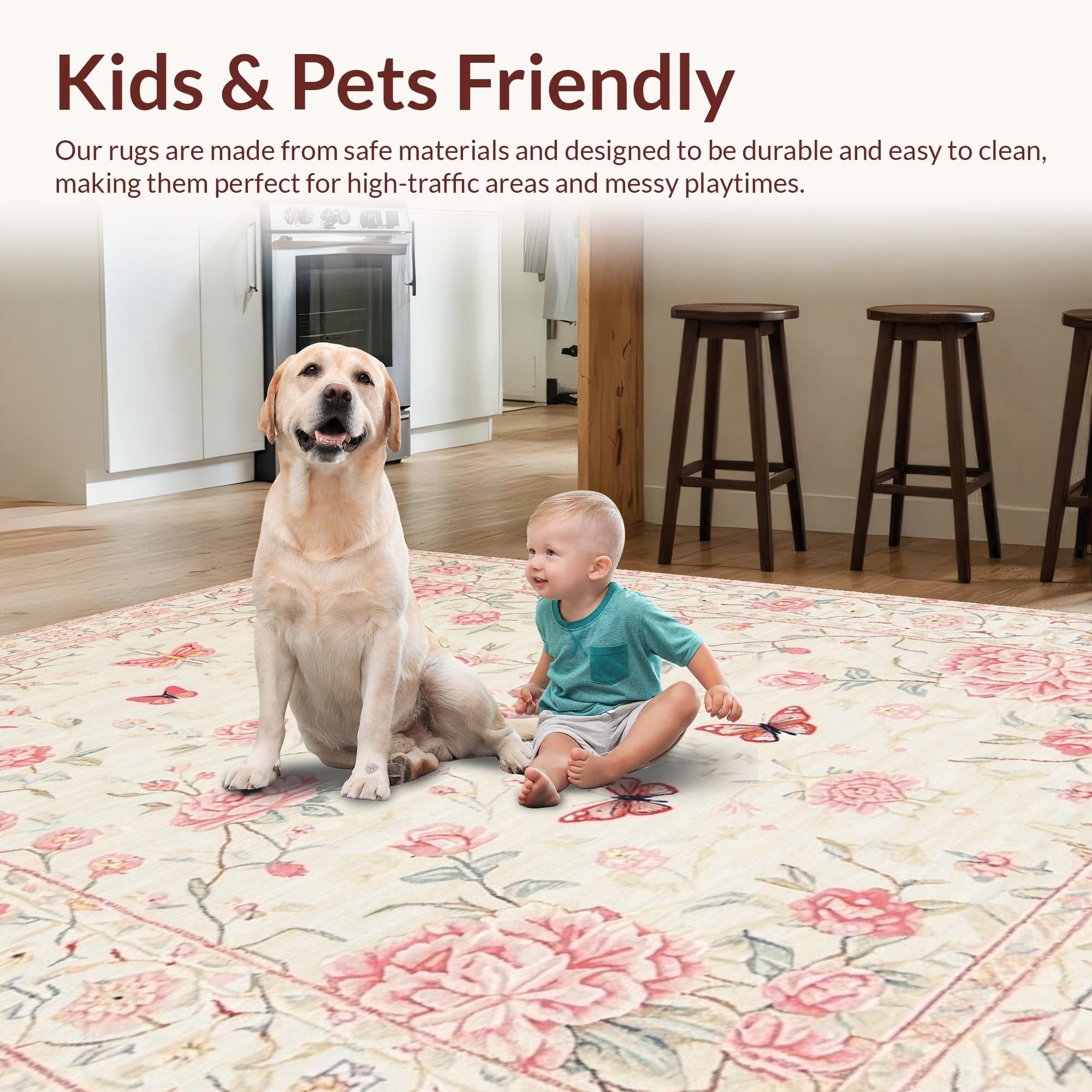 Ultra Soft Area Rug, Non Slip, Stain Resistant, Washable Area Rugs for Living Room, Bedroom, Lush Botanical Print Serenity Theme(Beige) Overview: