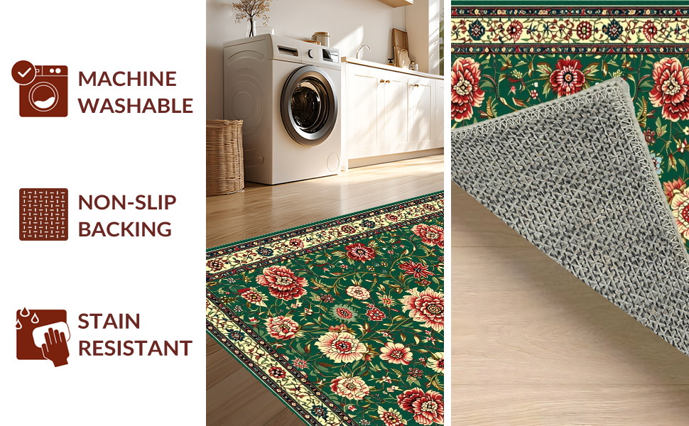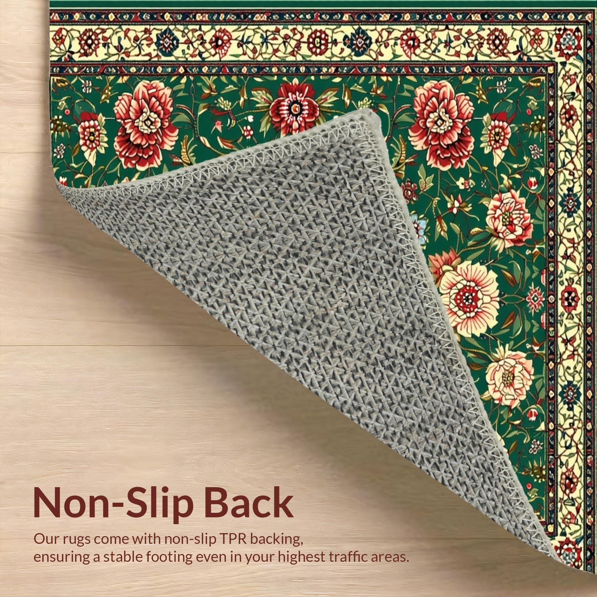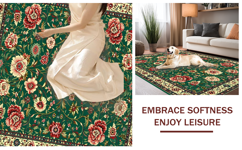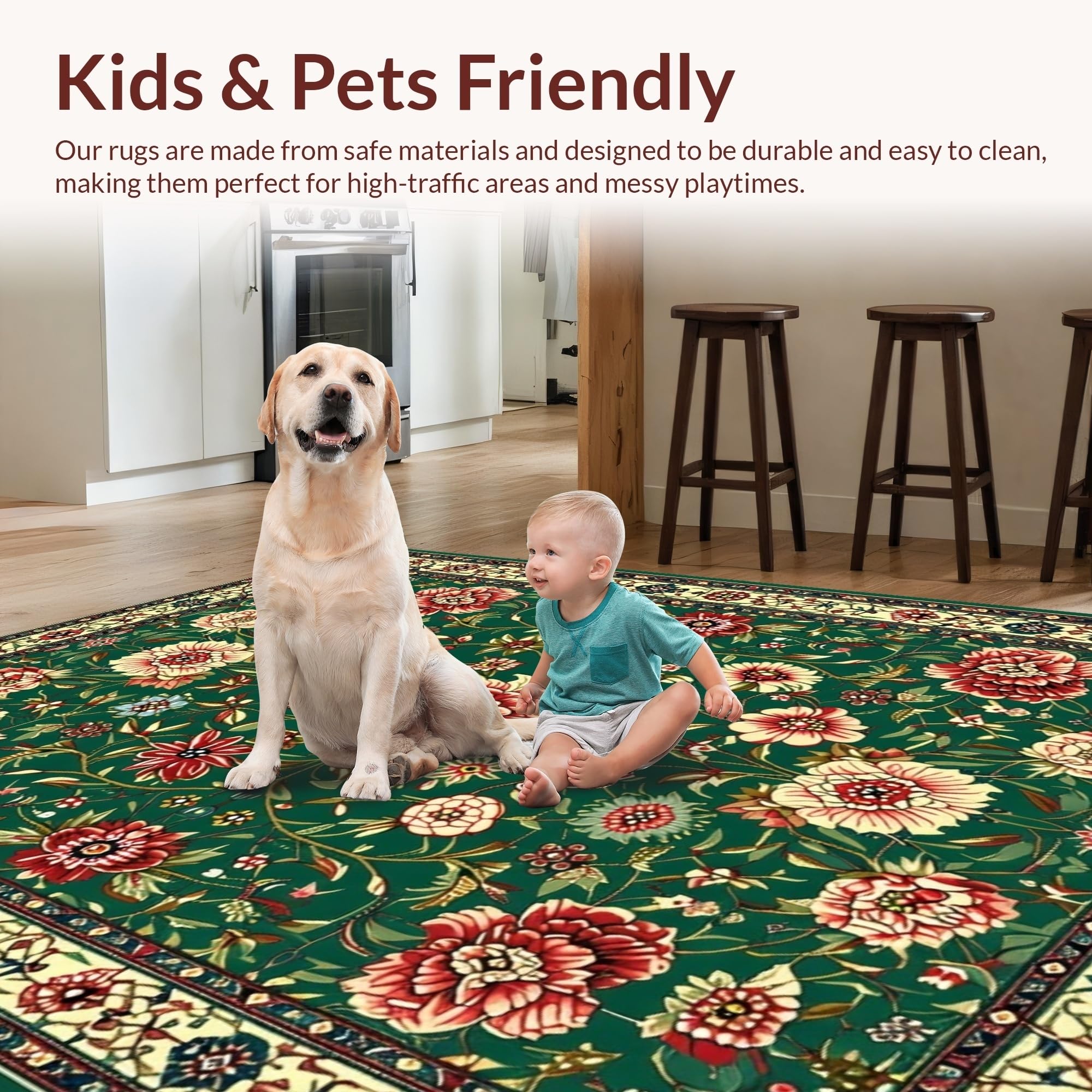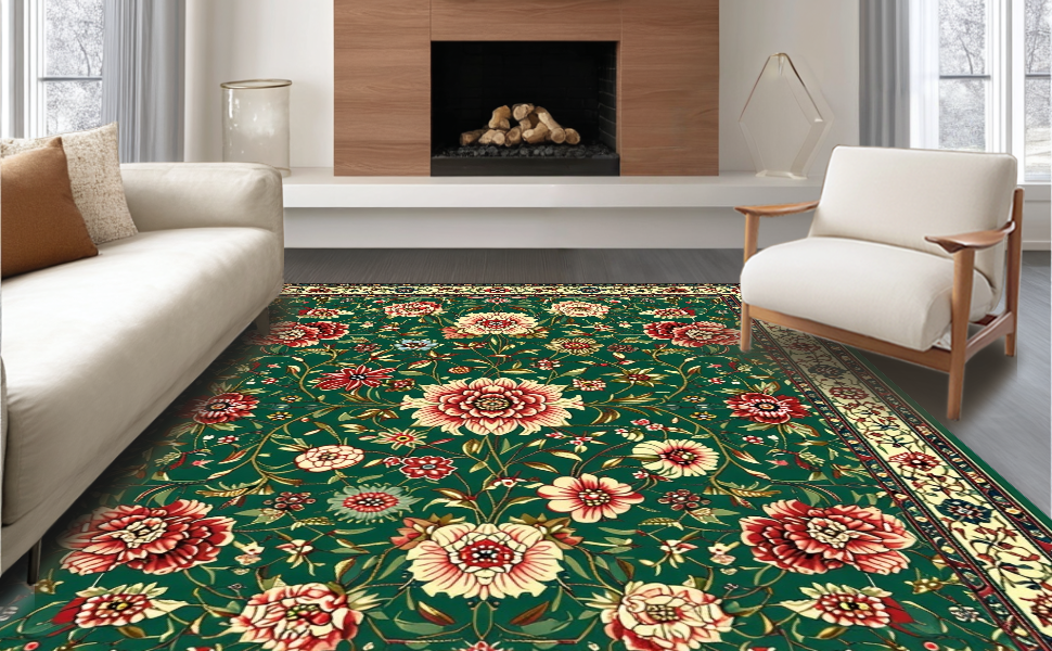 Ultra Soft Area Rug, Non Slip, Stain Resistant, Washable Area Rugs for Living Room, Bedroom, Lush Earth Tones with Intricate Patterns(Green) Overview: