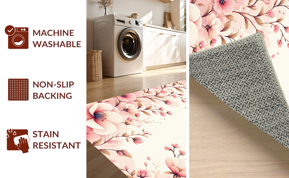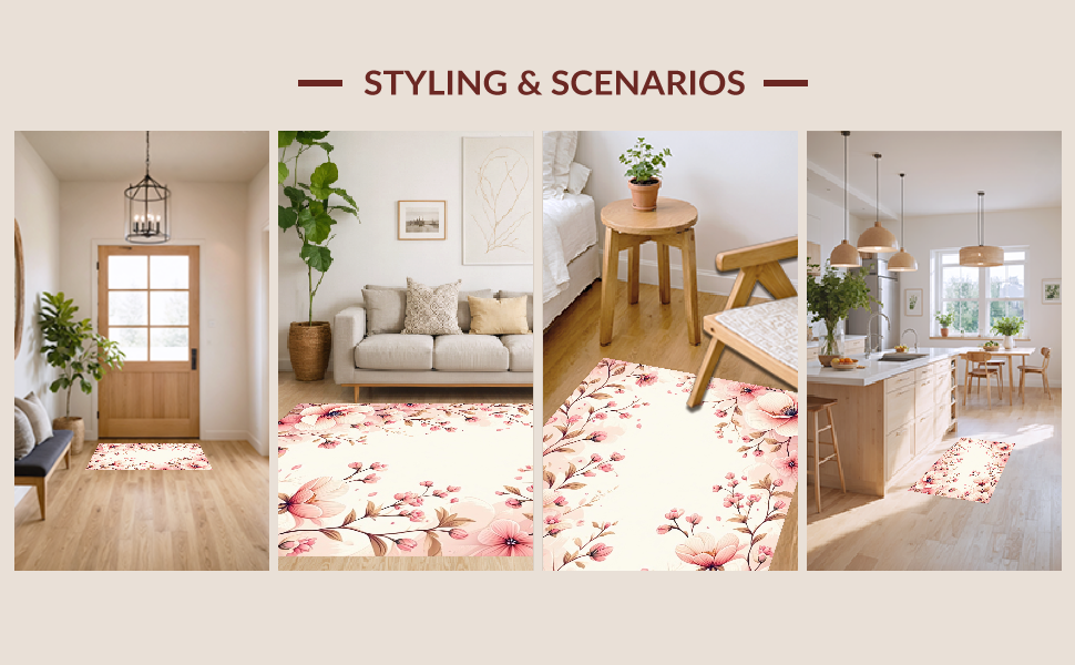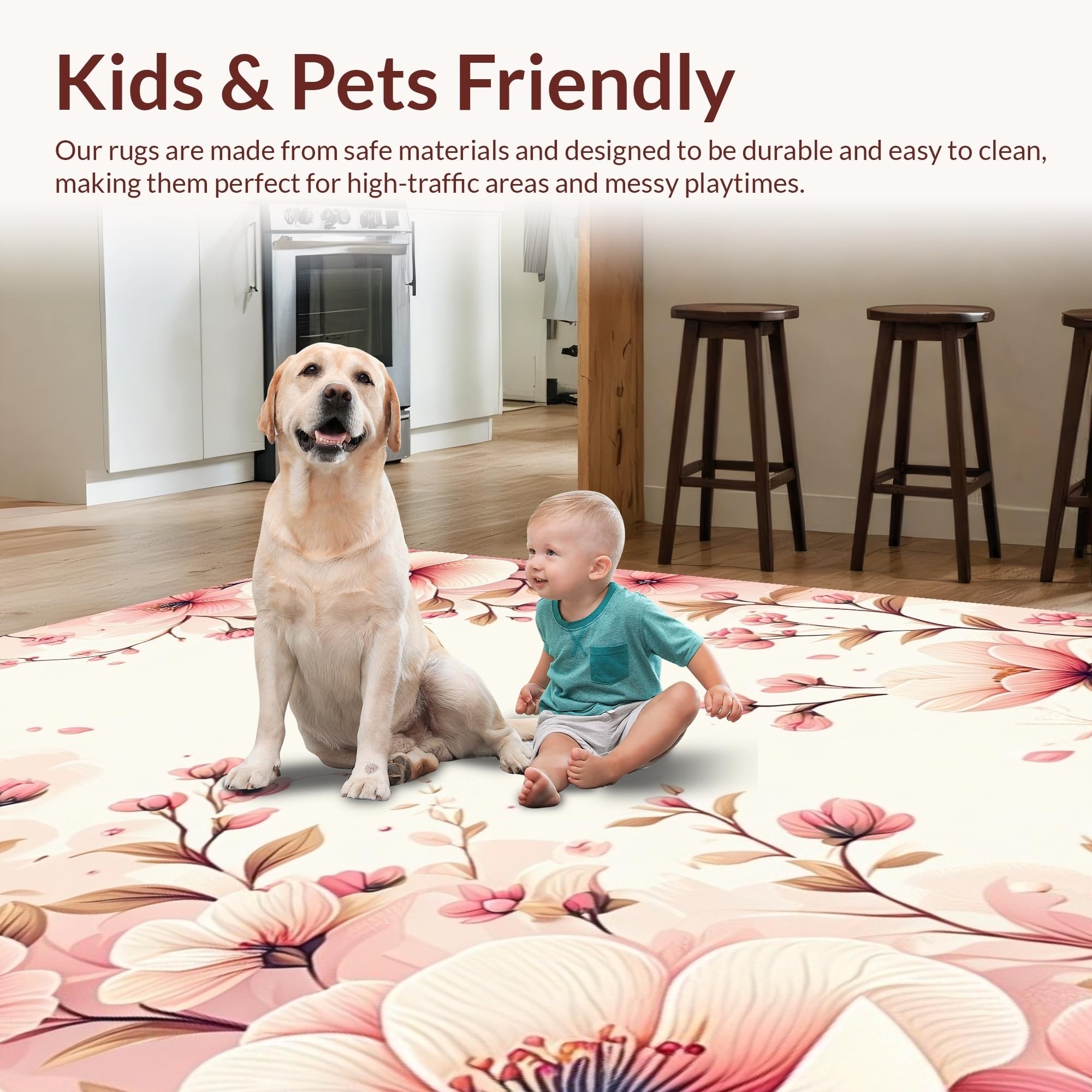 Ultra Soft Area Rug, Non Slip, Stain Resistant, Washable Area Rugs for Living Room, Bedroom, Lush Garden-Inspired Modern Decor(Pink) Overview: