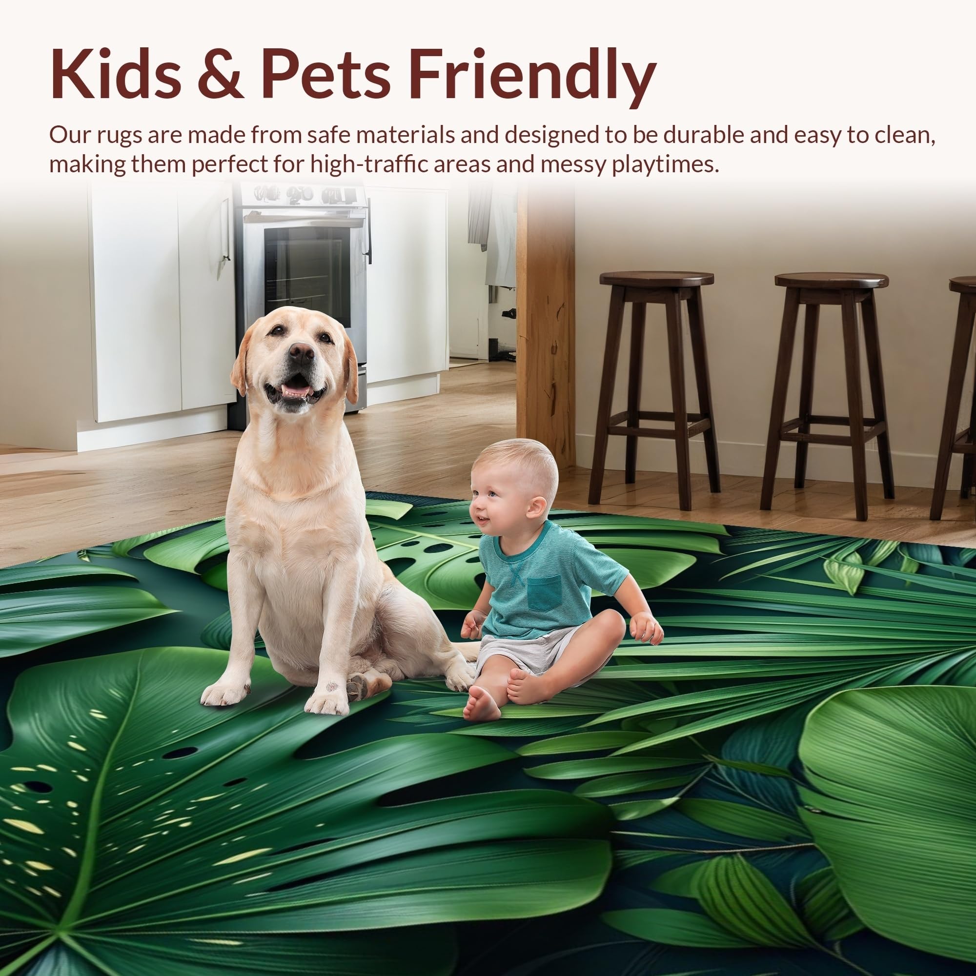 Ultra Soft Area Rug, Non Slip, Stain Resistant, Washable Area Rugs for Living Room, Bedroom, Lush Green Abstract Elegance(Green) Overview: