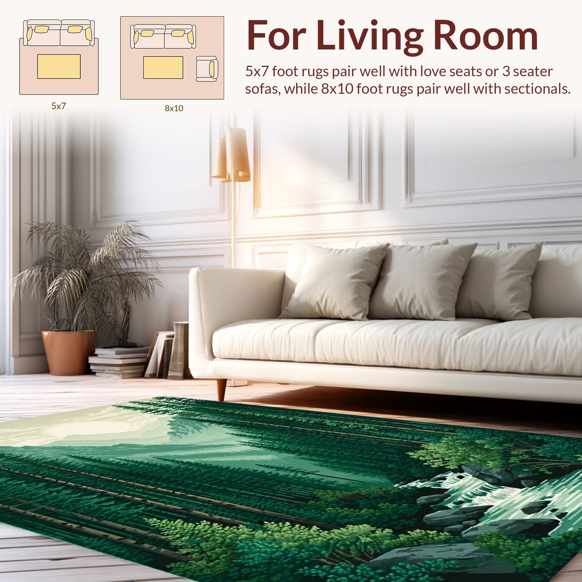 Flatwoven High Traffic Area Rug, Lush Green Forest Ambiance, Non Slip, Stain Resistant, Washable Area Rugs for Living Room, Bedroom (Green) Overview: