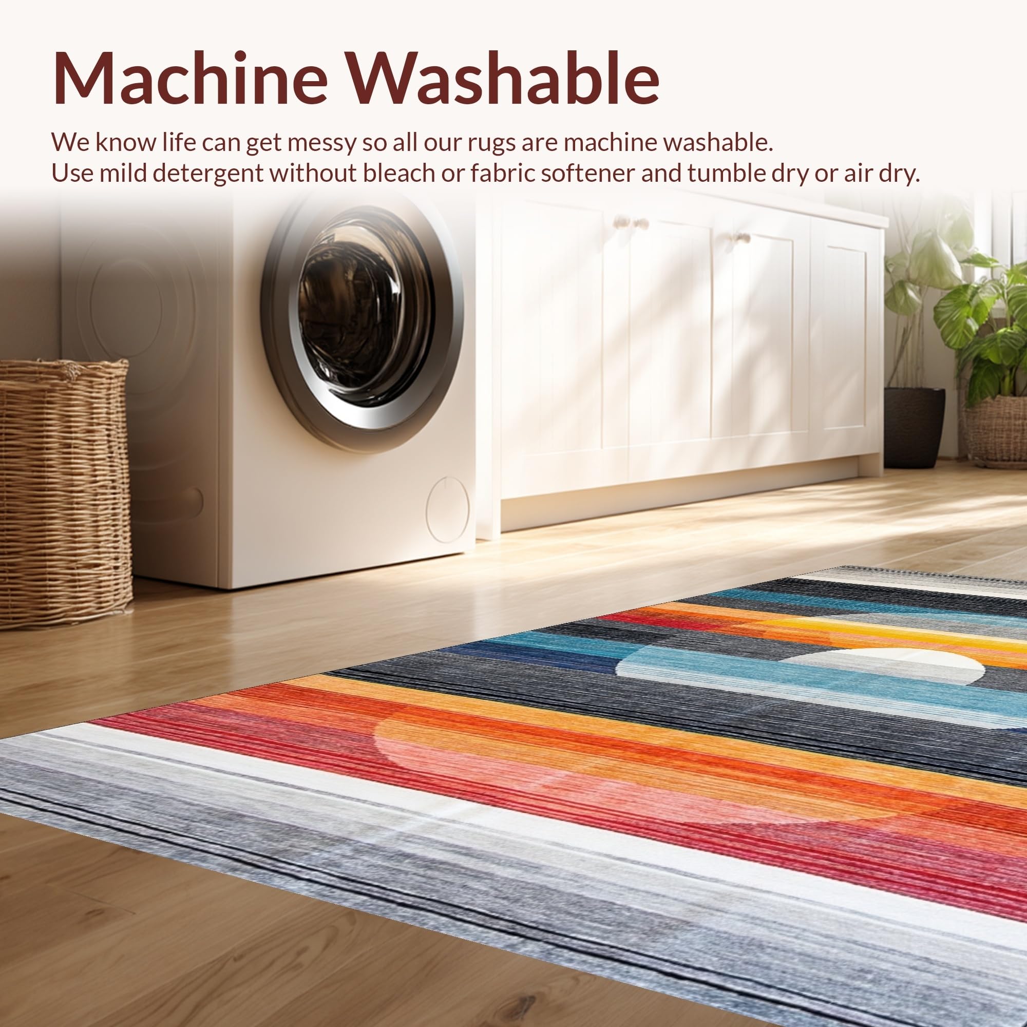 - Machine Washable: Our rugs can be easily thrown in the wash machine.