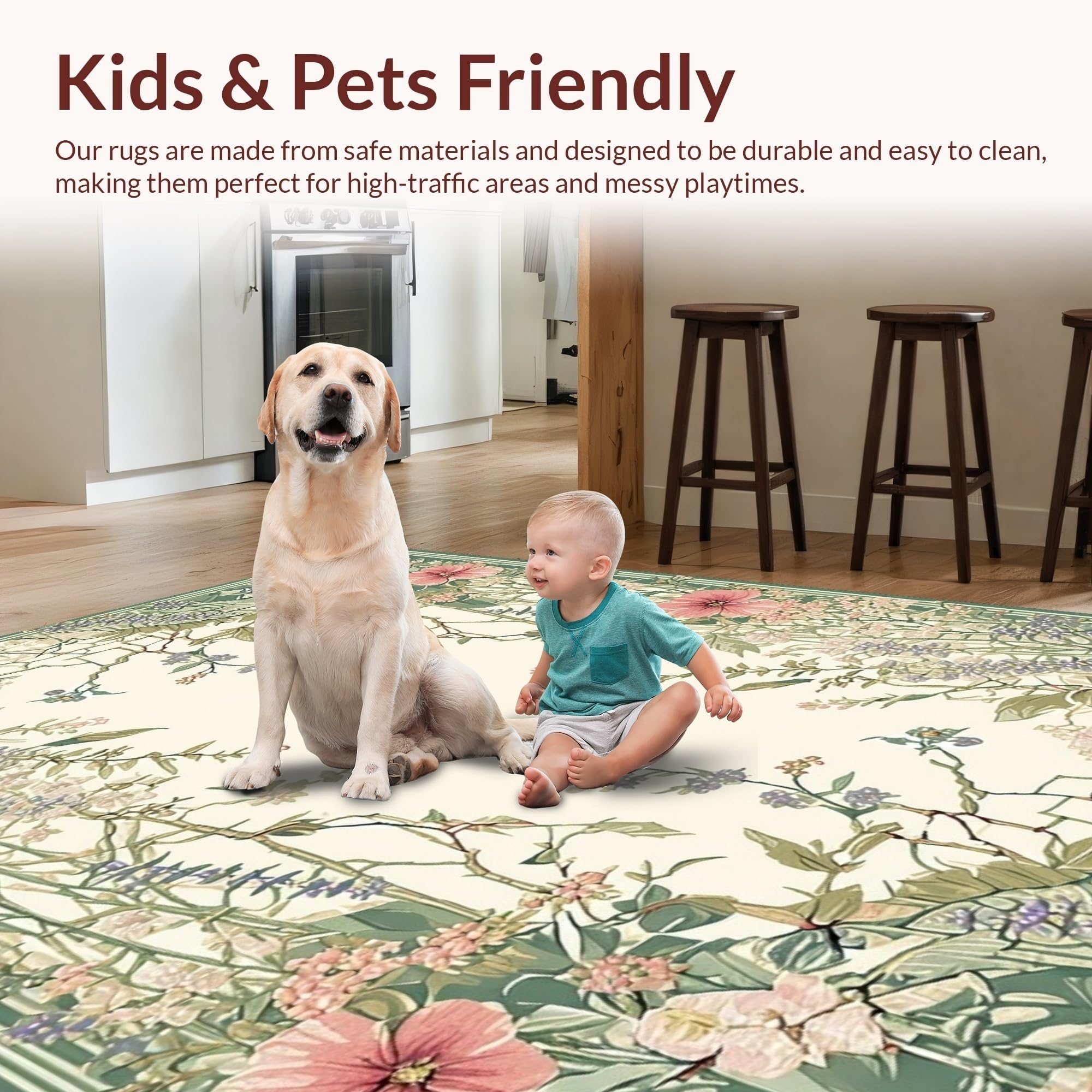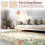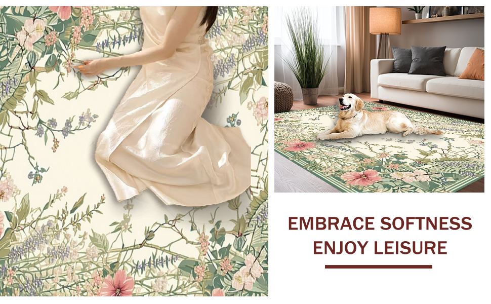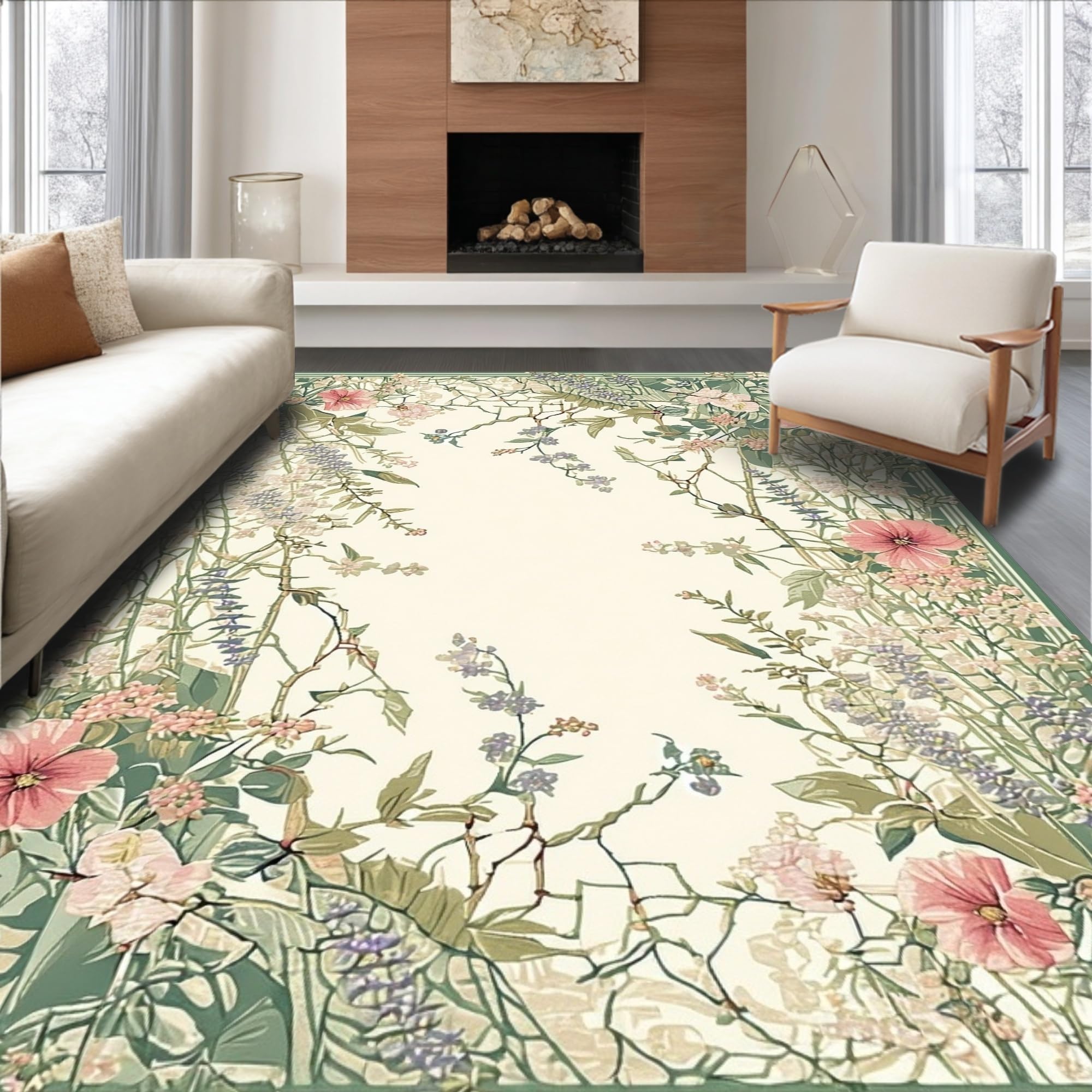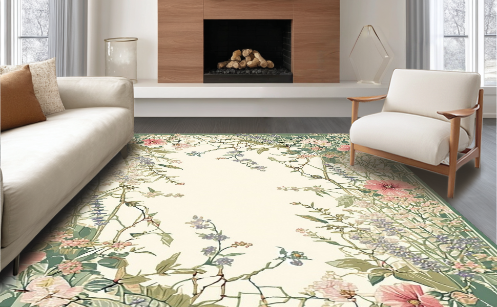 Ultra Soft Area Rug, Non Slip, Stain Resistant, Washable Area Rugs for Living Room, Bedroom, Lush Rustic Botanical Illustration(Ivory) Overview: