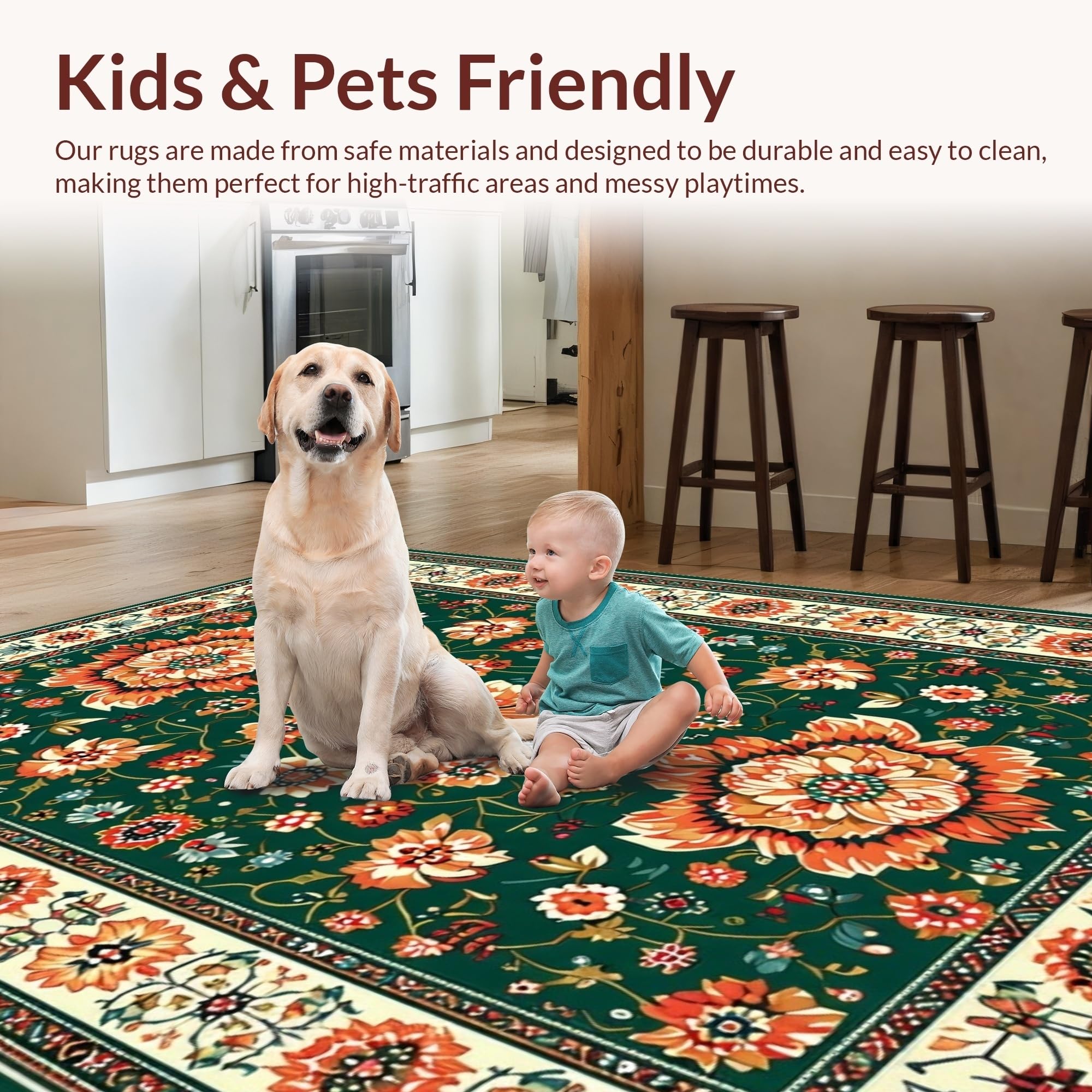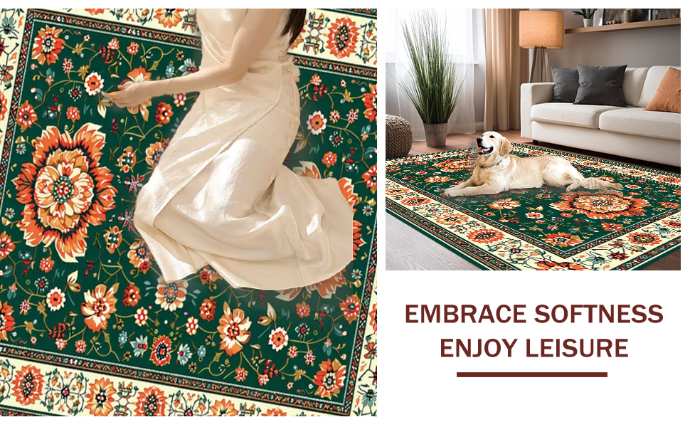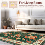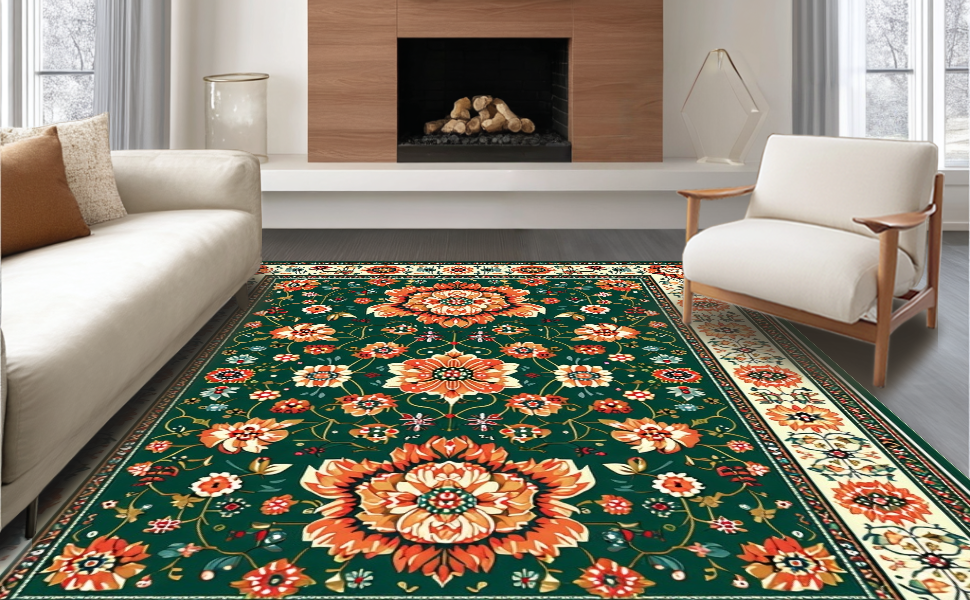 Ultra Soft Area Rug, Non Slip, Stain Resistant, Washable Area Rugs for Living Room, Bedroom, Lush Tropical Floral Arrangement(Green) Overview: