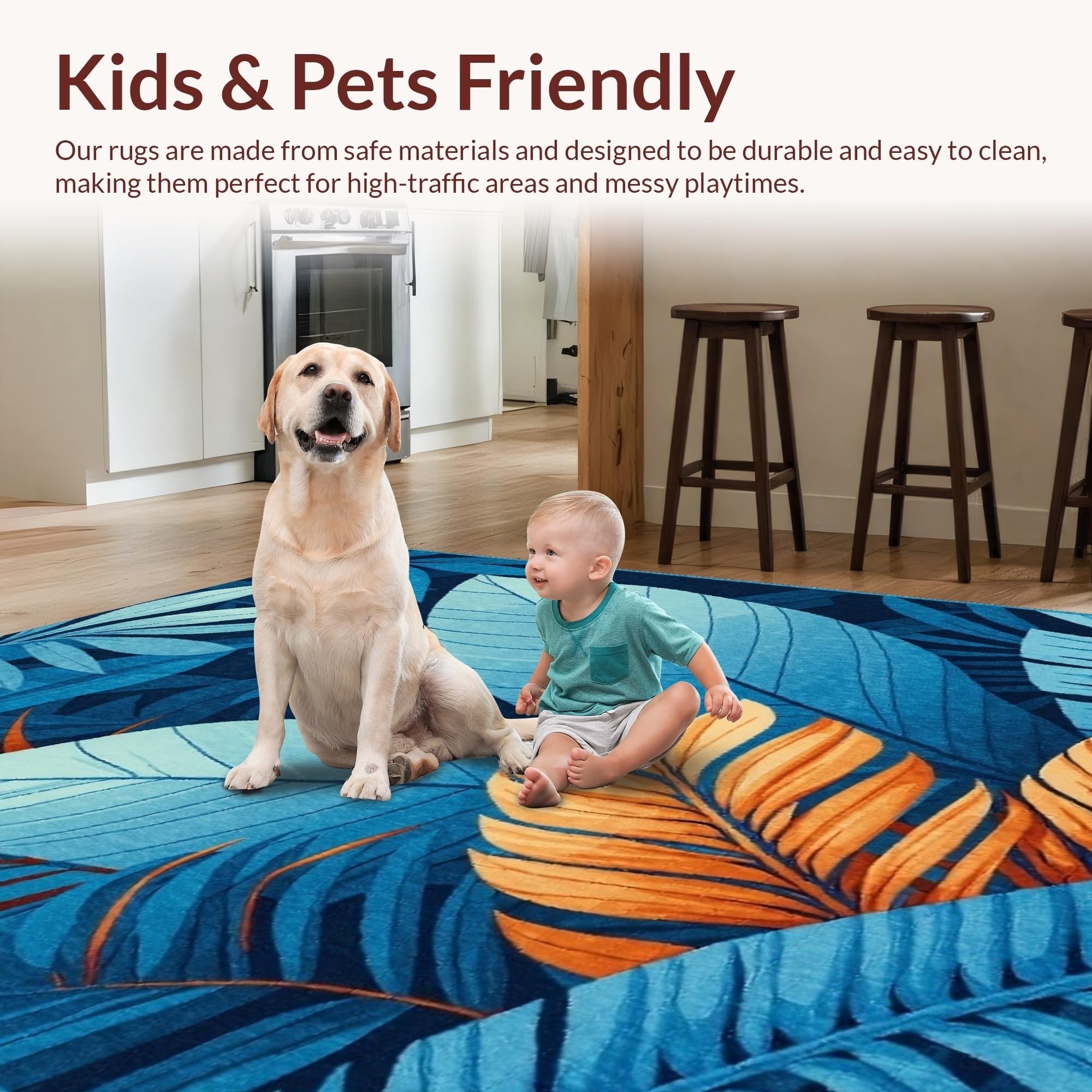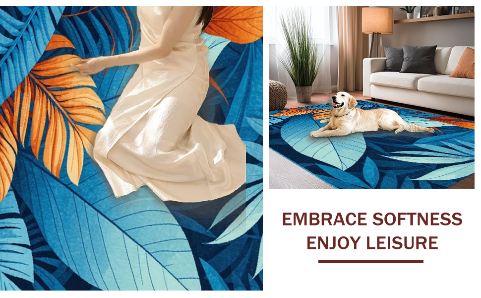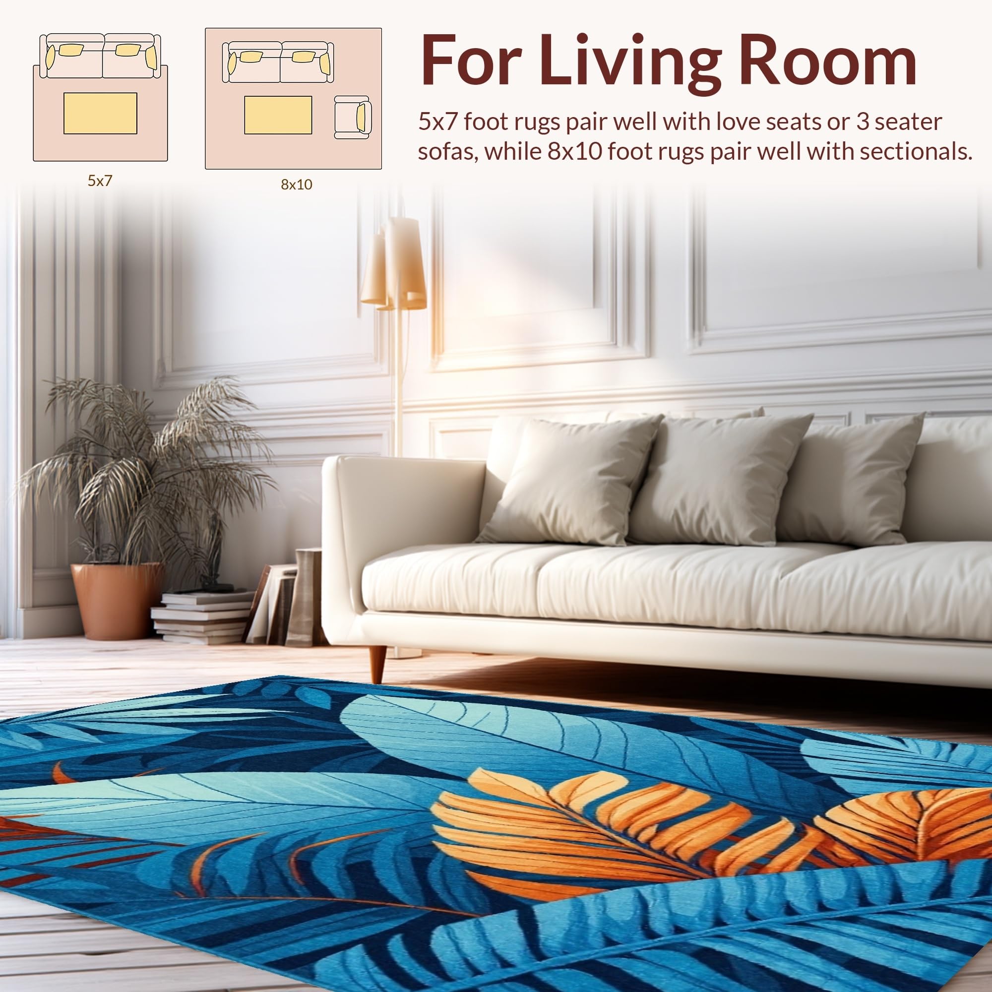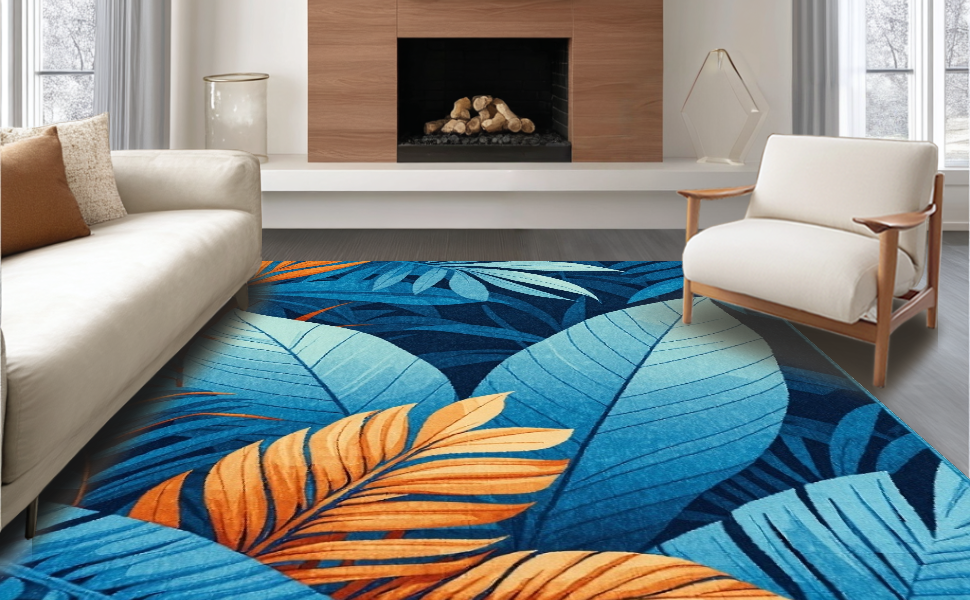 Ultra Soft Area Rug, Non Slip, Stain Resistant, Washable Area Rugs for Living Room, Bedroom, Lush Tropical Jungle Pattern(Blue) Overview: