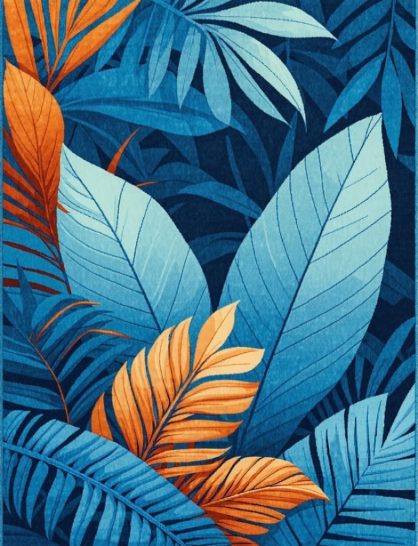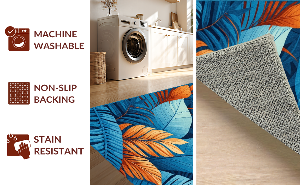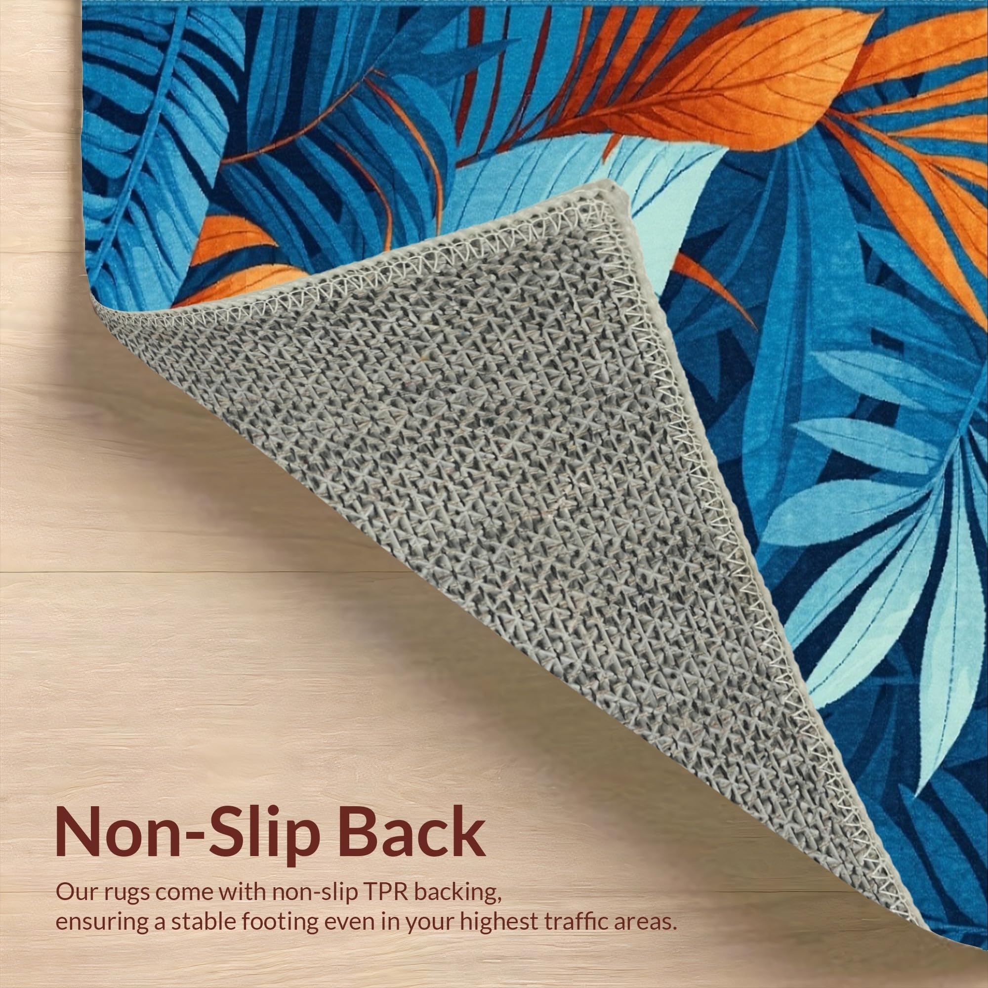 Ultra Soft Area Rug, Non Slip, Stain Resistant, Washable Area Rugs for Living Room, Bedroom, Lush Tropical Jungle Pattern(Blue) Overview: