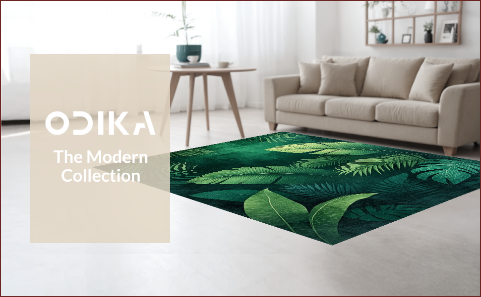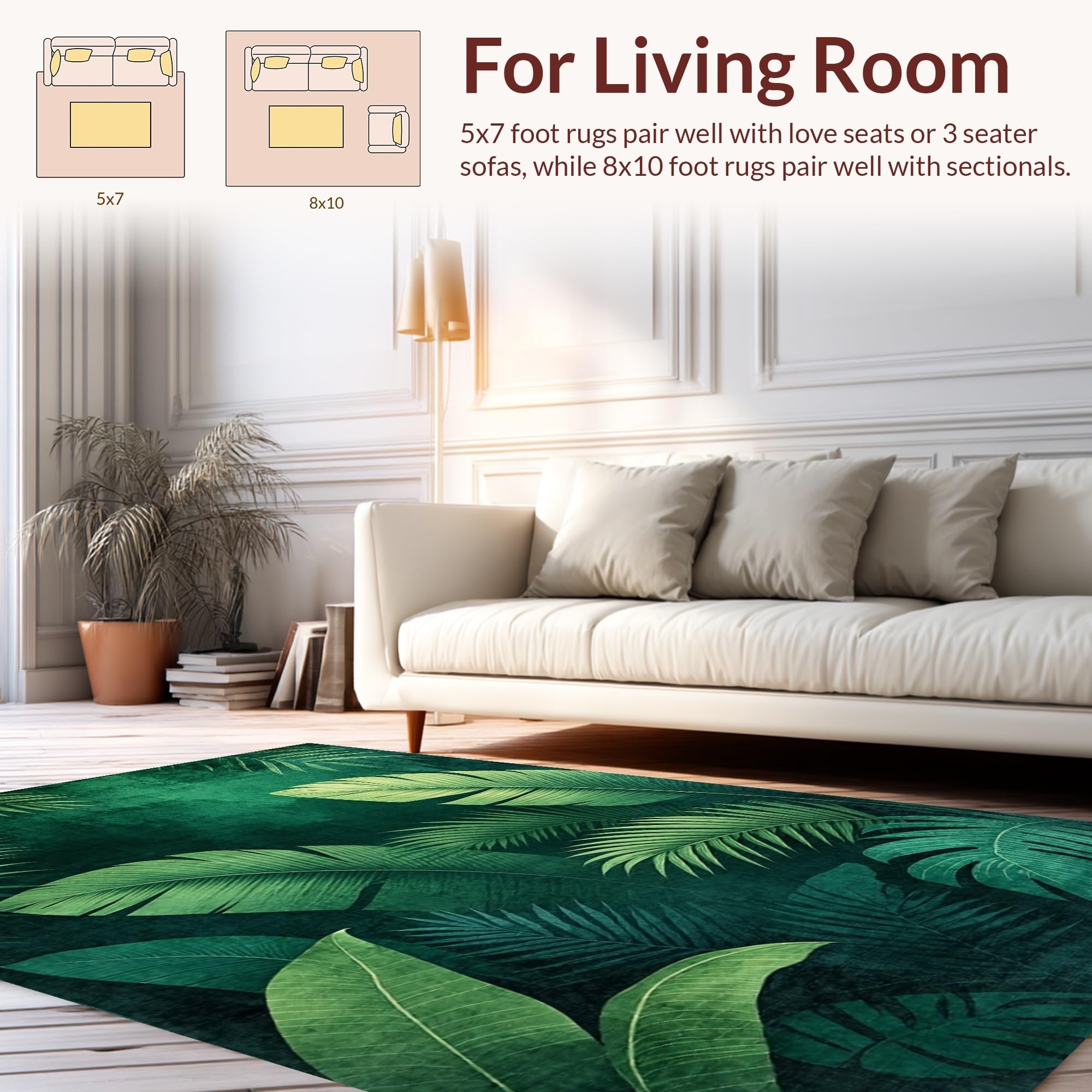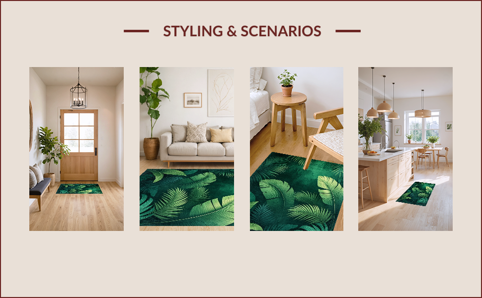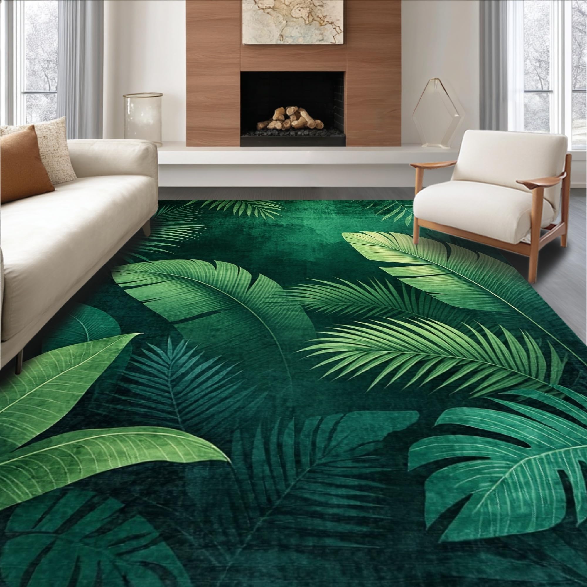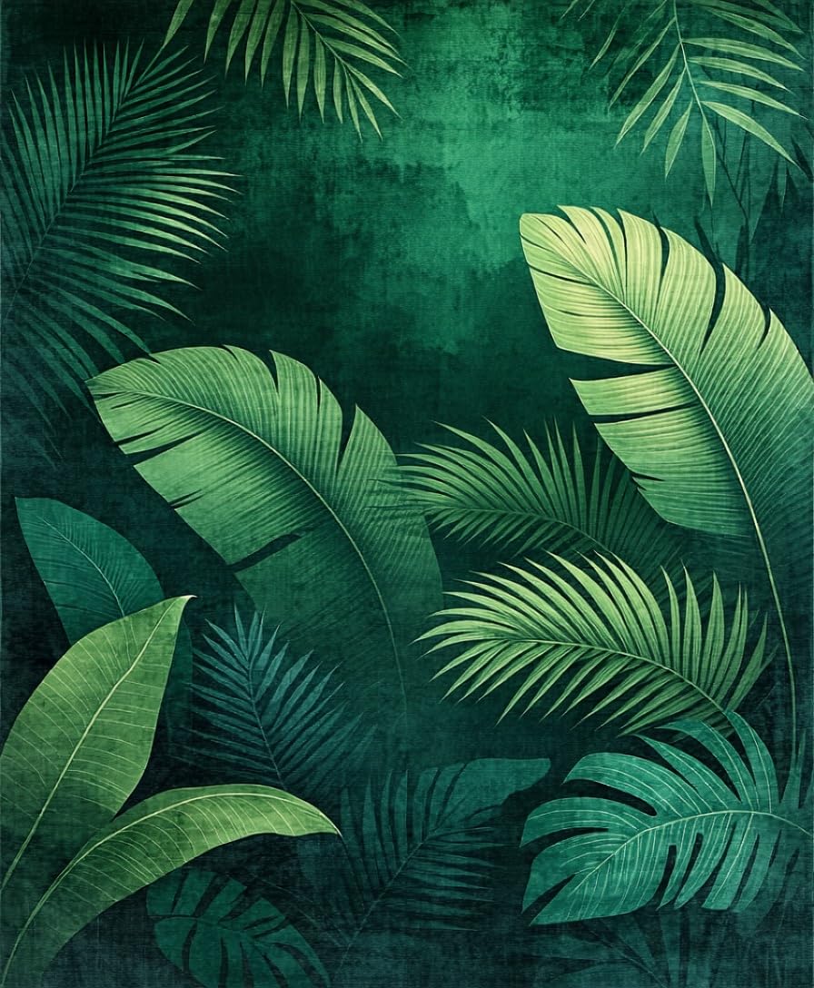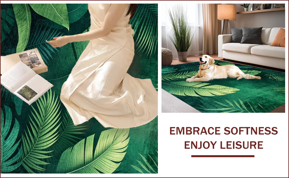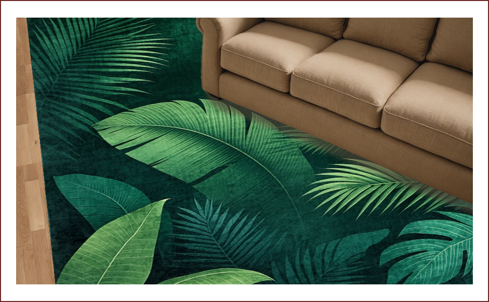 Ultra Soft Area Rug, Non Slip, Stain Resistant, Washable Area Rugs for Living Room, Bedroom, Lush Tropical Leaf Motif(Green) Overview: