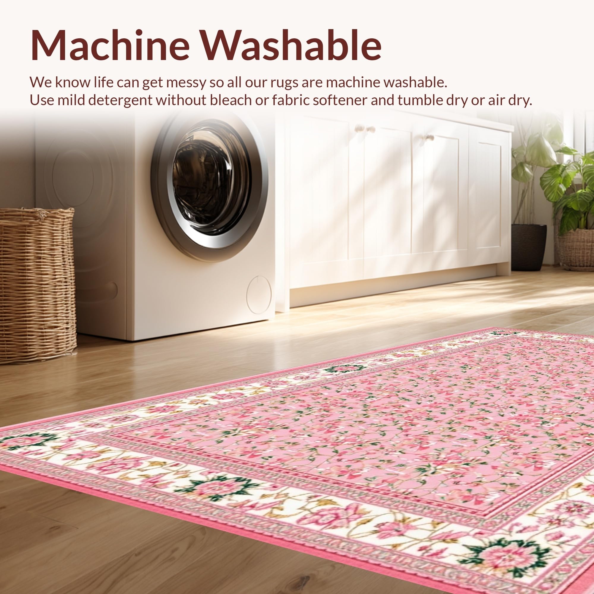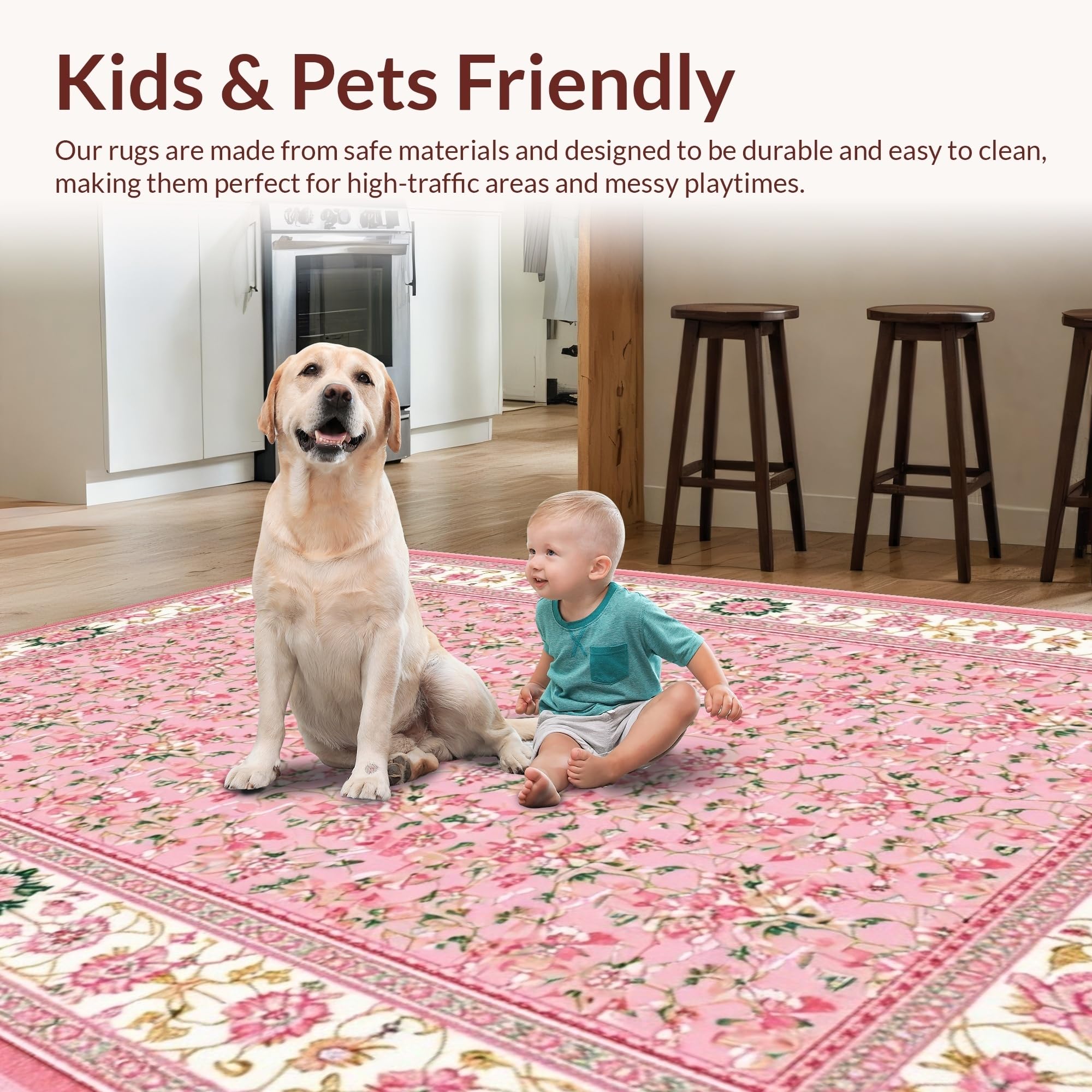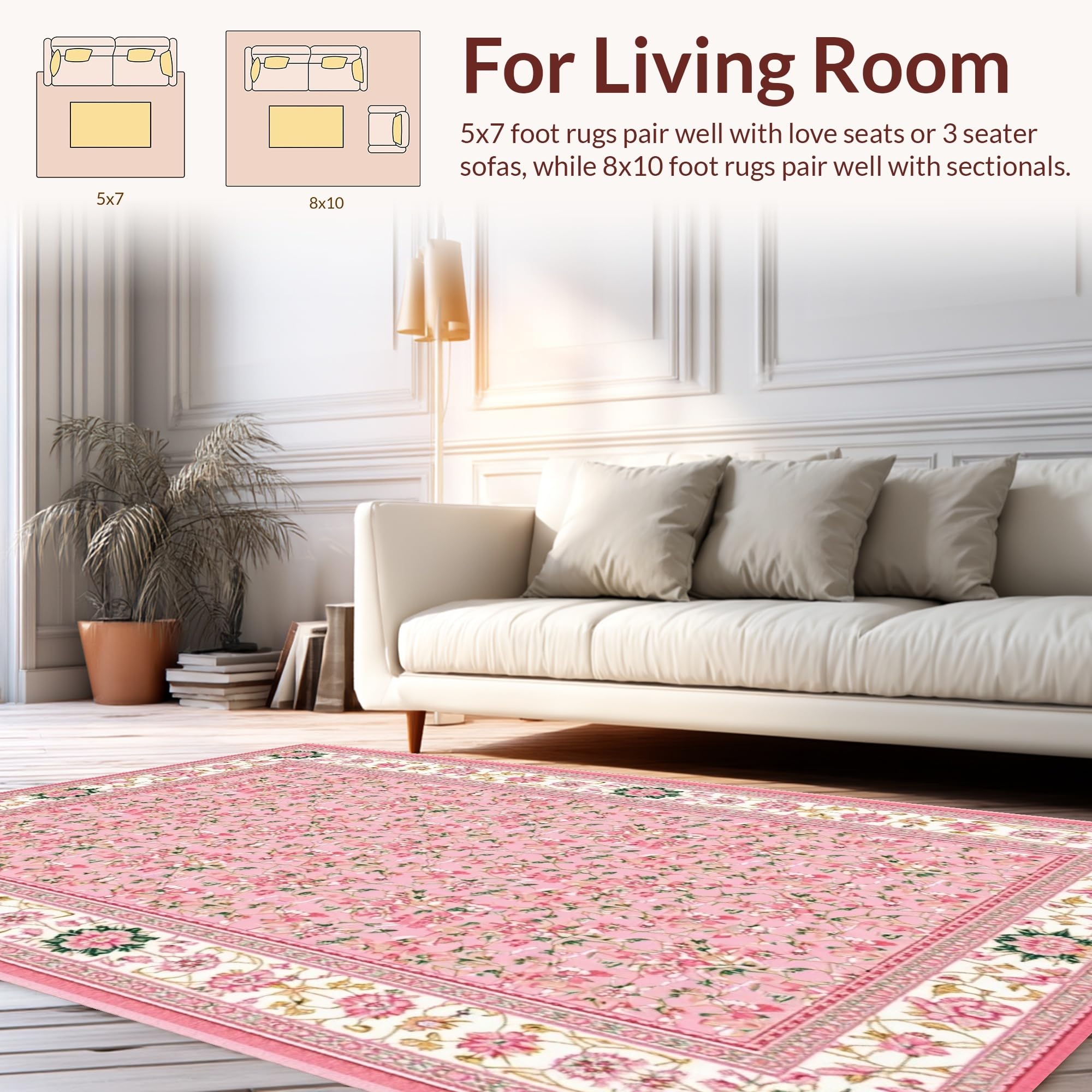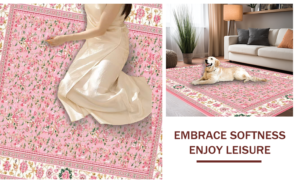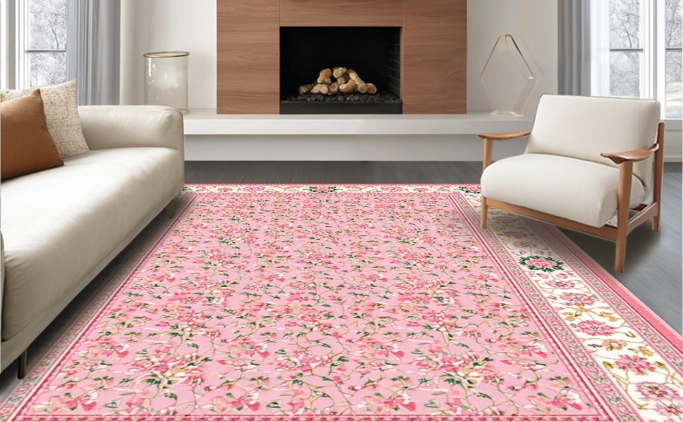 Ultra Soft Area Rug, Non Slip, Stain Resistant, Washable Area Rugs for Living Room, Bedroom, Lush Vibrant Garden Aesthetic(Pink) Overview: