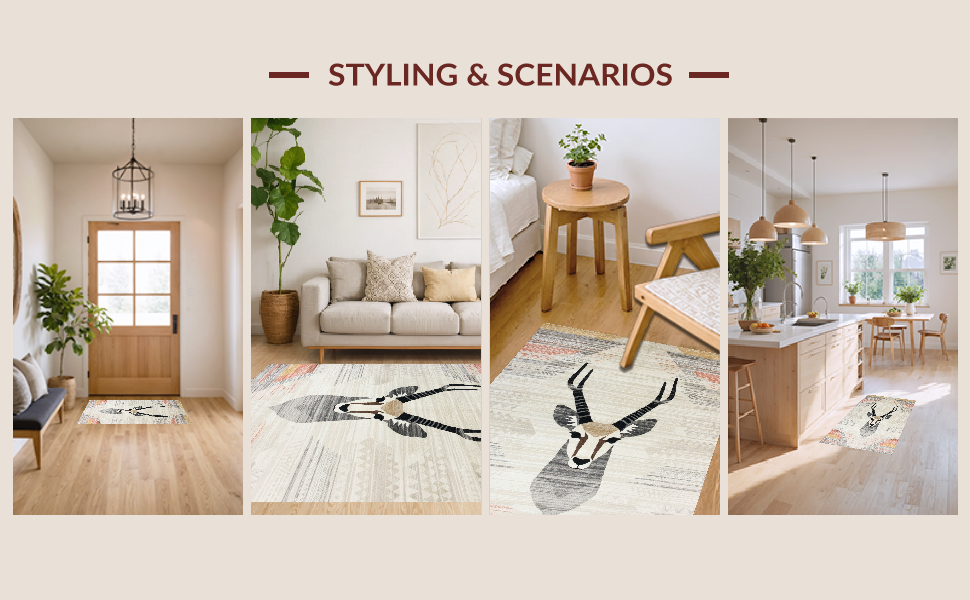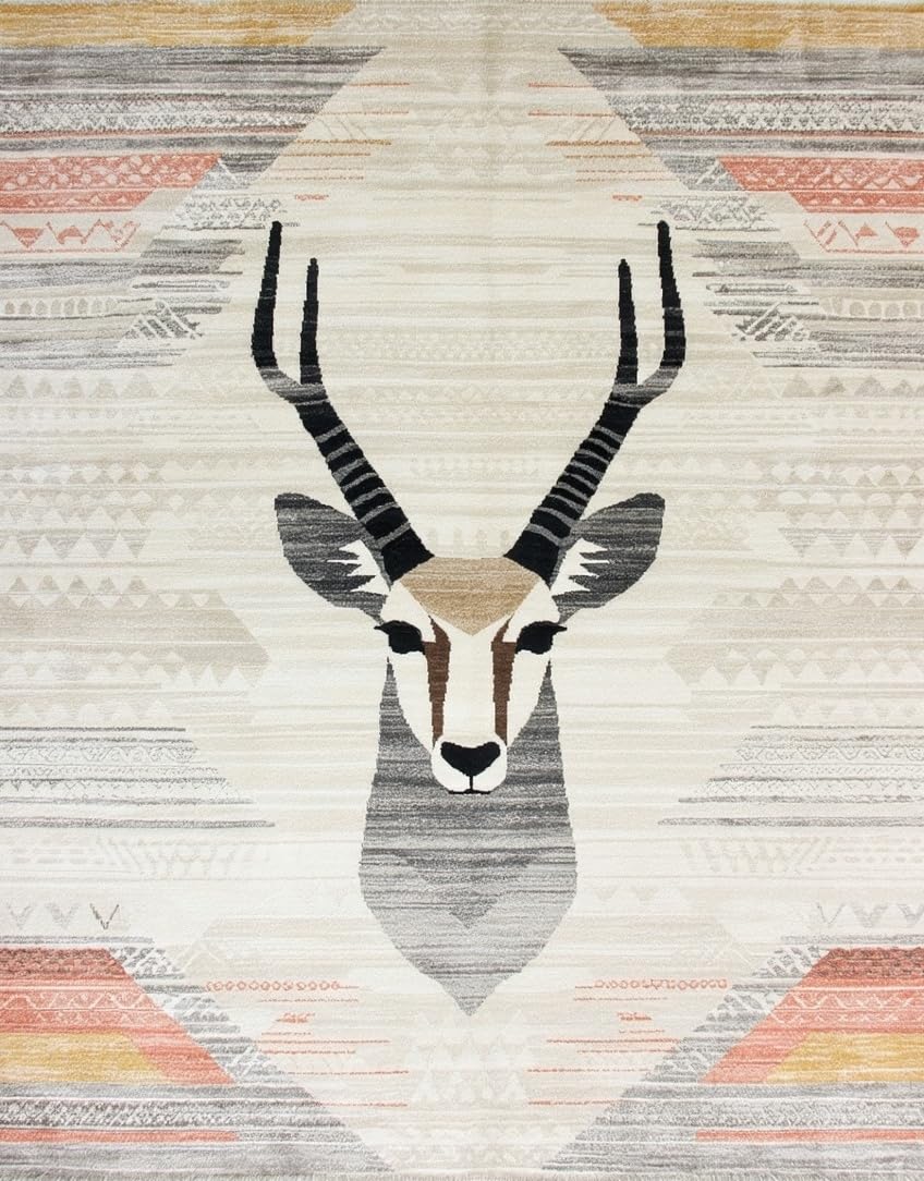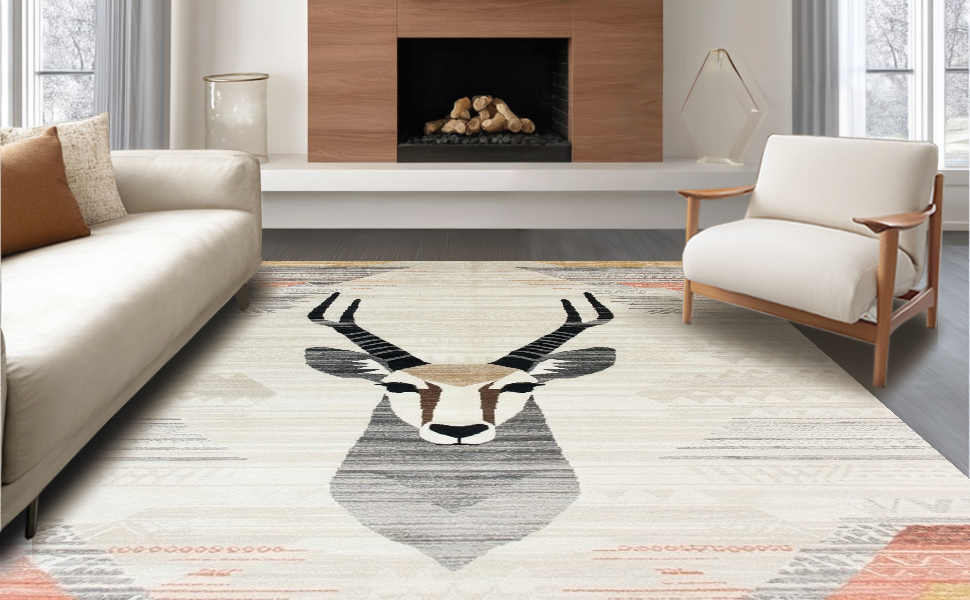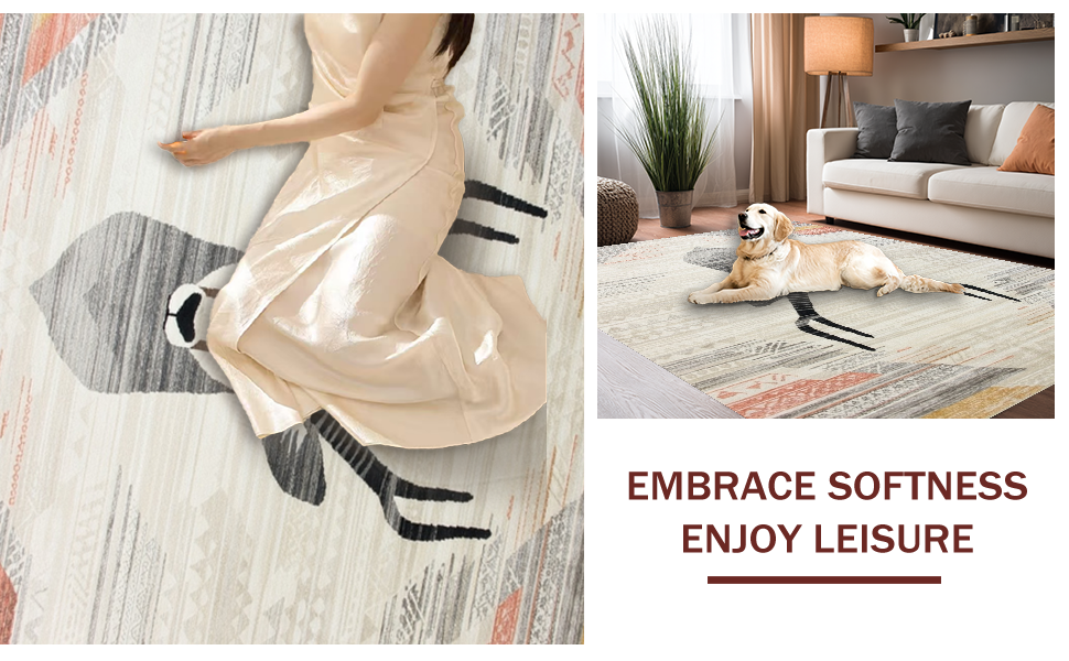 Ultra Soft Area Rug, Non Slip, Stain Resistant, Washable Area Rugs for Living Room, Bedroom, Luxe Beige Geometric Imagery(Beige) Overview: