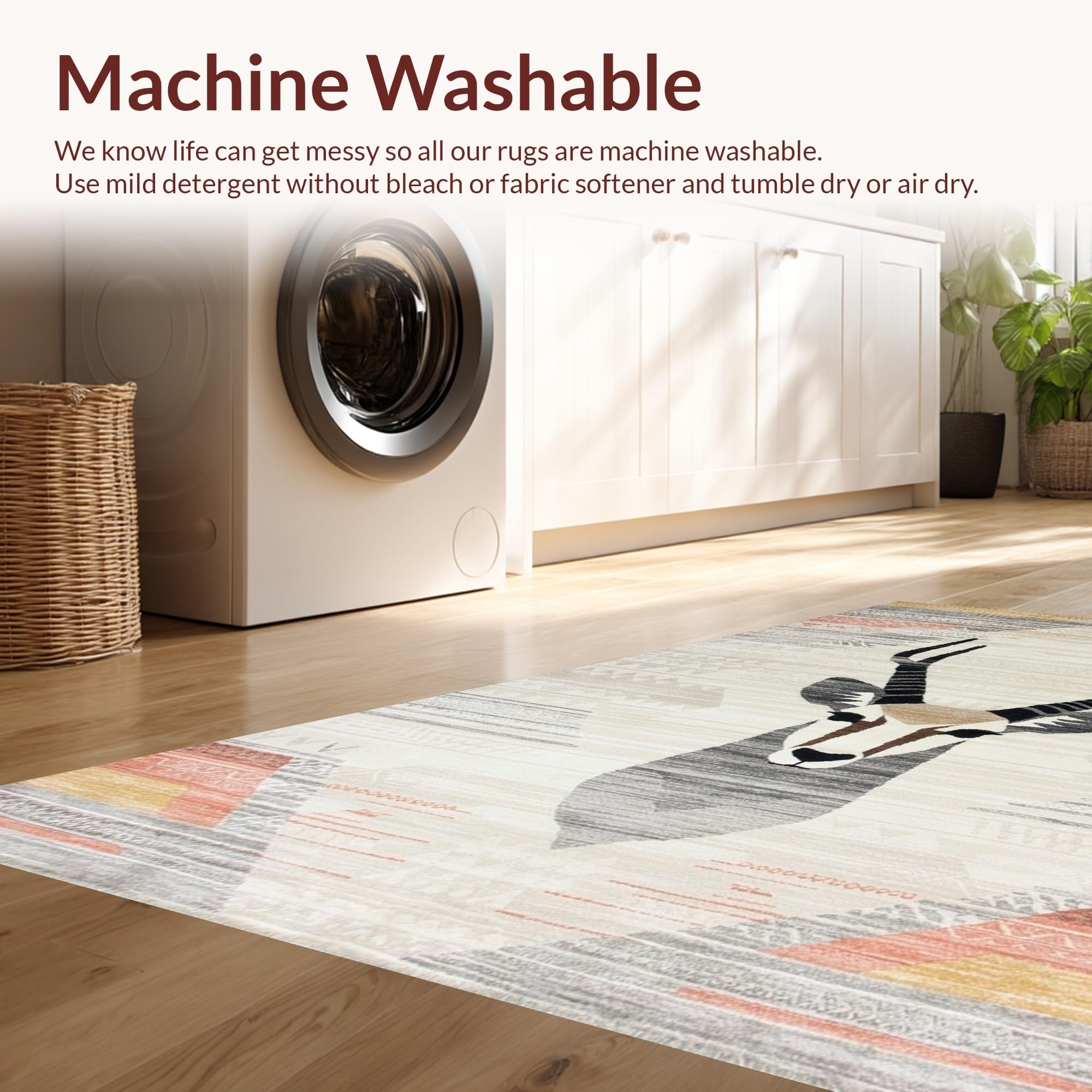 - Machine Washable: Our rugs can be easily thrown in the wash machine.