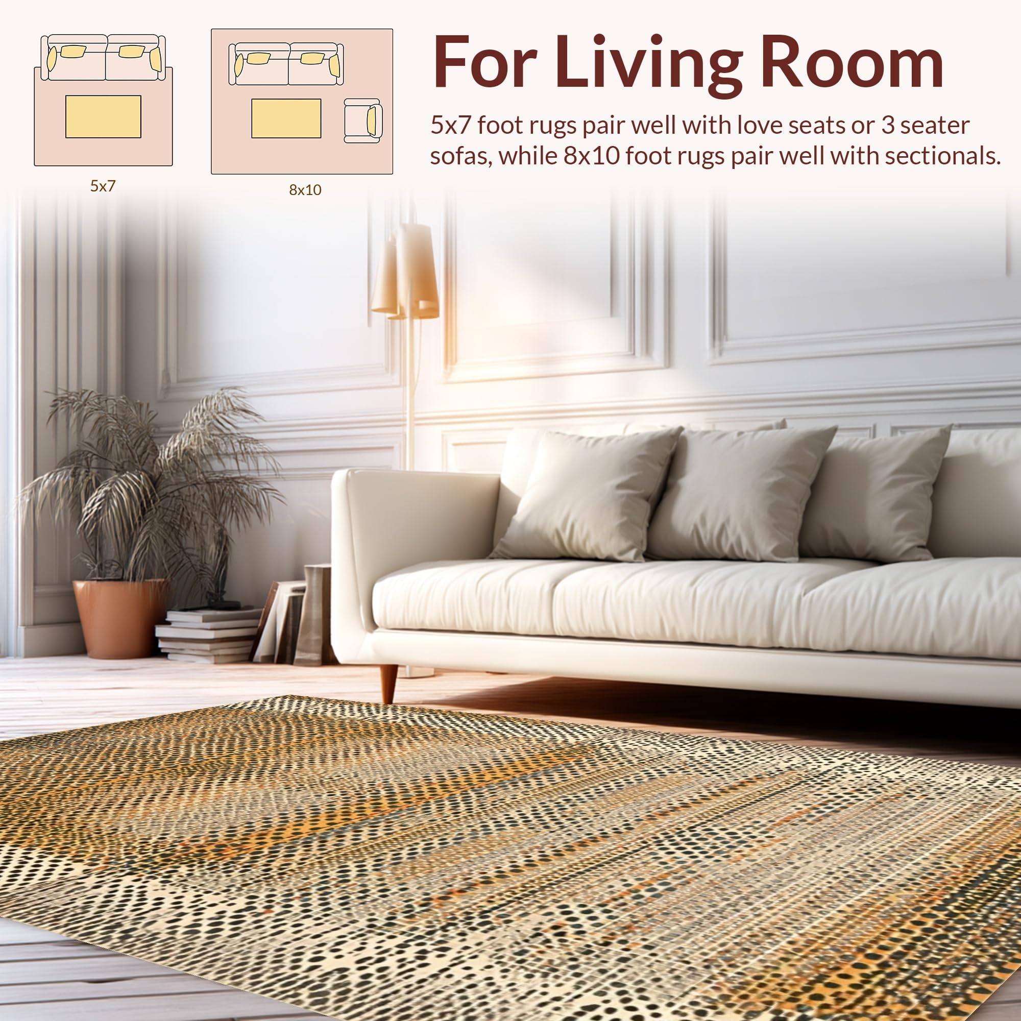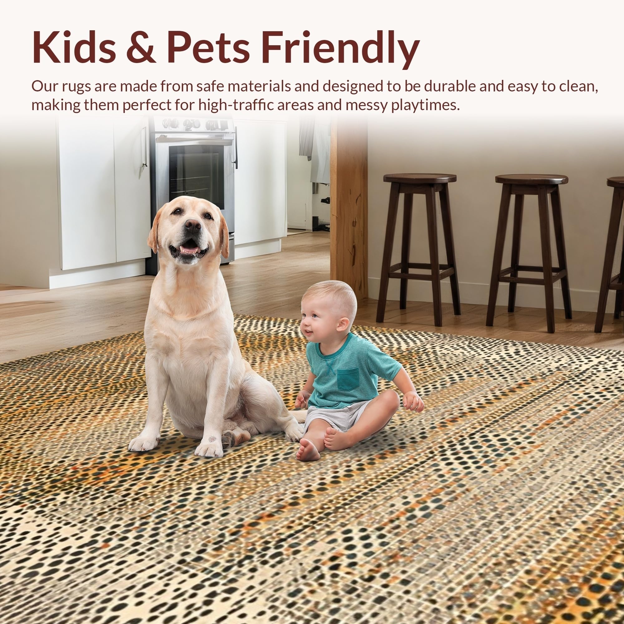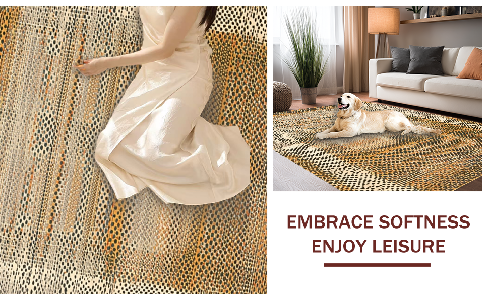 Ultra Soft Area Rug, Non Slip, Stain Resistant, Washable Area Rugs for Living Room, Bedroom, Luxe Whimsical Cow Design Element(Orange) Overview: