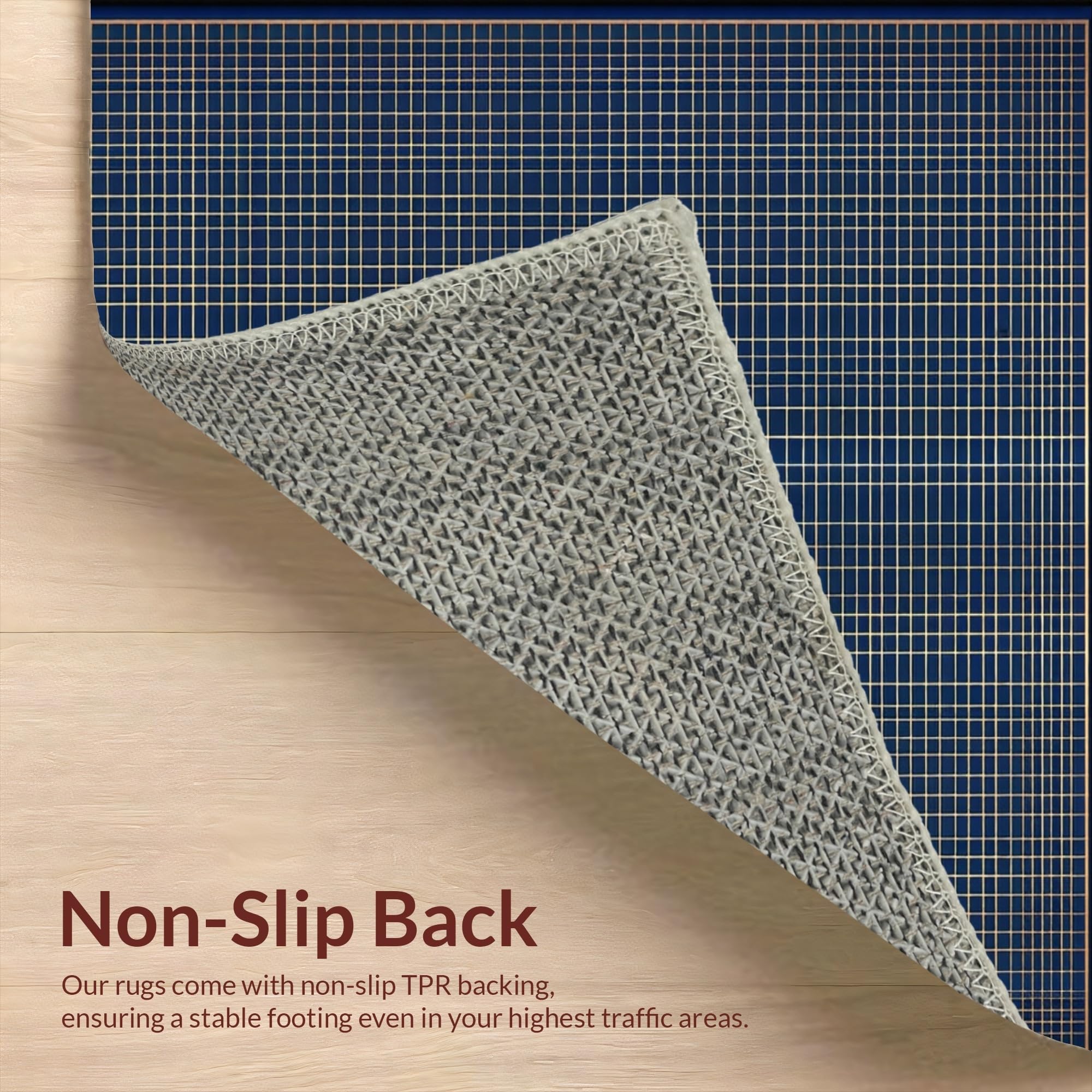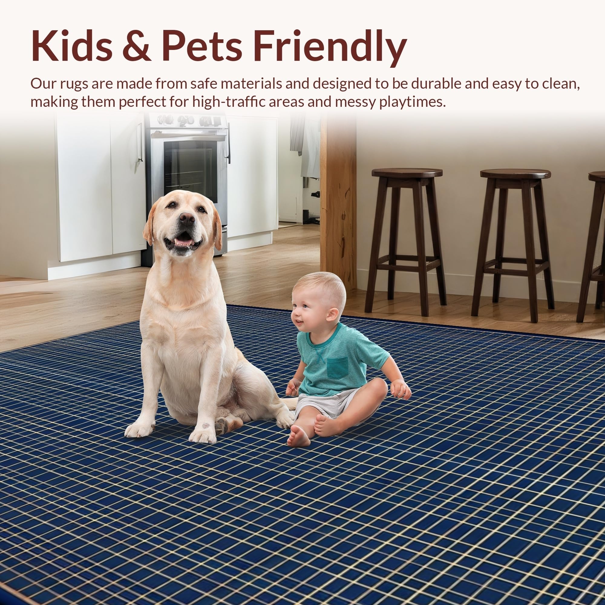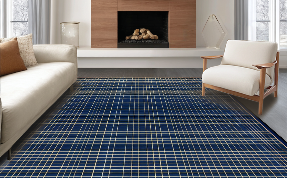 Ultra Soft Area Rug, Non Slip, Stain Resistant, Washable Area Rugs for Living Room, Bedroom, Luxurious Blue and Gold Artful Geometry(Blue) Overview: