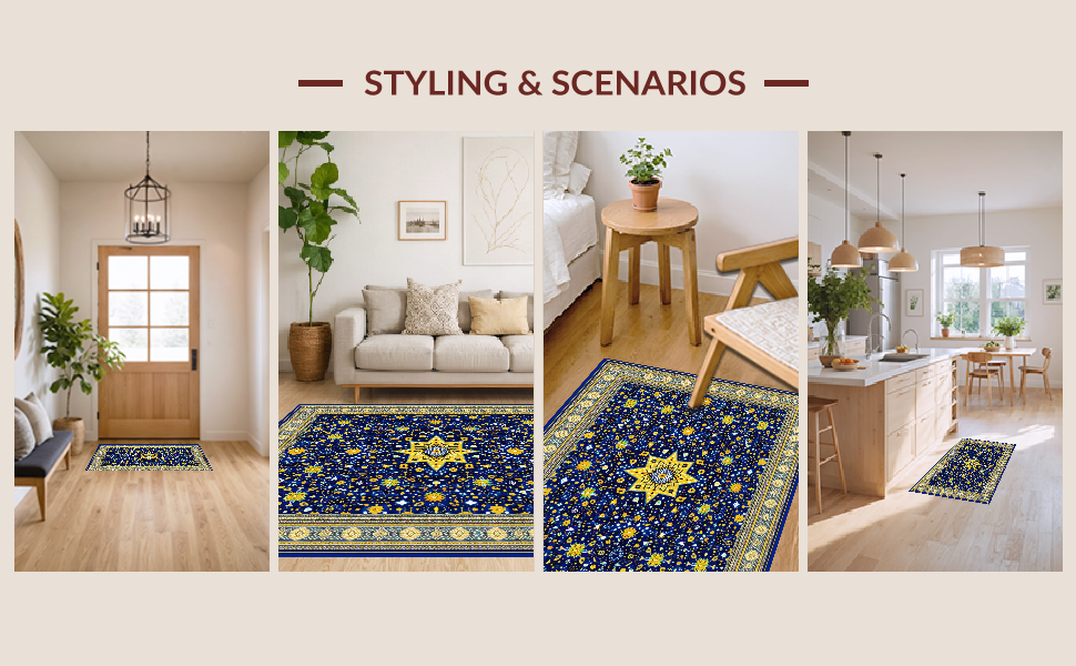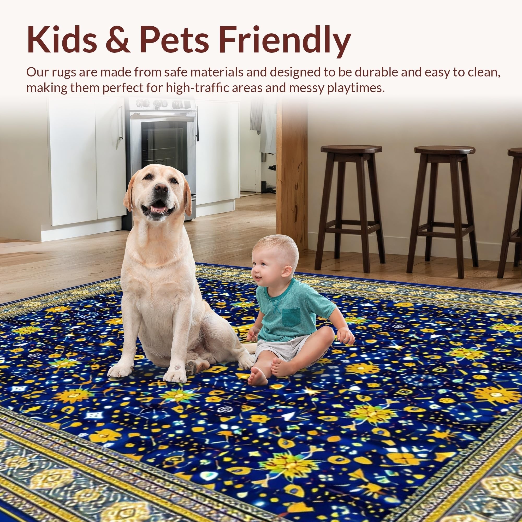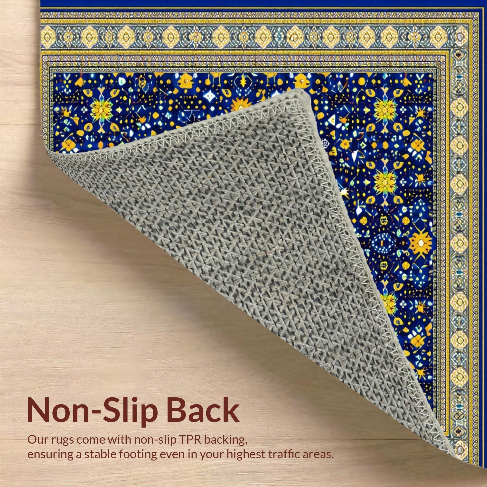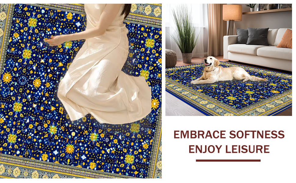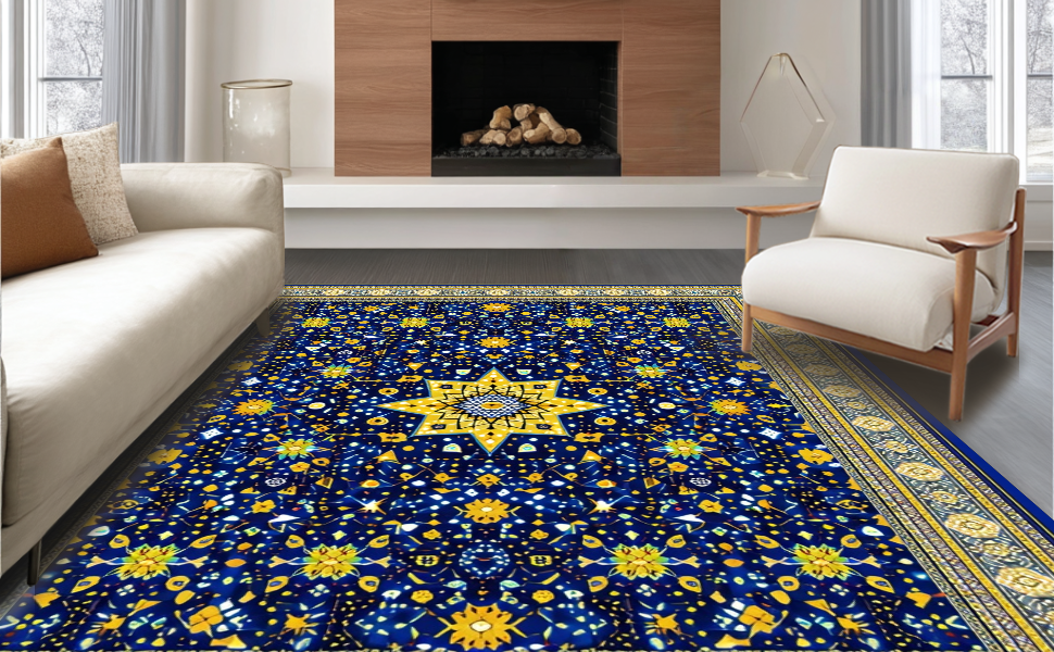 Ultra Soft Area Rug, Non Slip, Stain Resistant, Washable Area Rugs for Living Room, Bedroom, Luxurious Blue Tiled Motif(Blue) Overview: