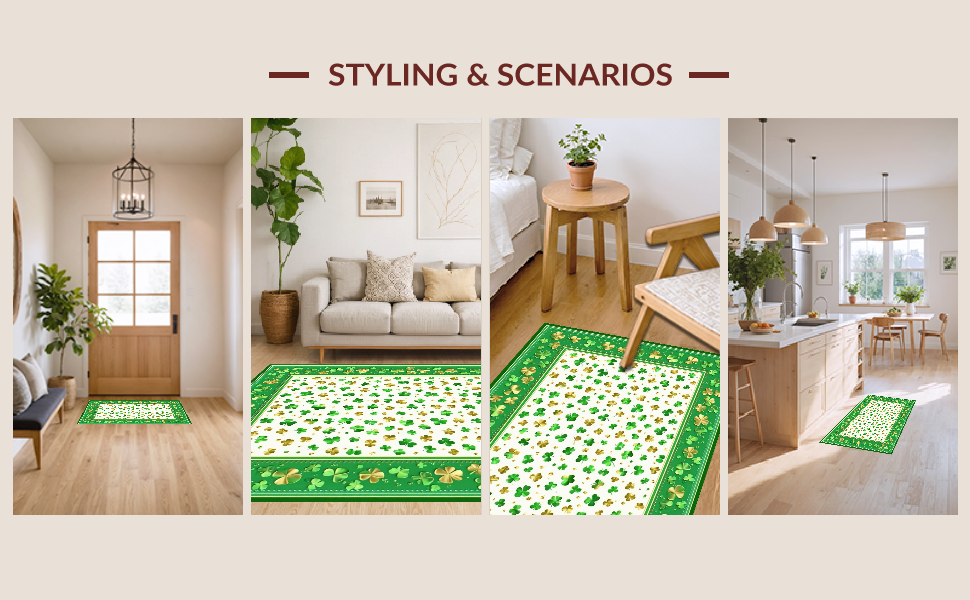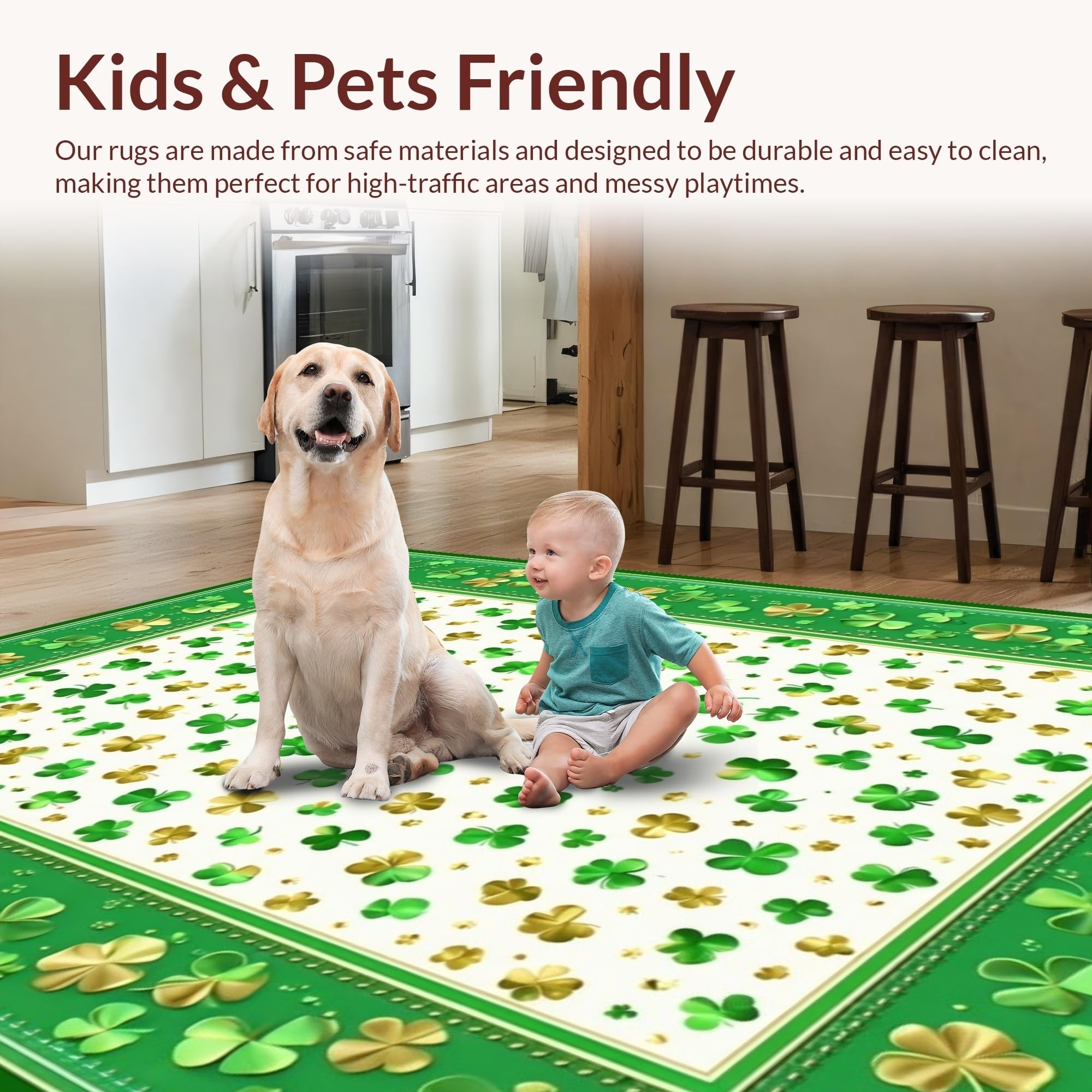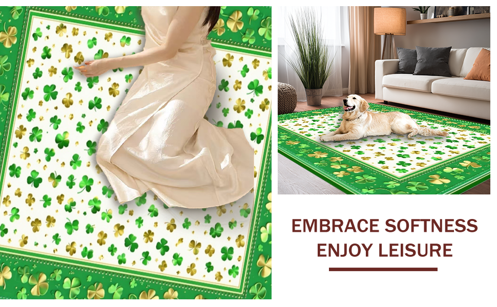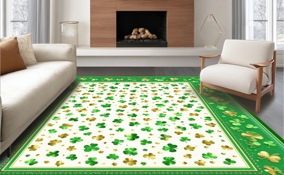 Ultra Soft Area Rug, Non Slip, Stain Resistant, Washable Area Rugs for Living Room, Bedroom, Luxurious Clover Print Elegance(Green) Overview:
