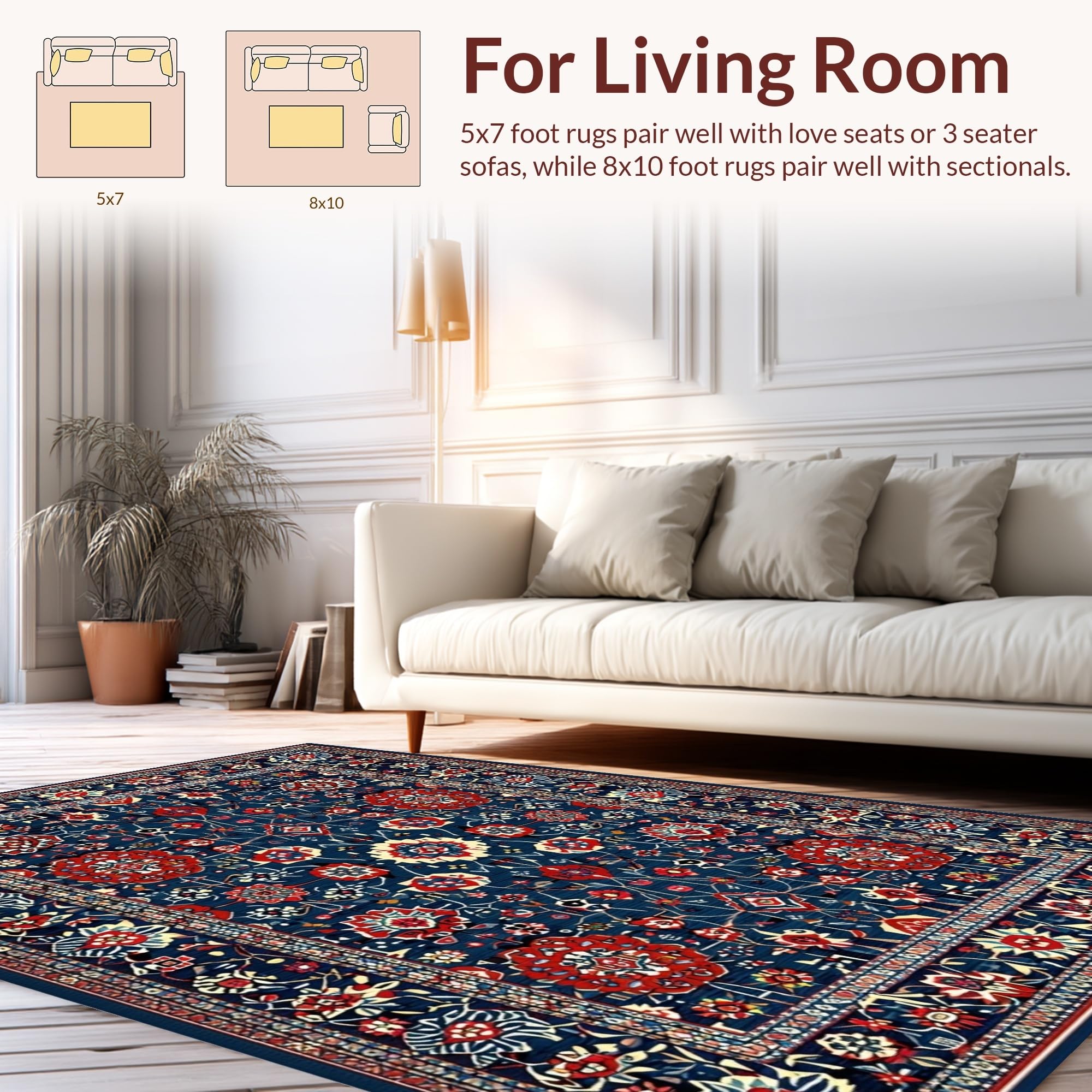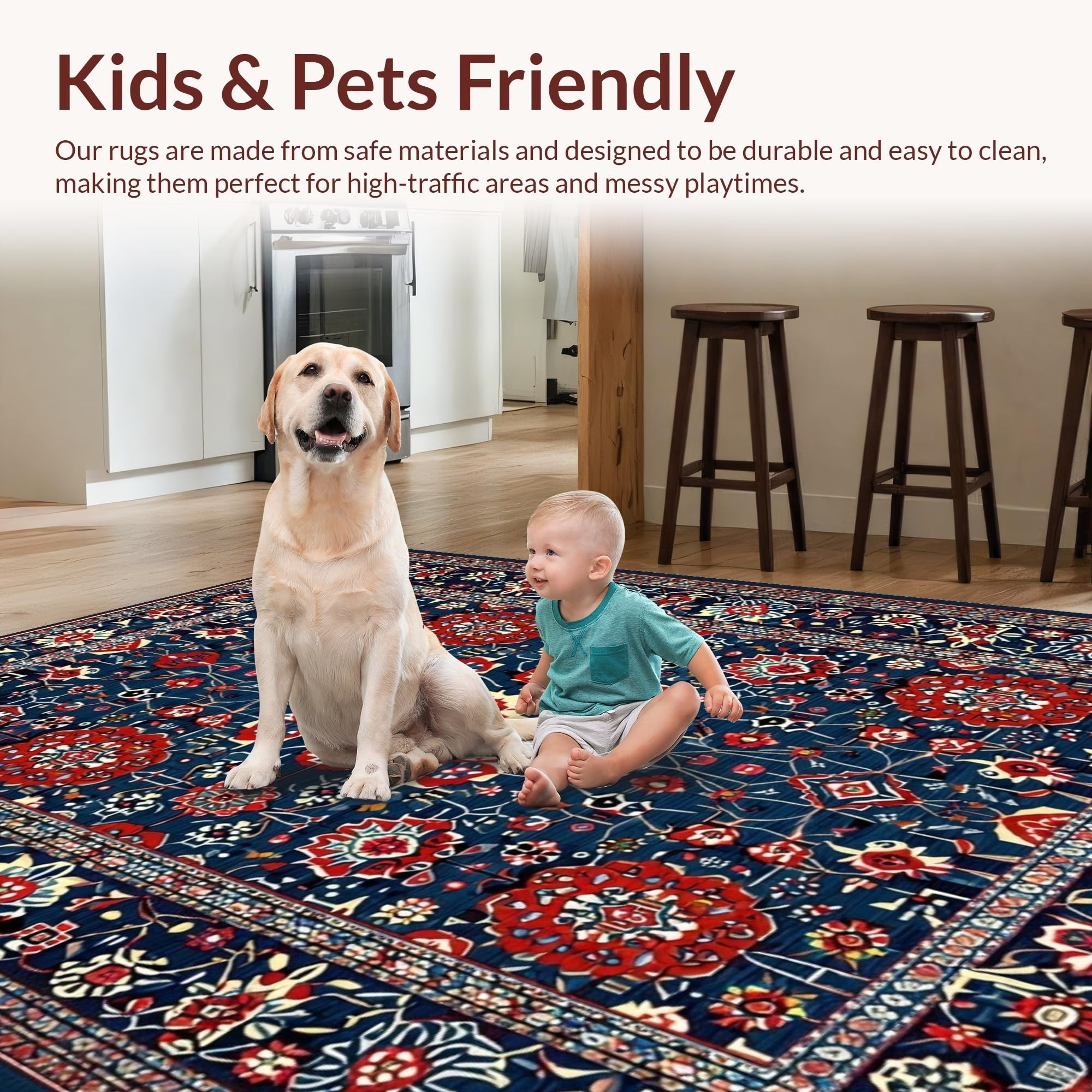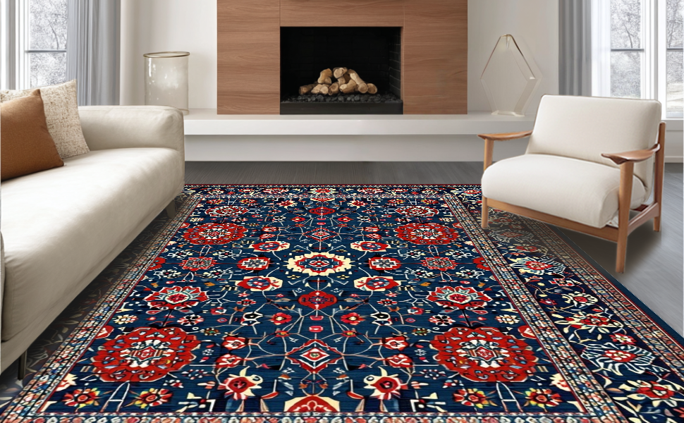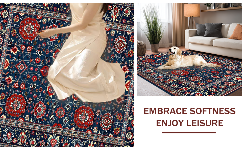 Ultra Soft Area Rug, Non Slip, Stain Resistant, Washable Area Rugs for Living Room, Bedroom, Luxurious Colorful Botanical Patterns(Blue) Overview:
