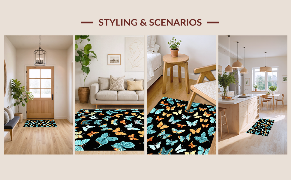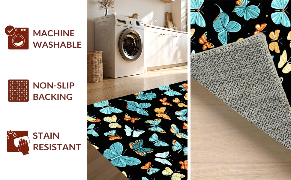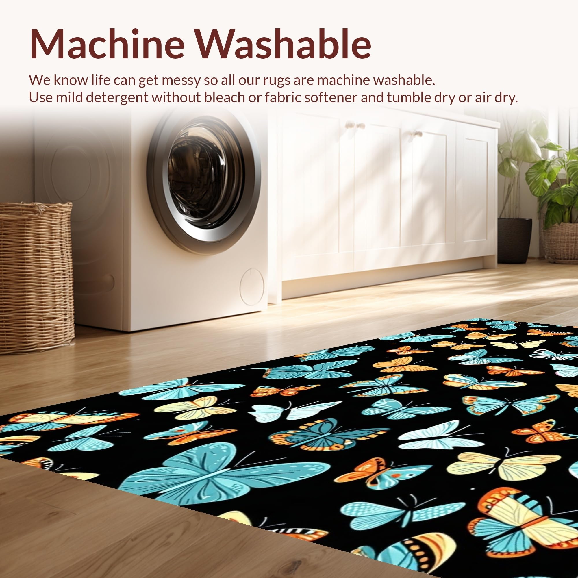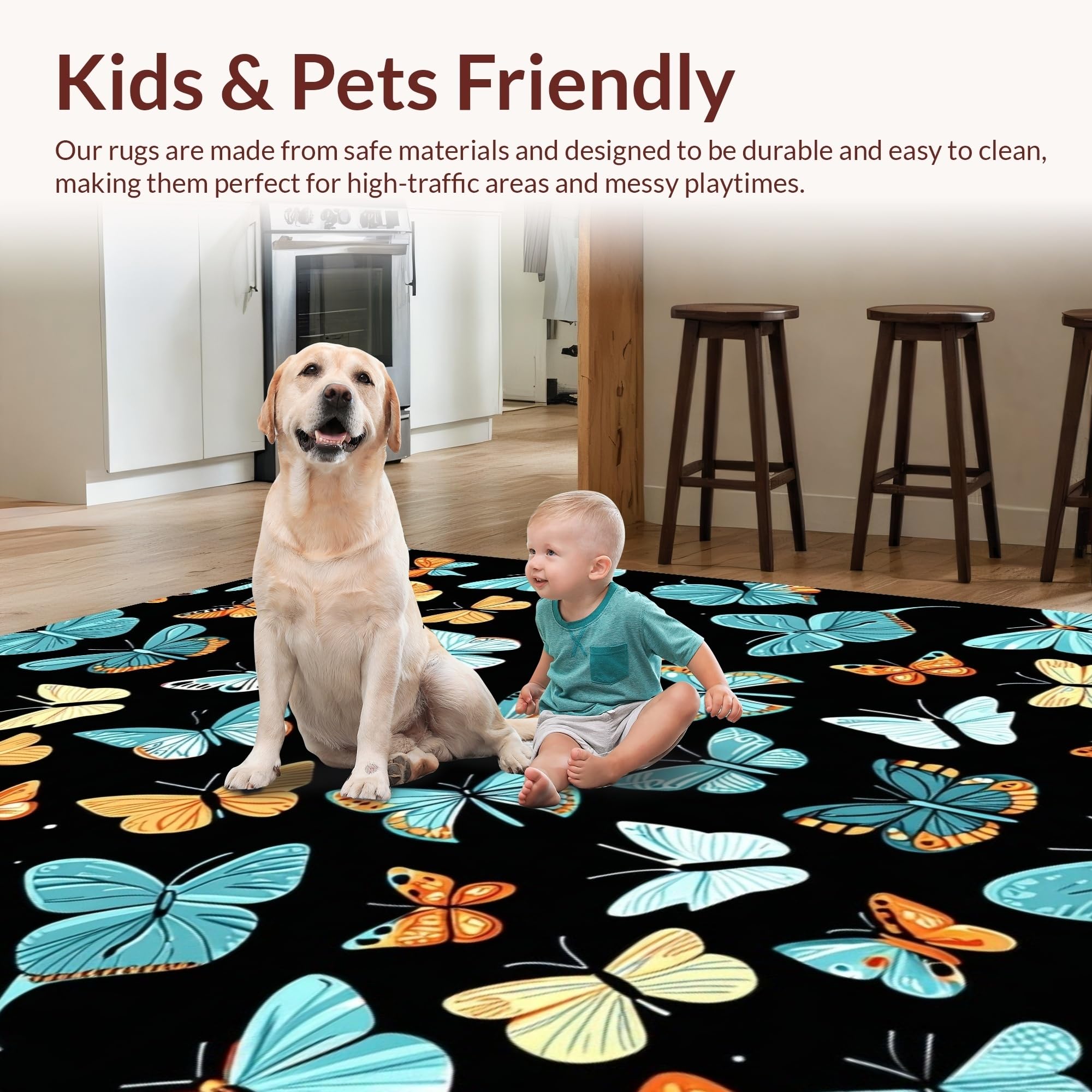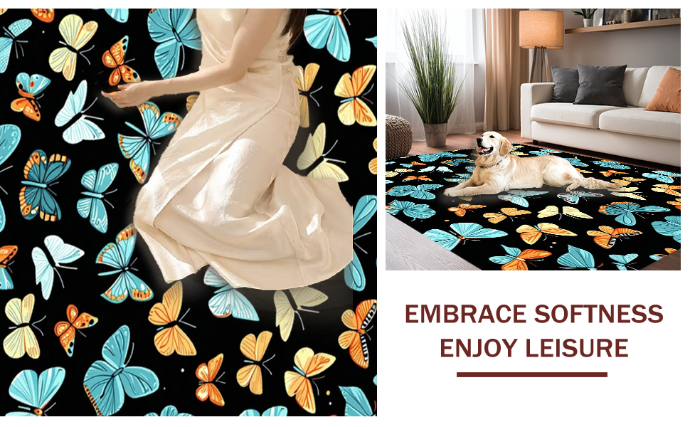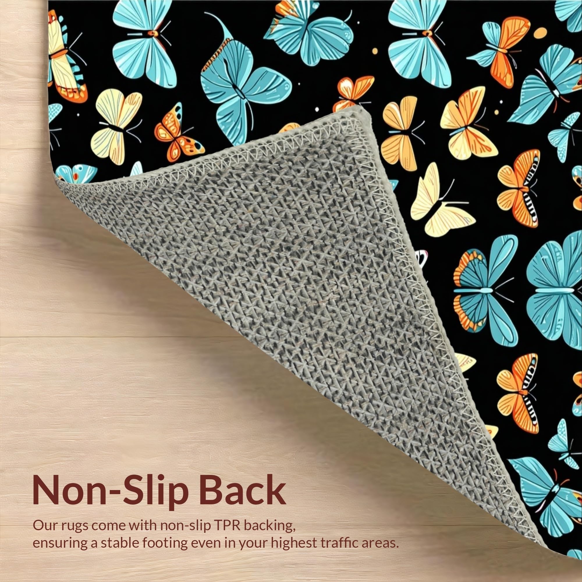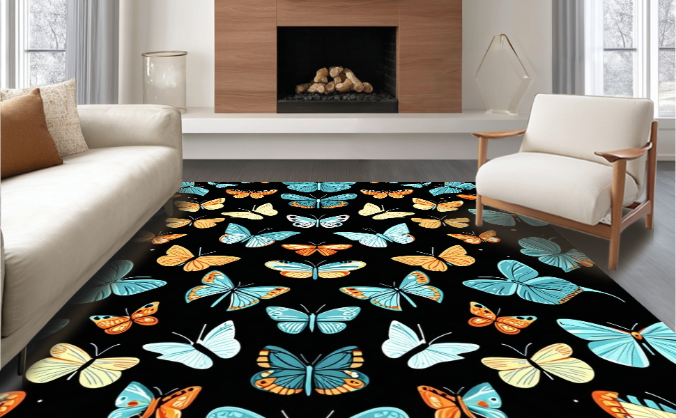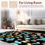 Ultra Soft Area Rug, Non Slip, Stain Resistant, Washable Area Rugs for Living Room, Bedroom, Luxurious Colorful Butterfly Theme(Blue) Overview: