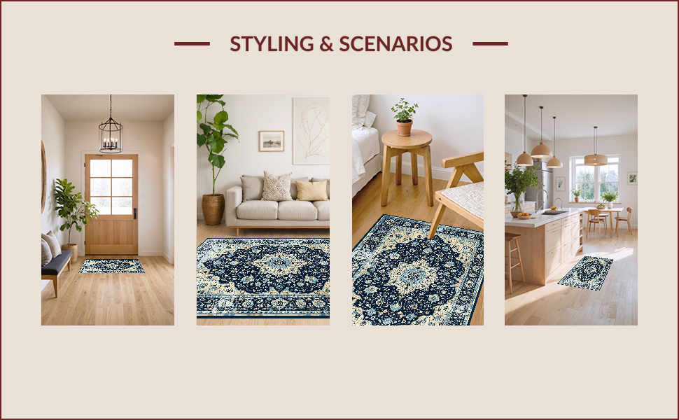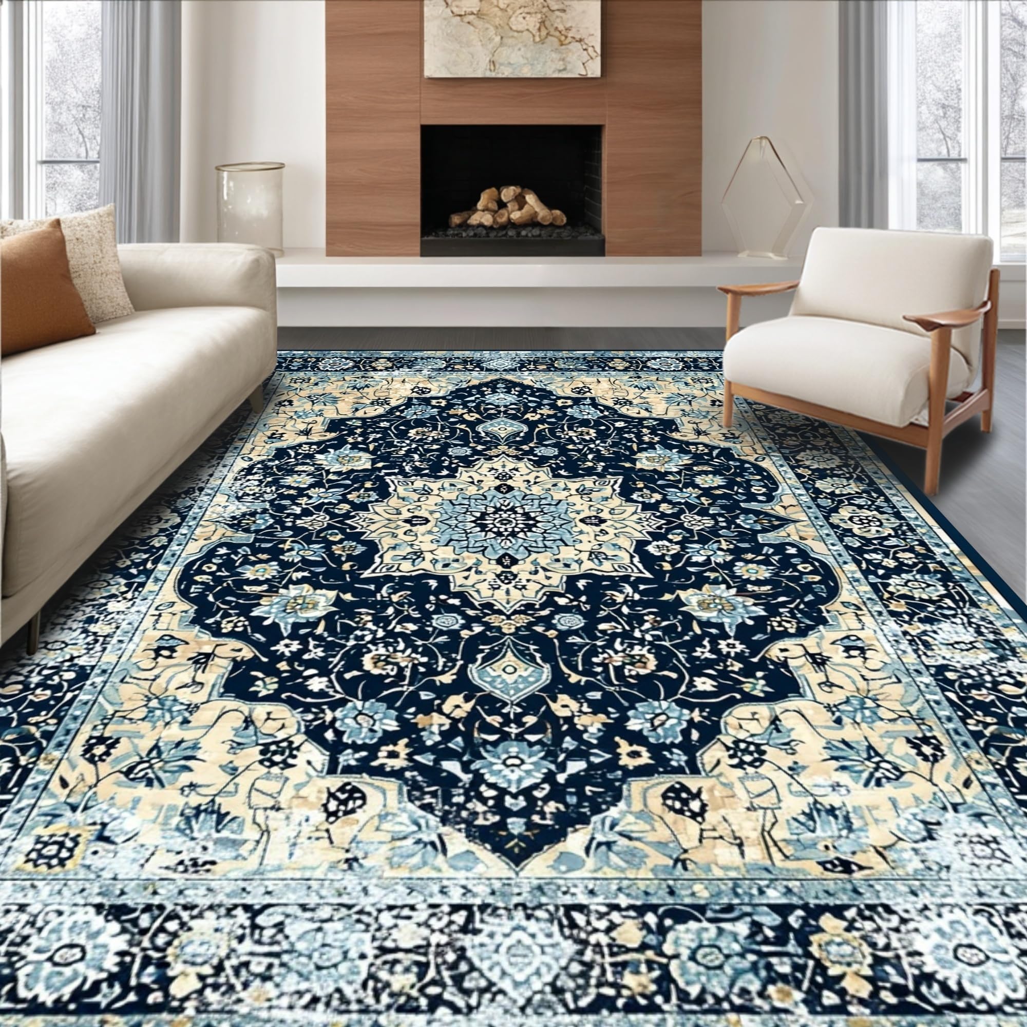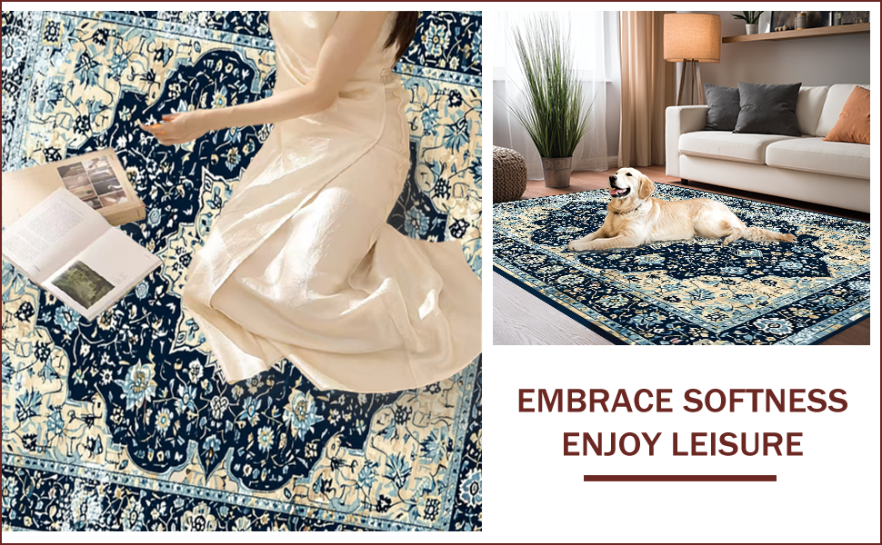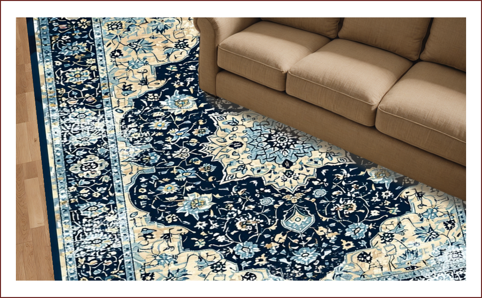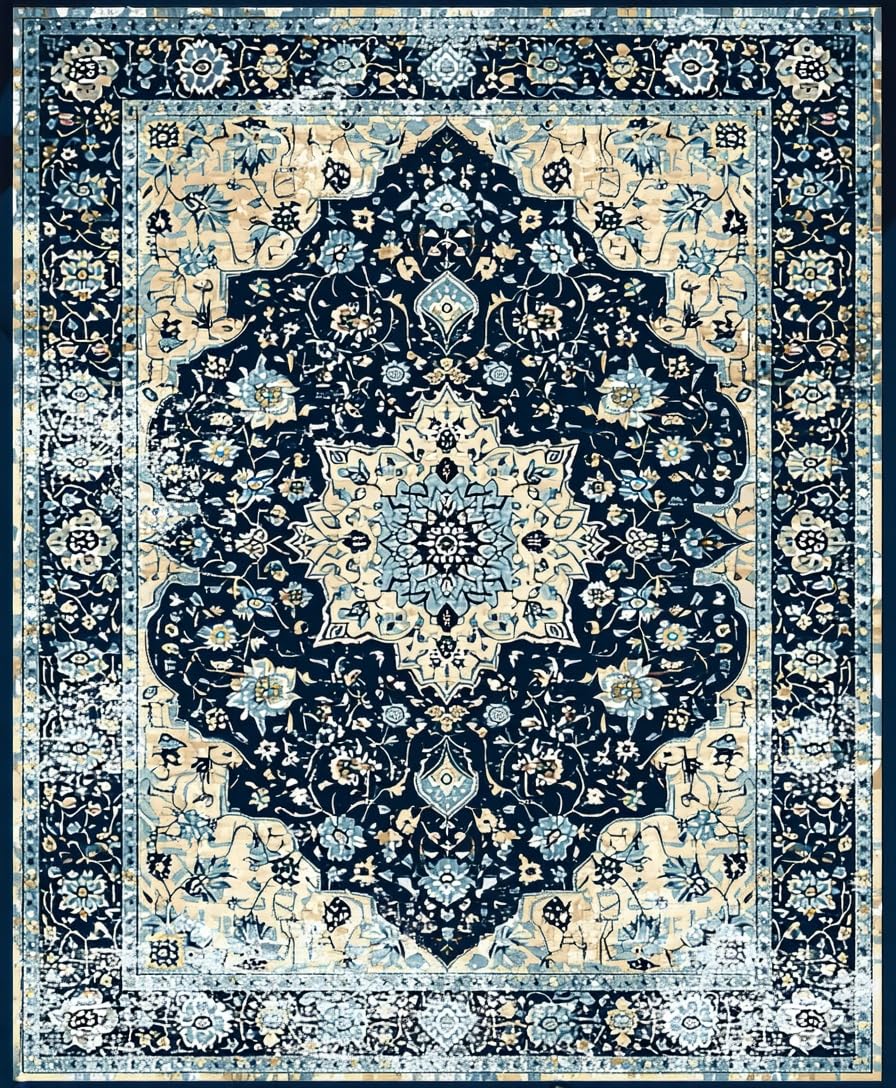 Ultra Soft Area Rug, Non Slip, Stain Resistant, Washable Area Rugs for Living Room, Bedroom, Luxurious Colorful Distressed Motif(Blue) Overview: