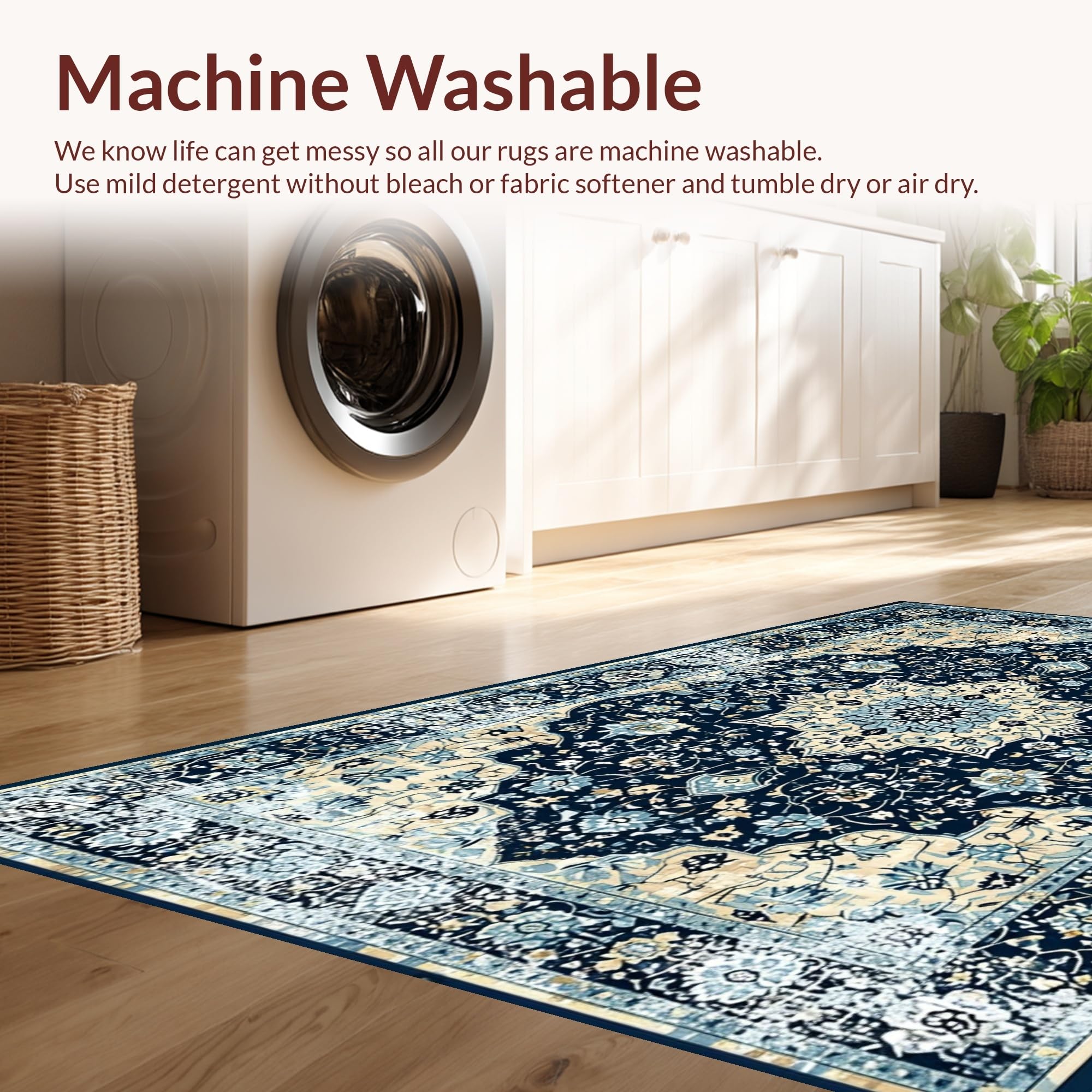 - Machine Washable: Our rugs can be easily thrown in the wash machine.