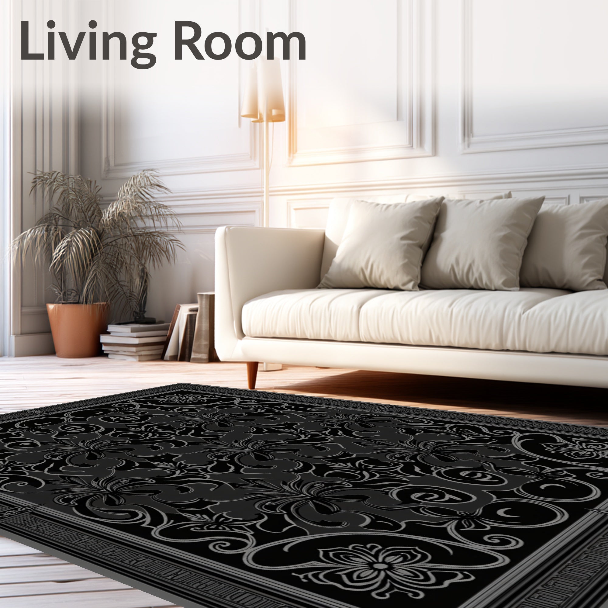 Ultra Soft Area Rug, Non Slip, Stain Resistant, Washable Area Rugs for Living Room, Bedroom, Luxurious Damask Victorian Baroque Scrollwork Palatial(Black) Overview: