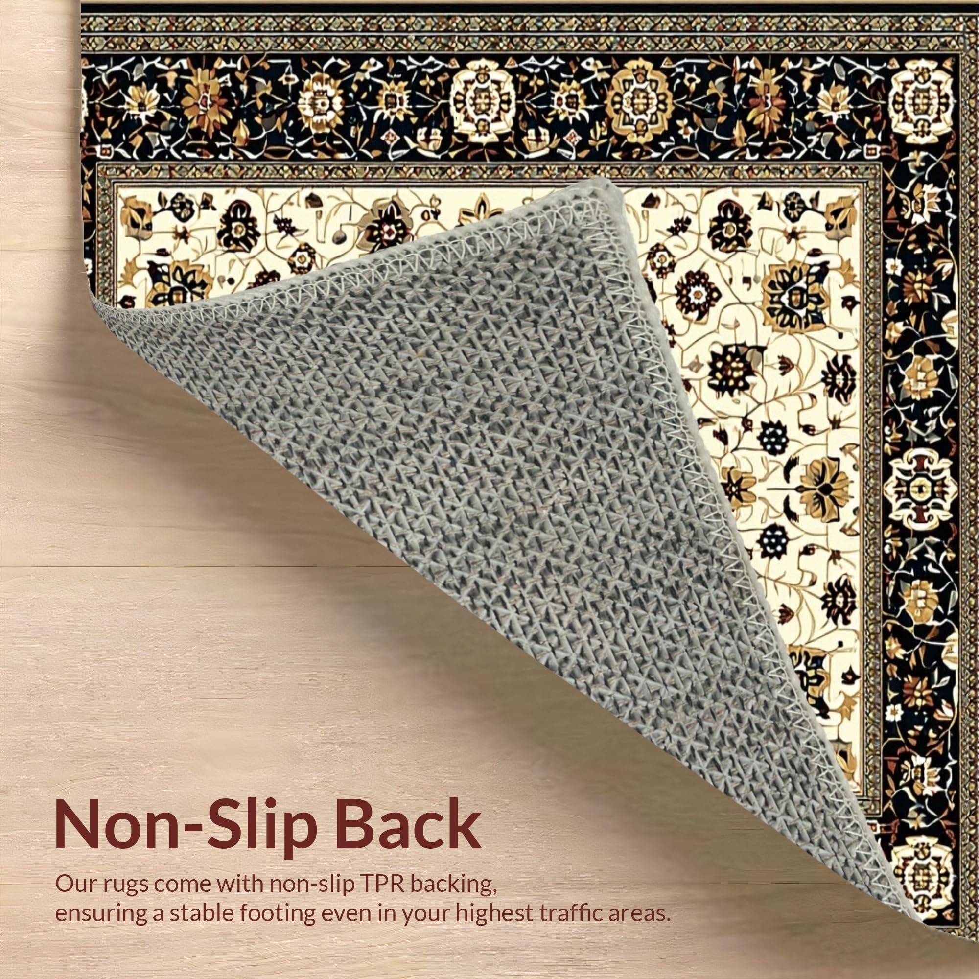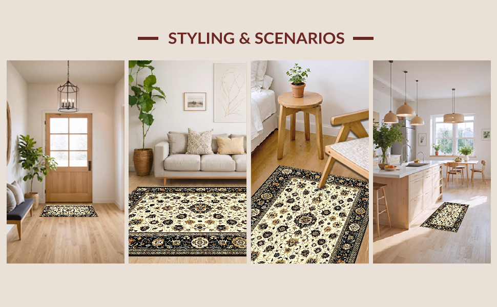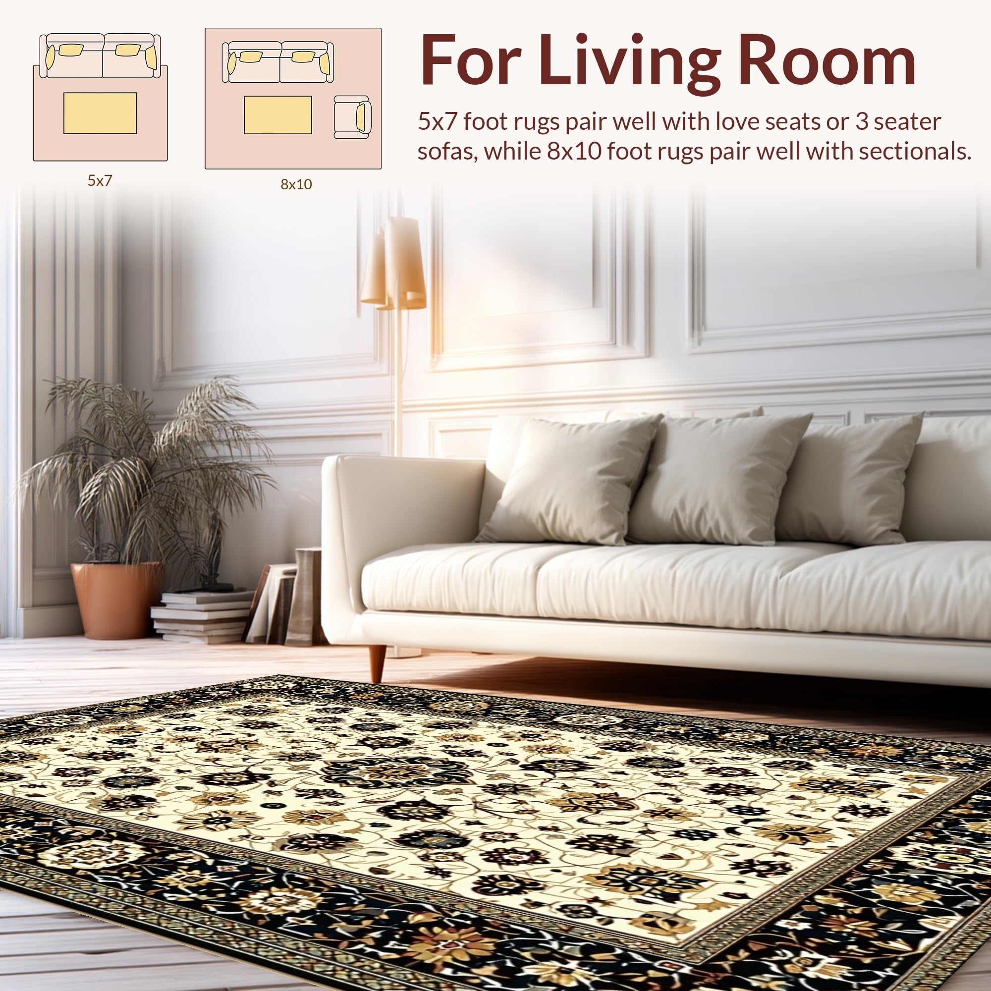 Ultra Soft Area Rug, Non Slip, Stain Resistant, Washable Area Rugs for Living Room, Bedroom, Luxurious Distressed Geometric Motif(Beige) Overview: