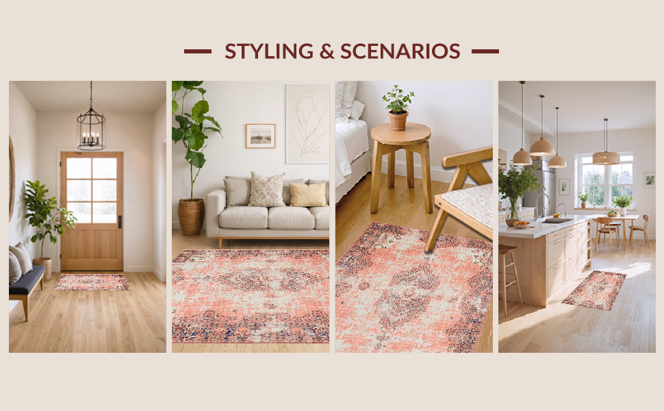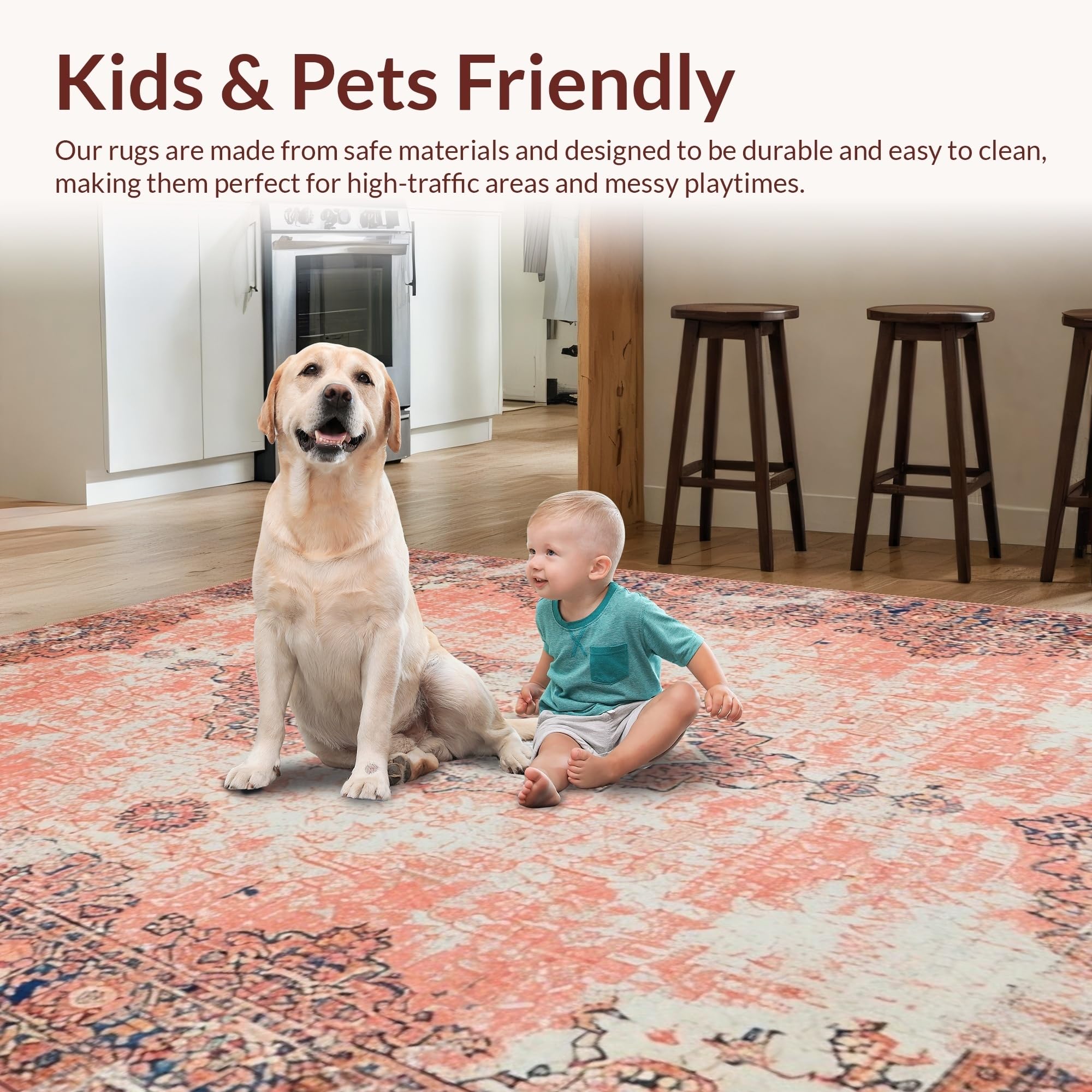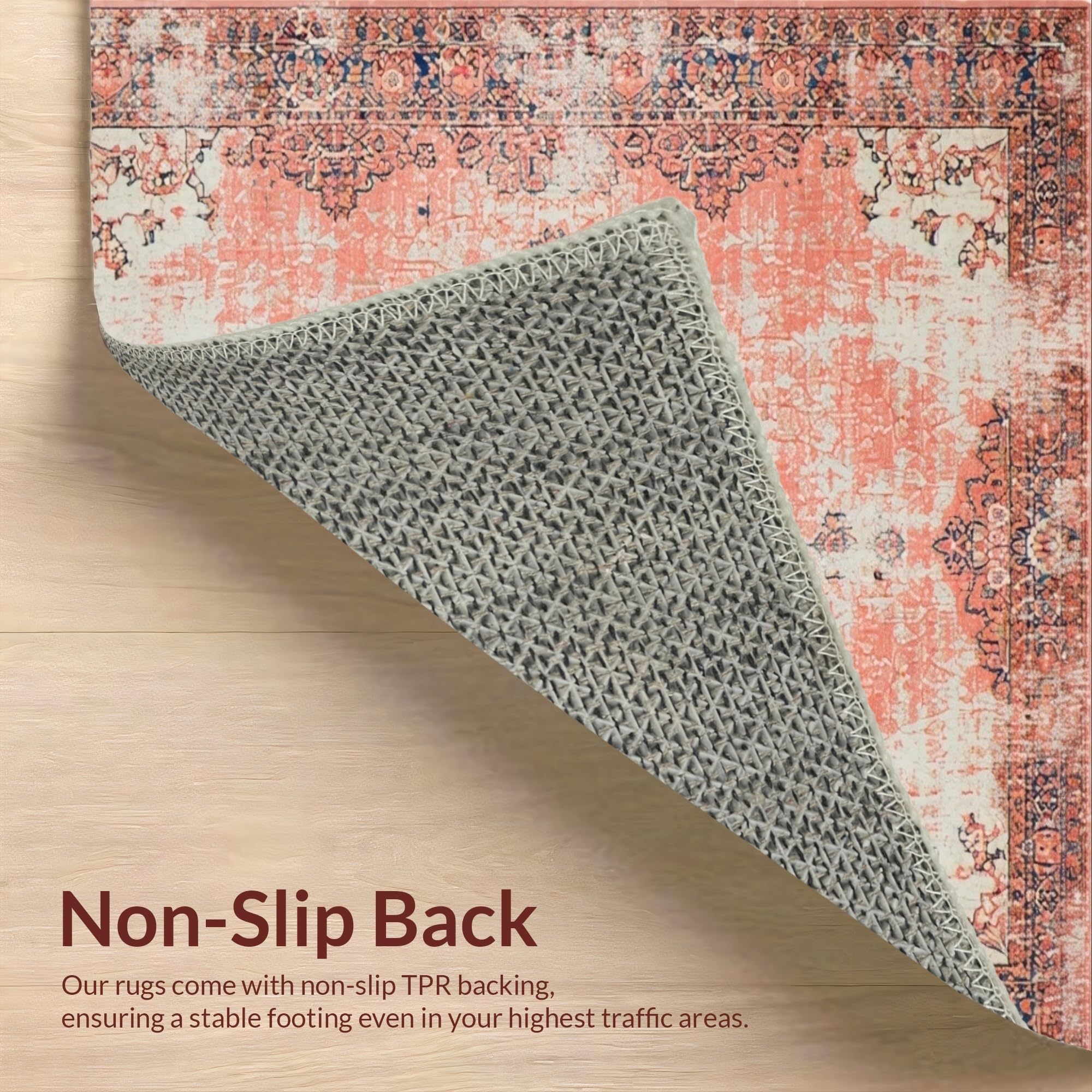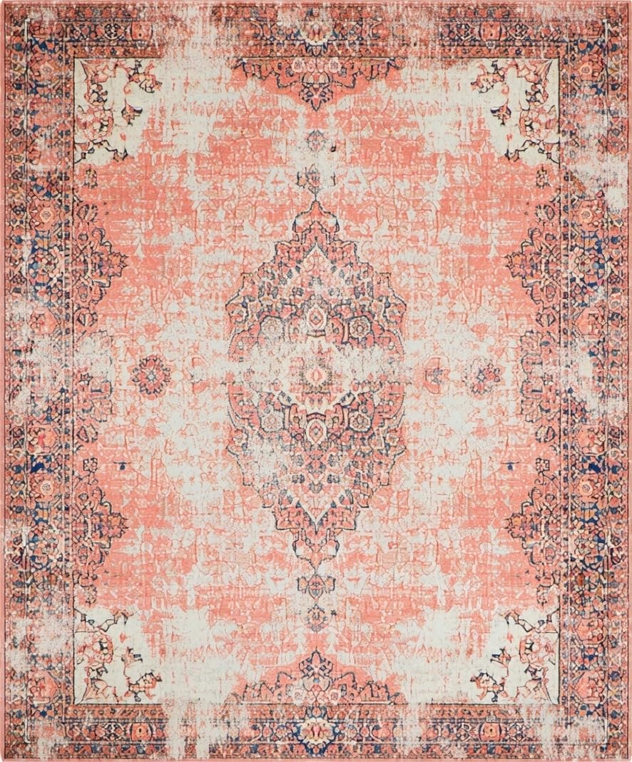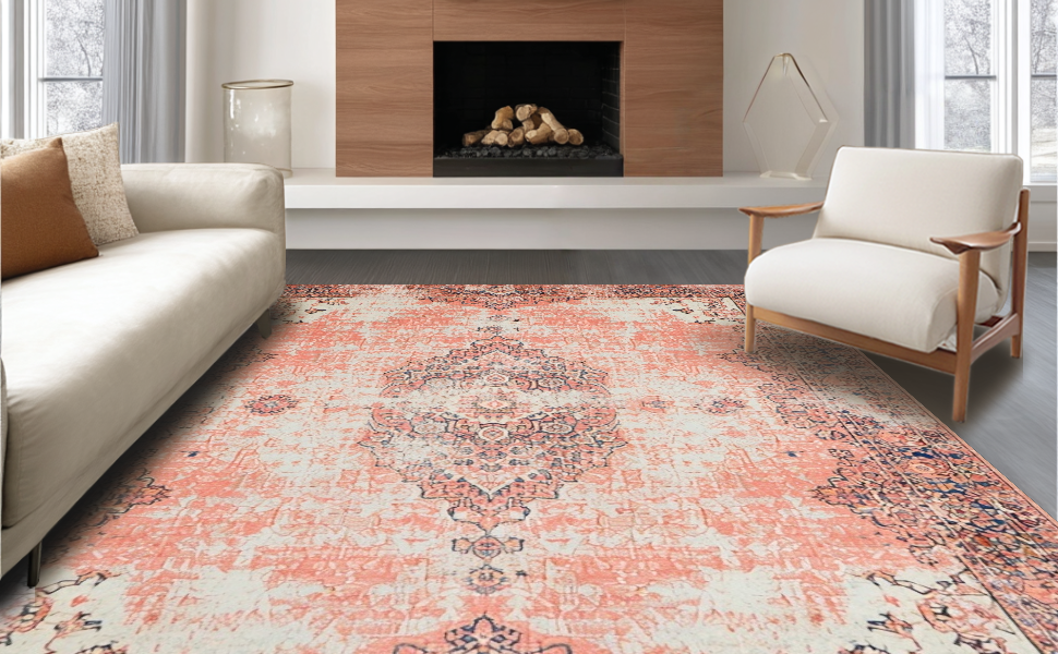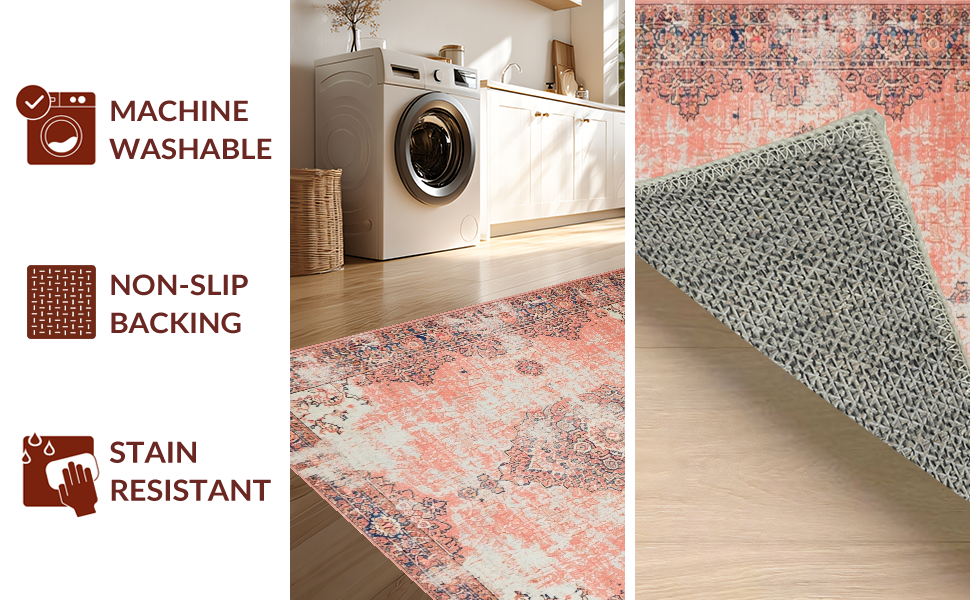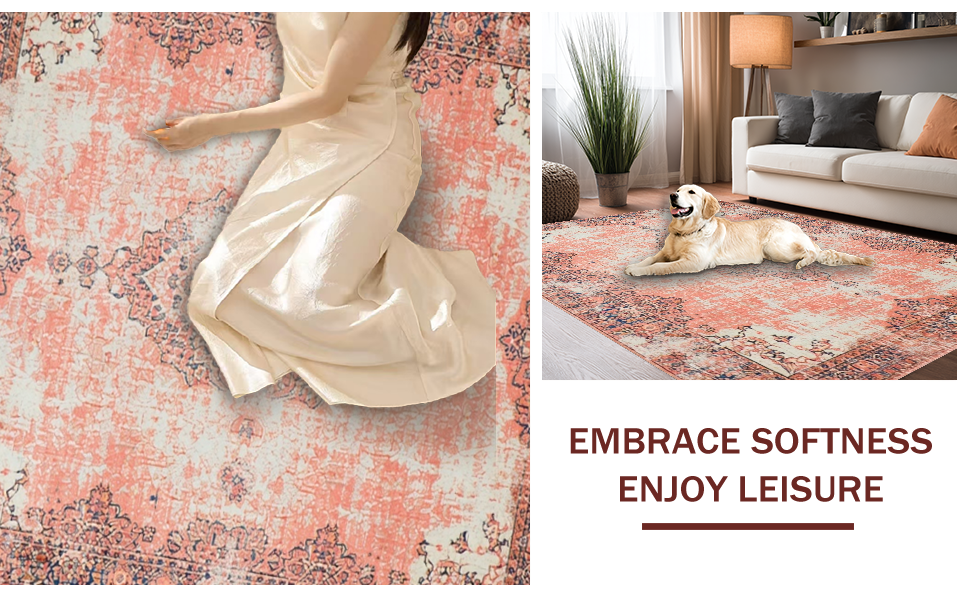 Ultra Soft Area Rug, Non Slip, Stain Resistant, Washable Area Rugs for Living Room, Bedroom, Luxurious Distressed Geometric Pattern(Pink) Overview: