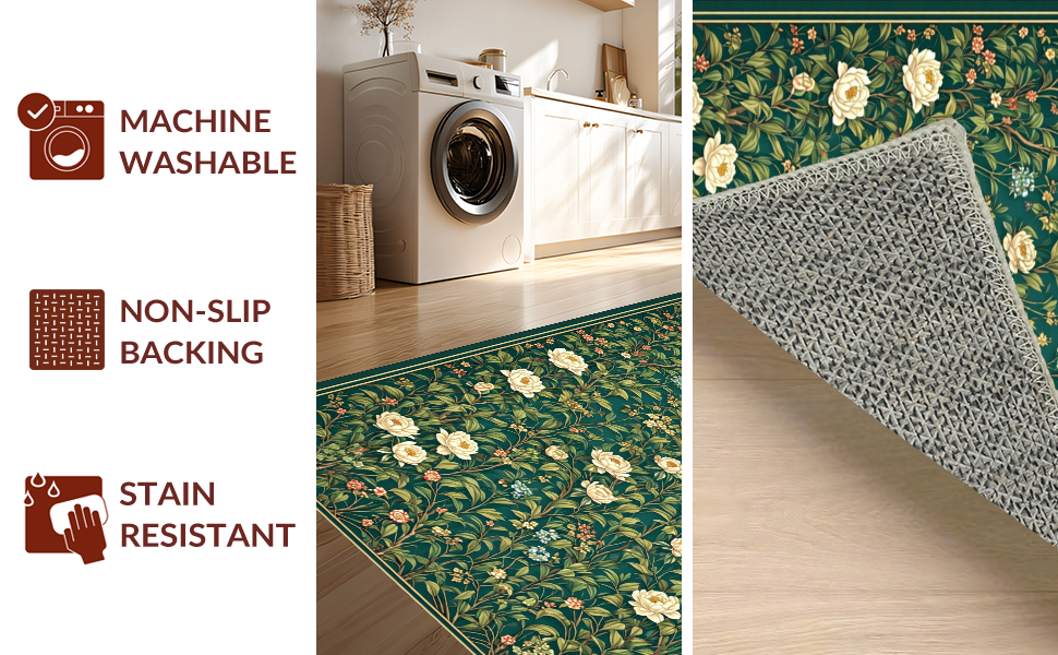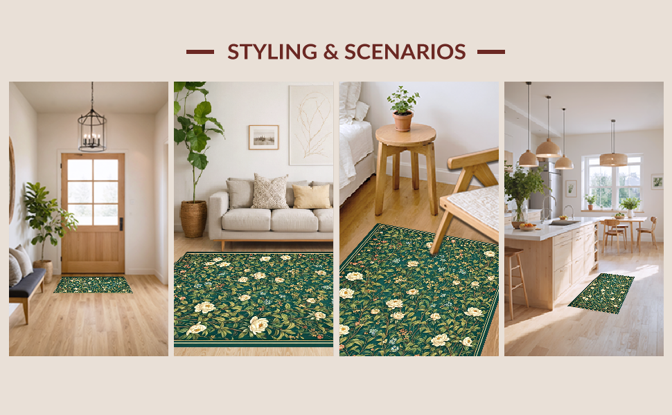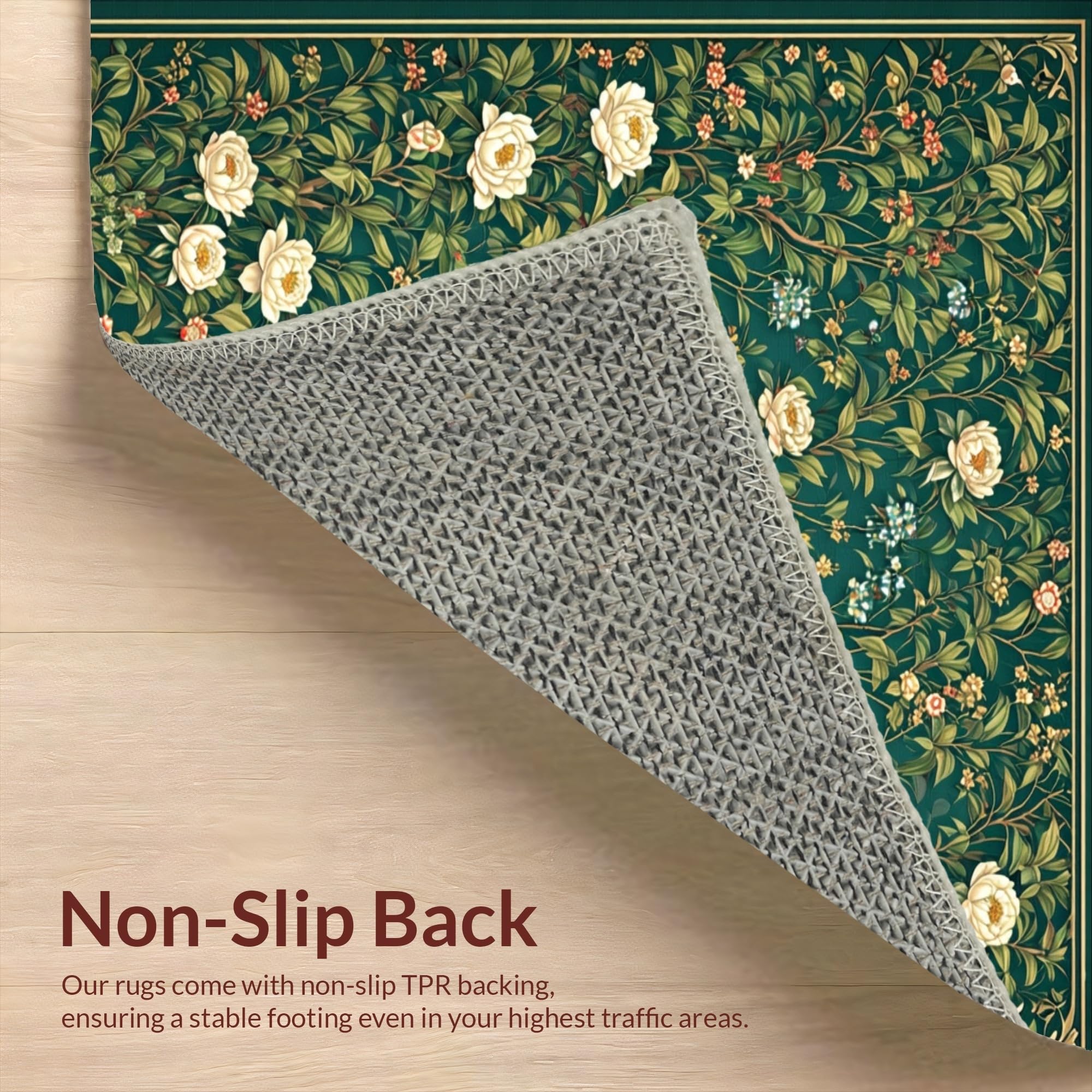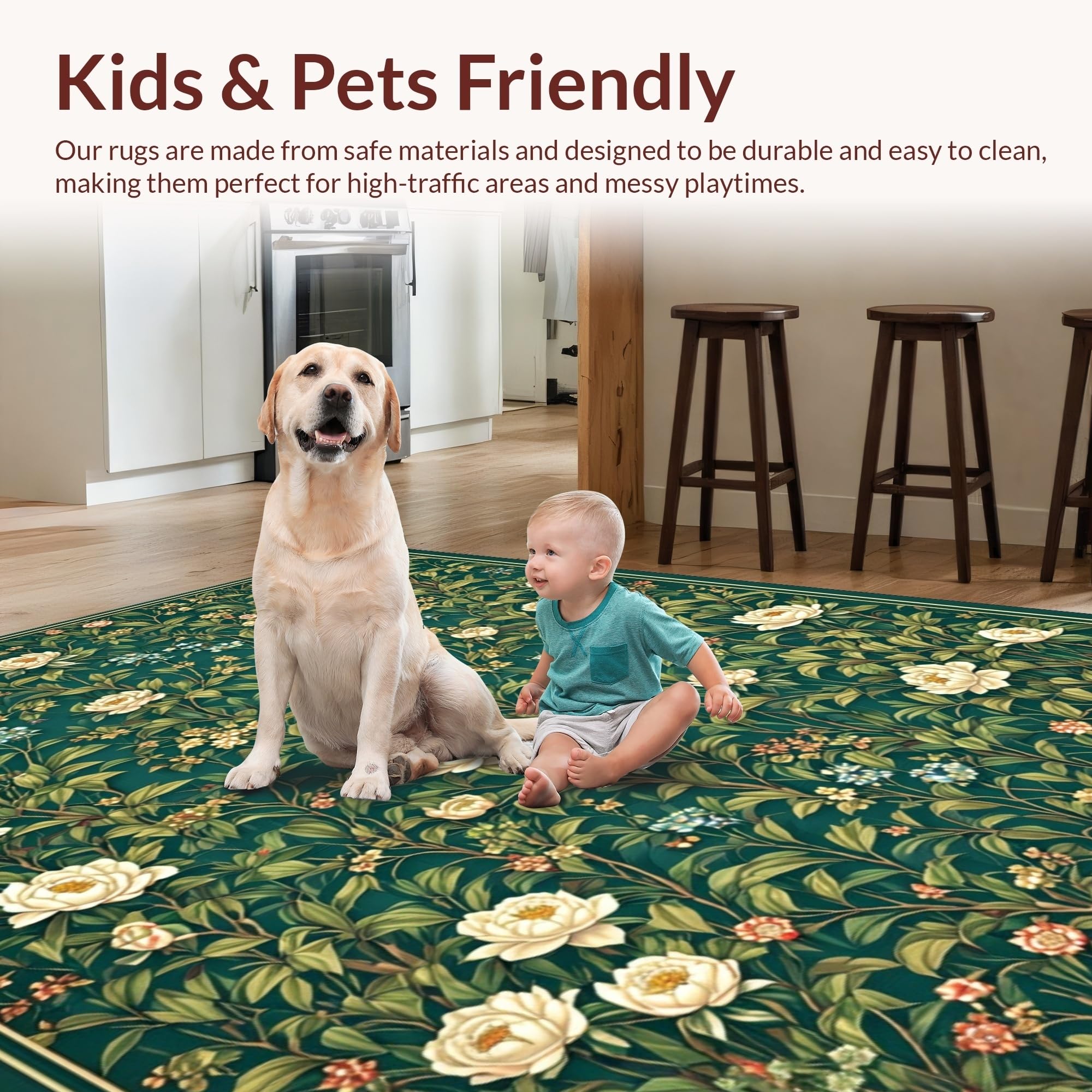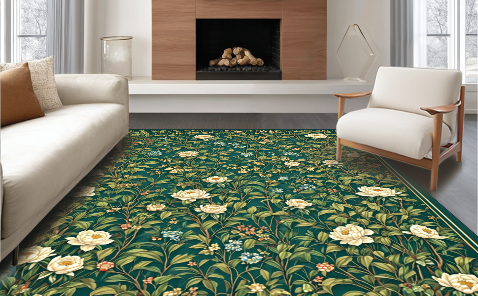 Ultra Soft Area Rug, Non Slip, Stain Resistant, Washable Area Rugs for Living Room, Bedroom, Luxurious Emerald Botanical Imagery(Green) Overview: