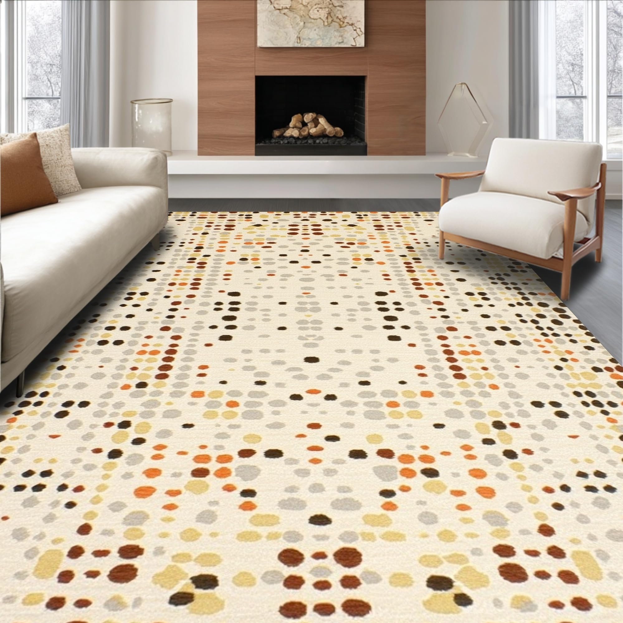 Ultra Soft Area Rug, Non Slip, Stain Resistant, Washable Area Rugs for Living Room, Bedroom, Luxurious Faux Rabbit Fur Abstract Animal Inspired Design in Beige(Ivory) Overview: