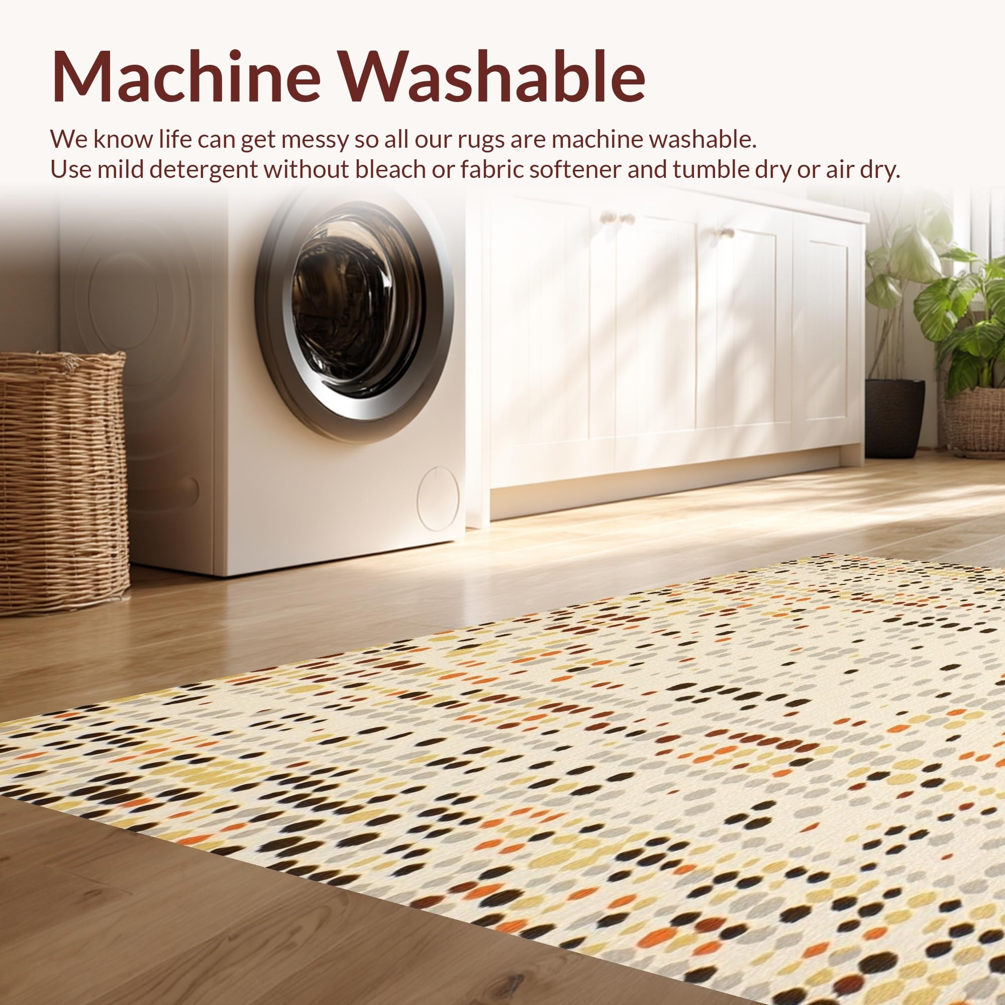 - Machine Washable: Our rugs can be easily thrown in the wash machine.