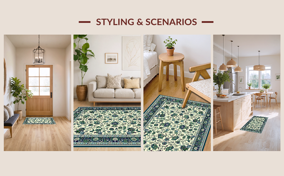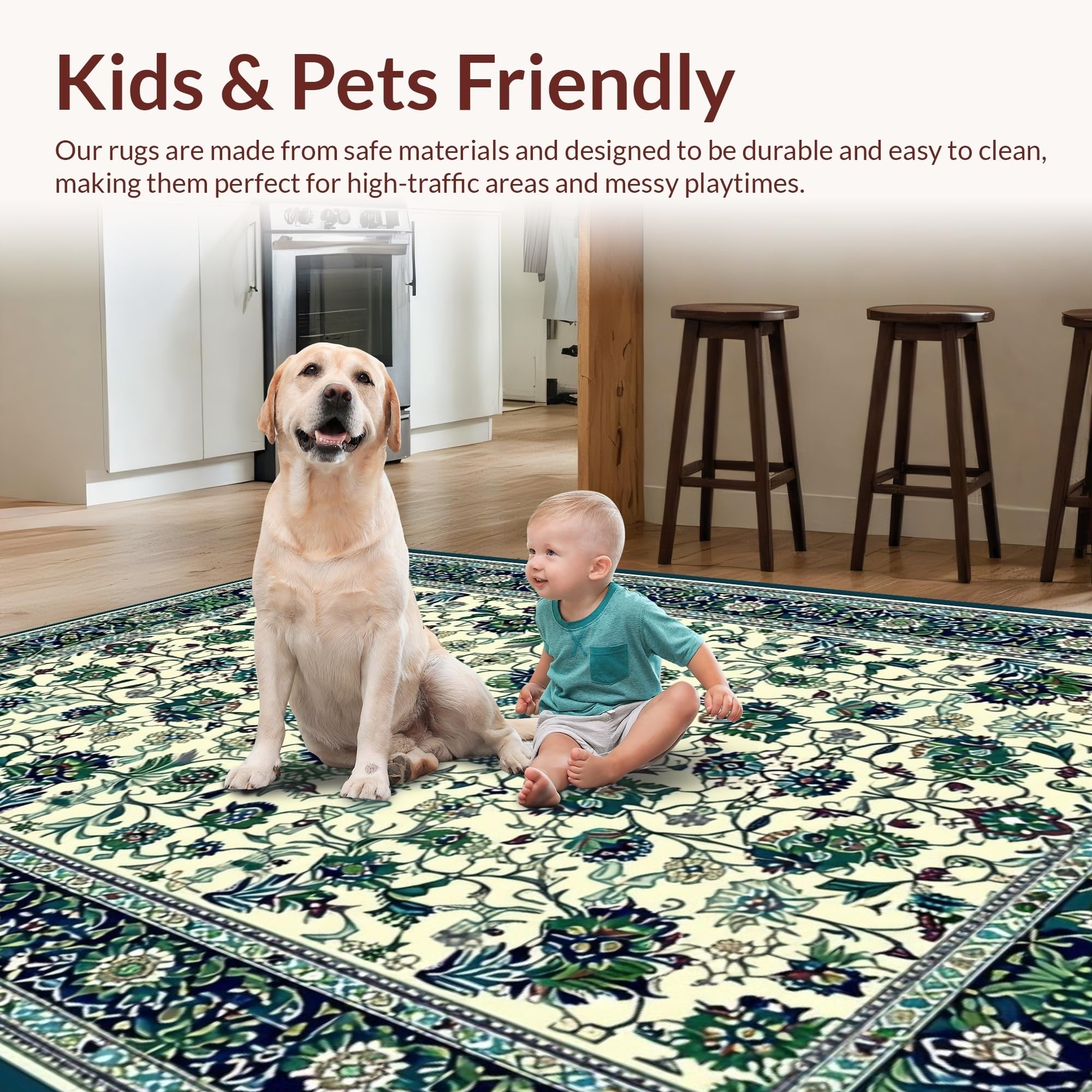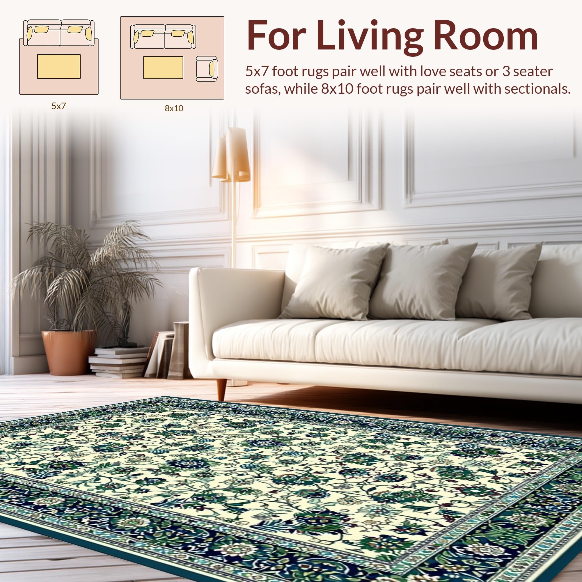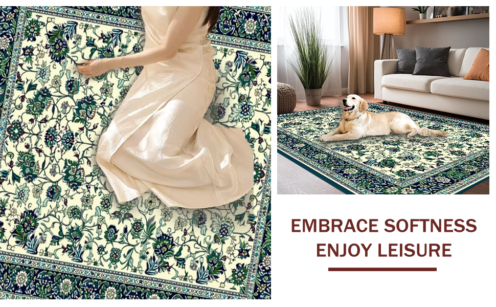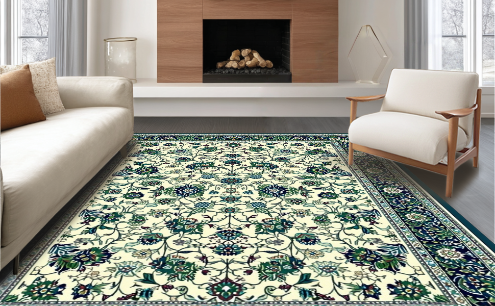 Ultra Soft Area Rug, Non Slip, Stain Resistant, Washable Area Rugs for Living Room, Bedroom, Luxurious Floral Tapestry Inspiration(Ivory) Overview: