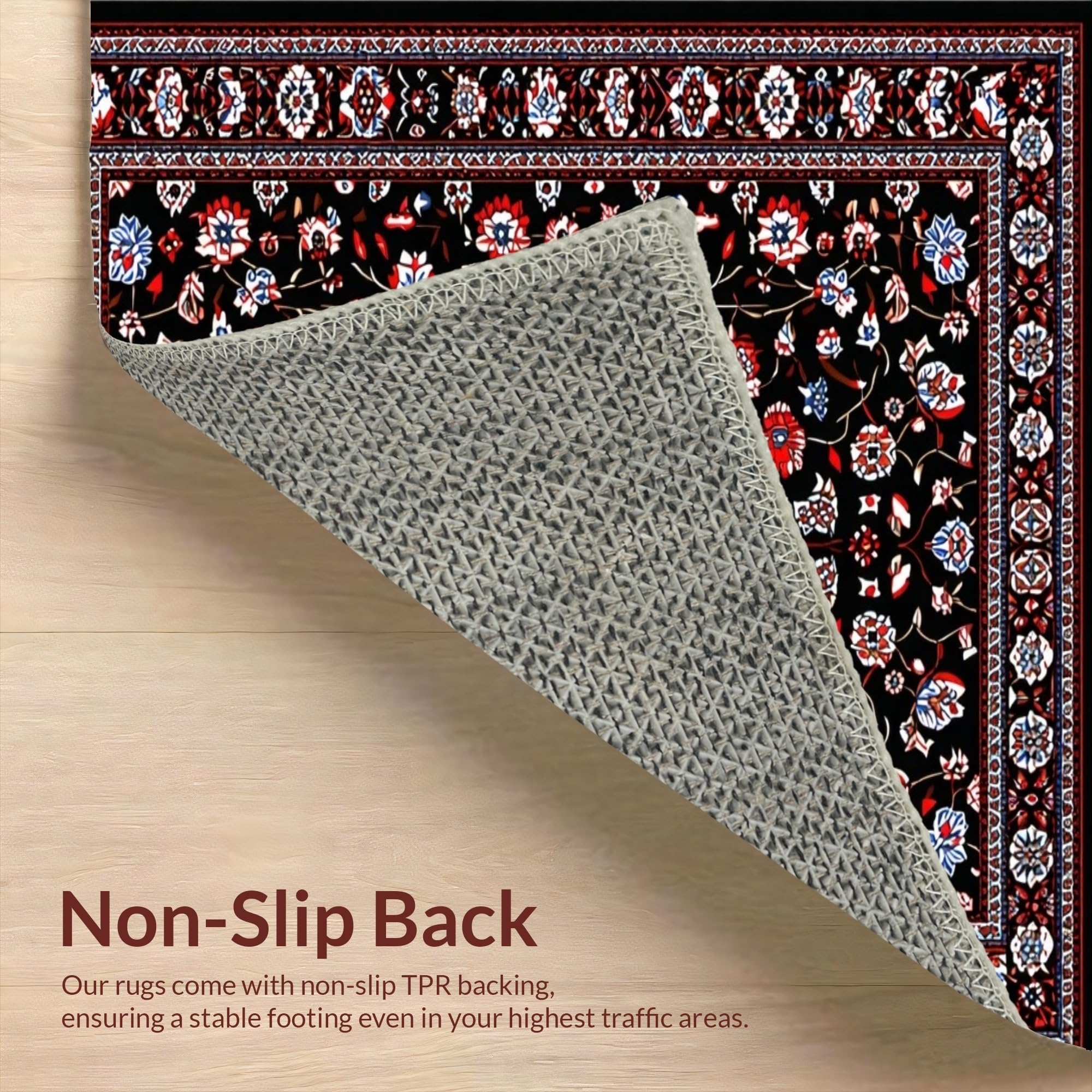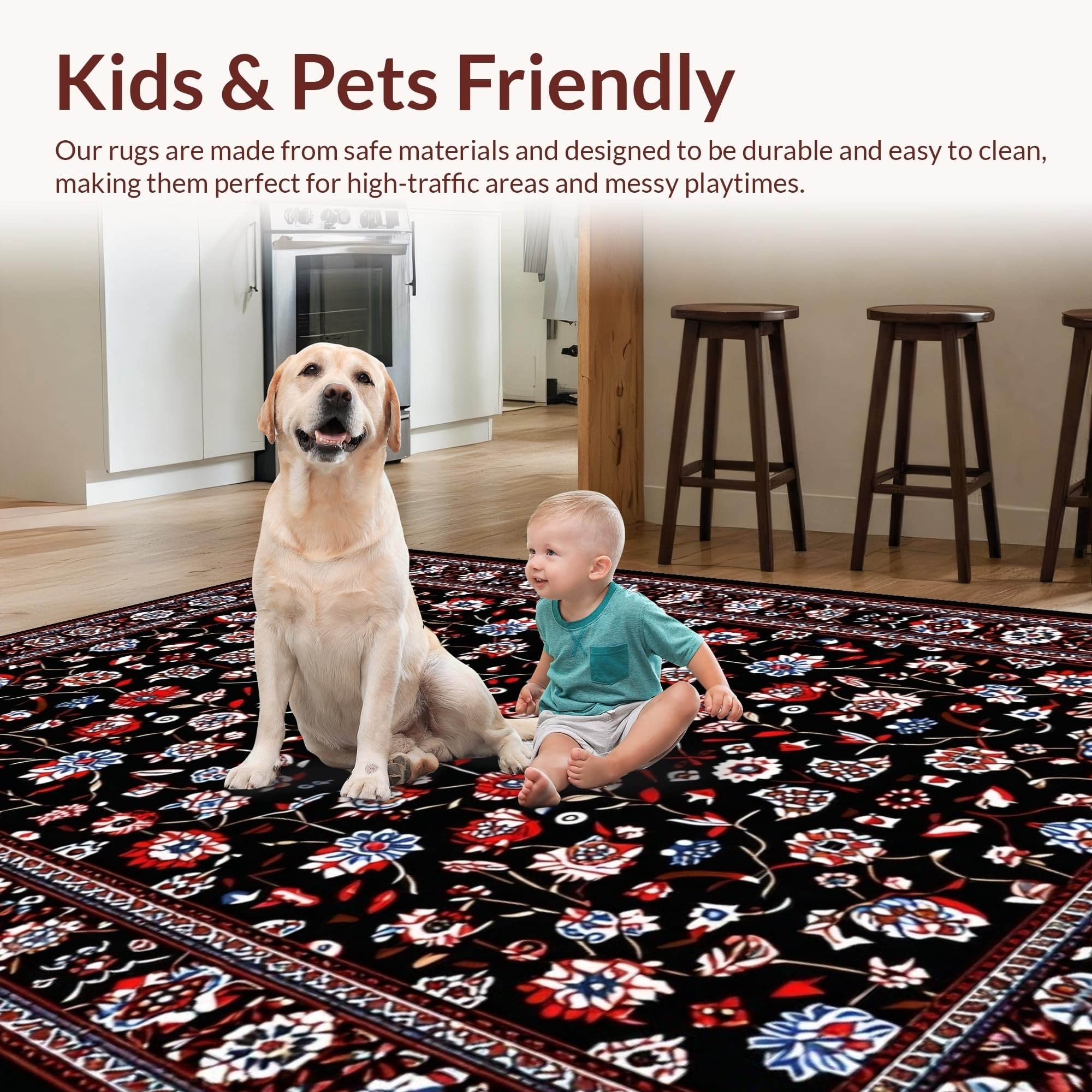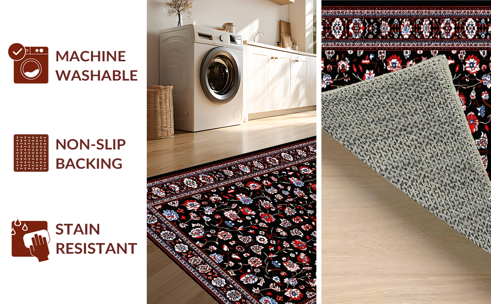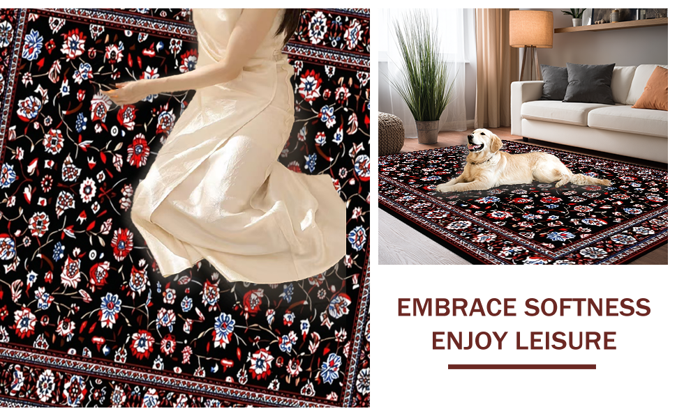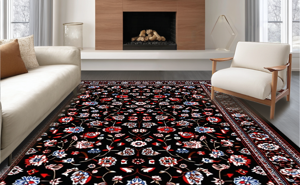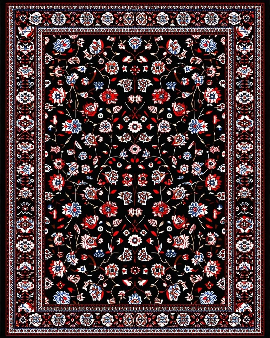 Ultra Soft Area Rug, Non Slip, Stain Resistant, Washable Area Rugs for Living Room, Bedroom, Luxurious Floral Tapestry Style(Black) Overview: