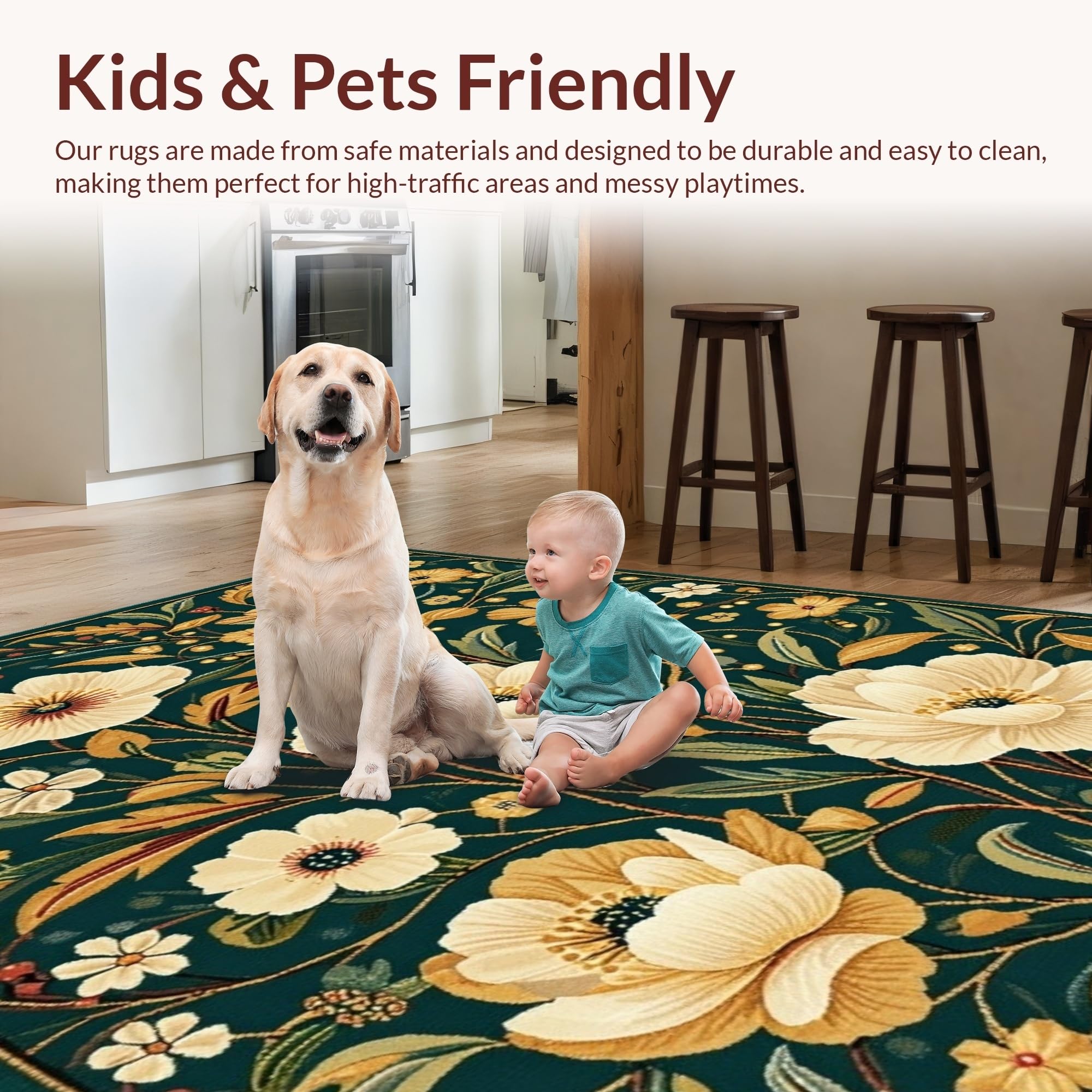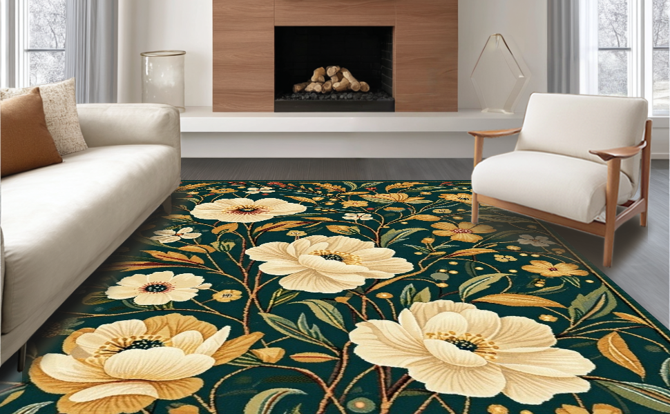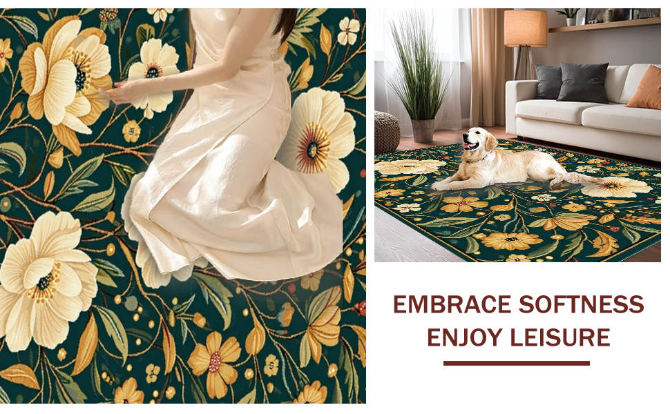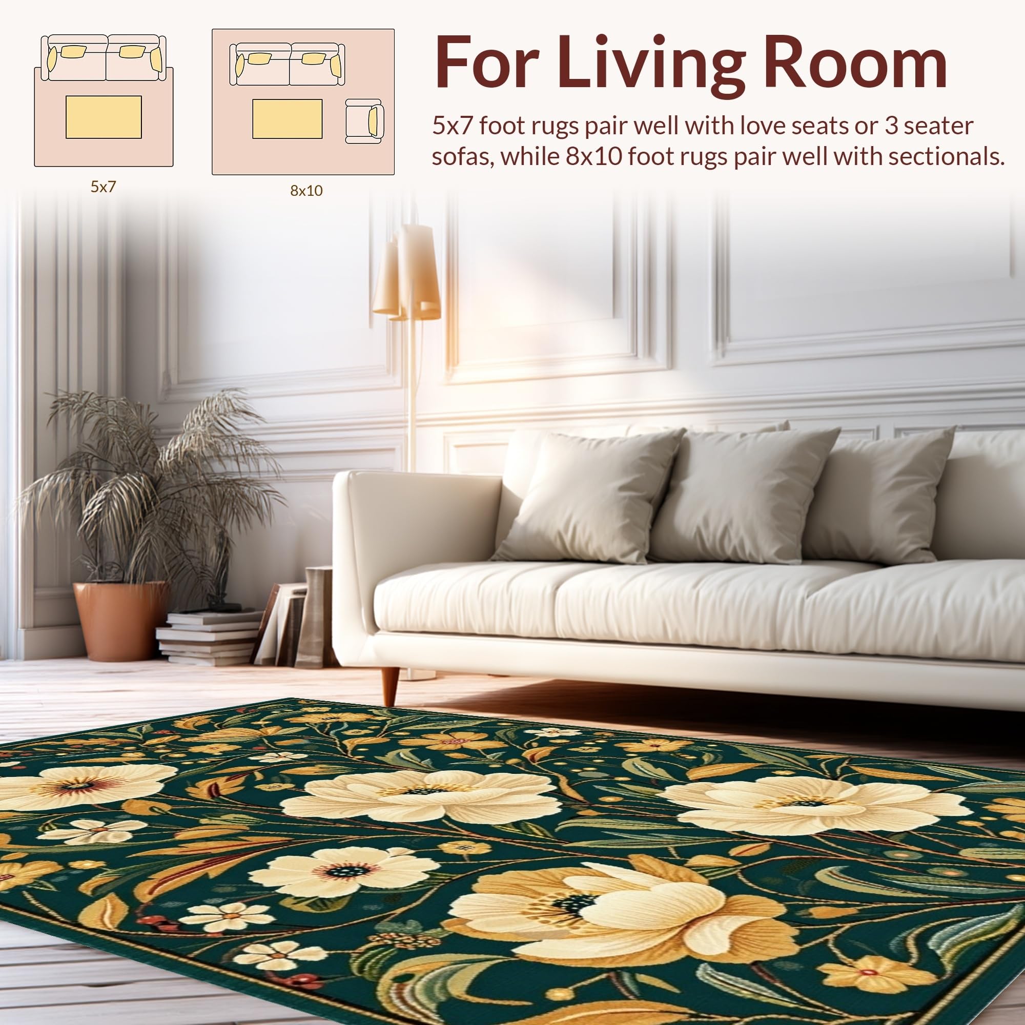 Ultra Soft Area Rug, Non Slip, Stain Resistant, Washable Area Rugs for Living Room, Bedroom, Luxurious Gold Flecked Design(Green) Overview: