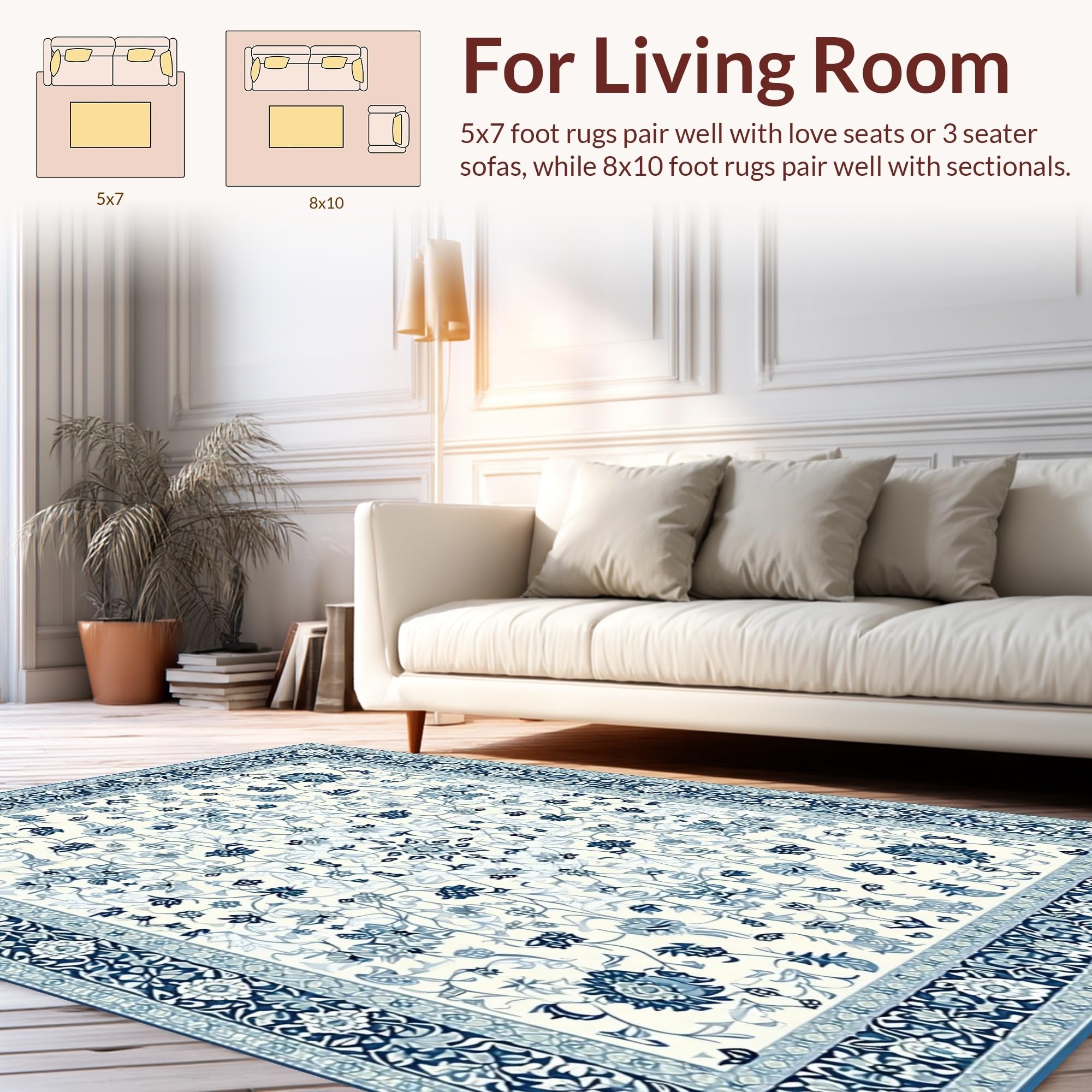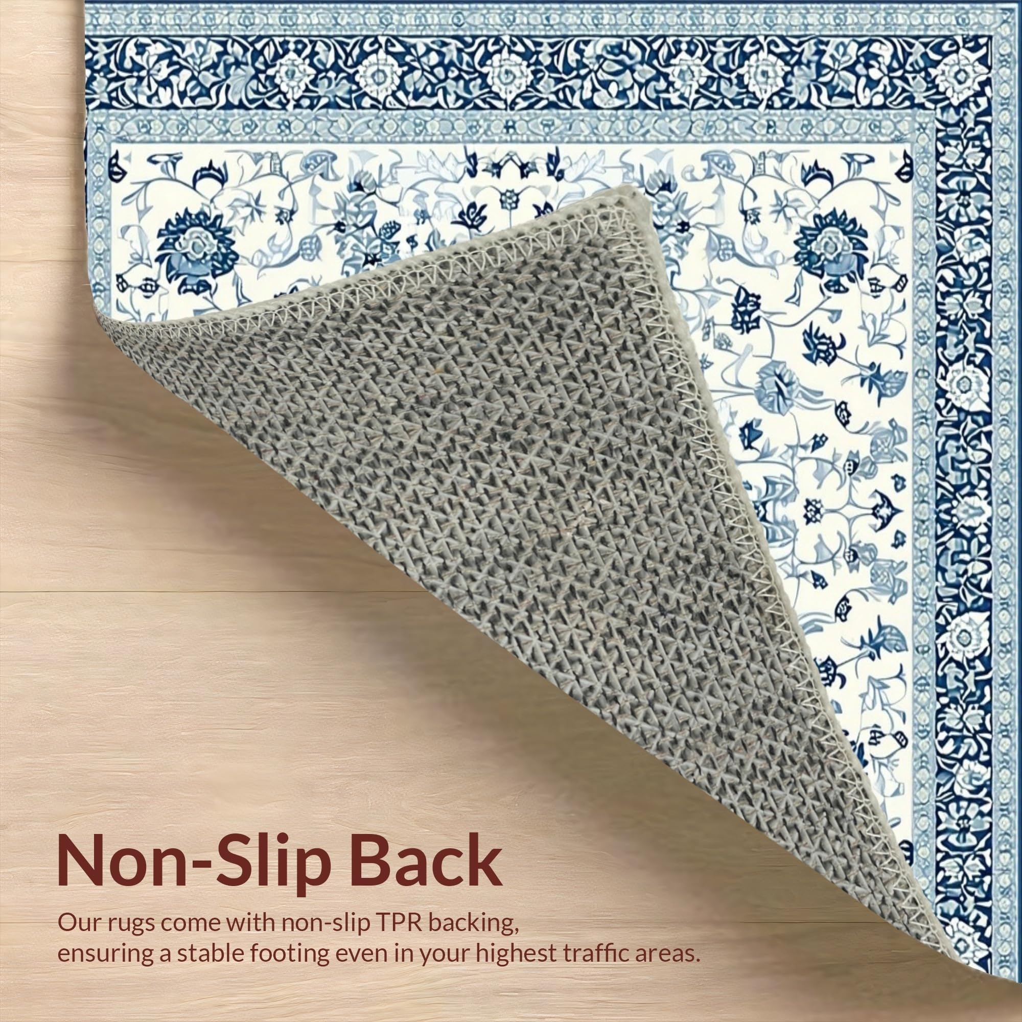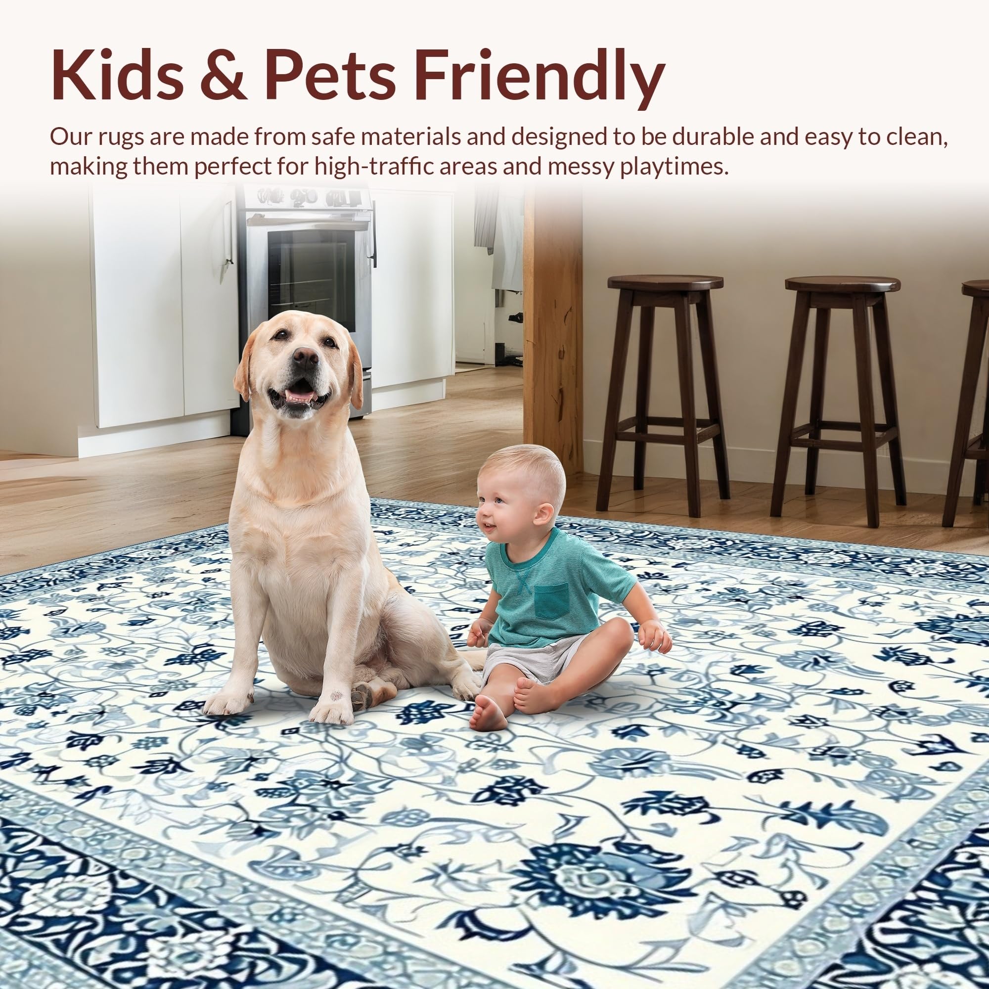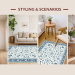 Ultra Soft Area Rug, Non Slip, Stain Resistant, Washable Area Rugs for Living Room, Bedroom, Luxurious Gray Floral Medallion(White) Overview: