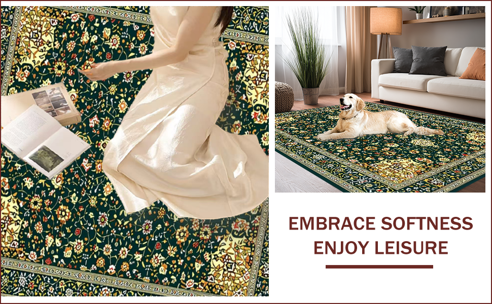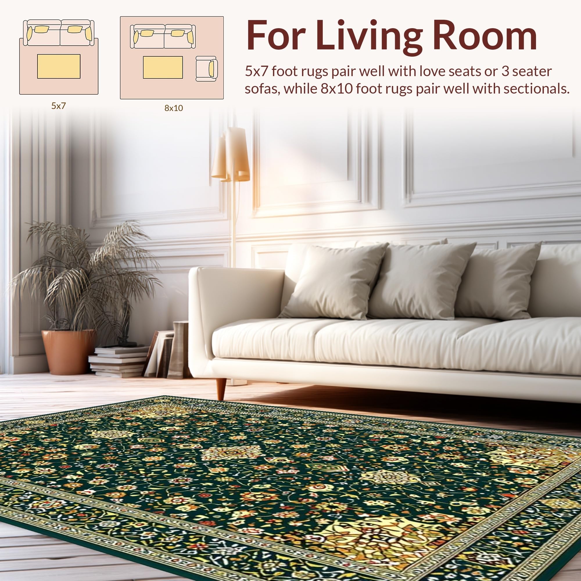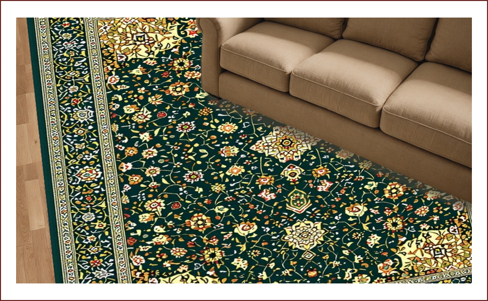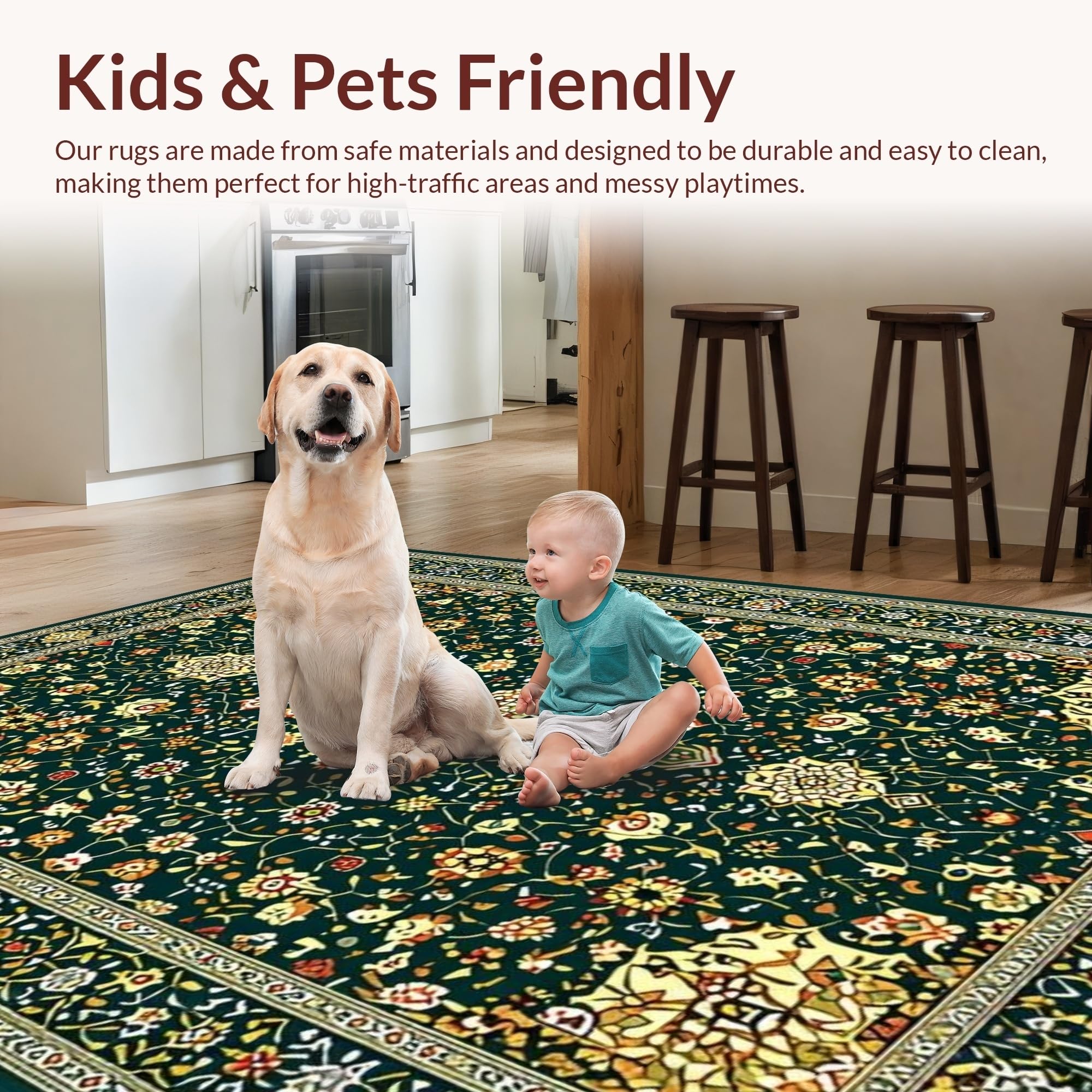 Ultra Soft Area Rug, Non Slip, Stain Resistant, Washable Area Rugs for Living Room, Bedroom, Luxurious Green Medallion Design(Green) Overview: