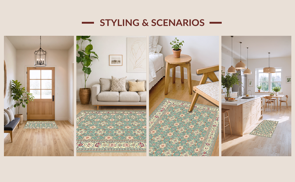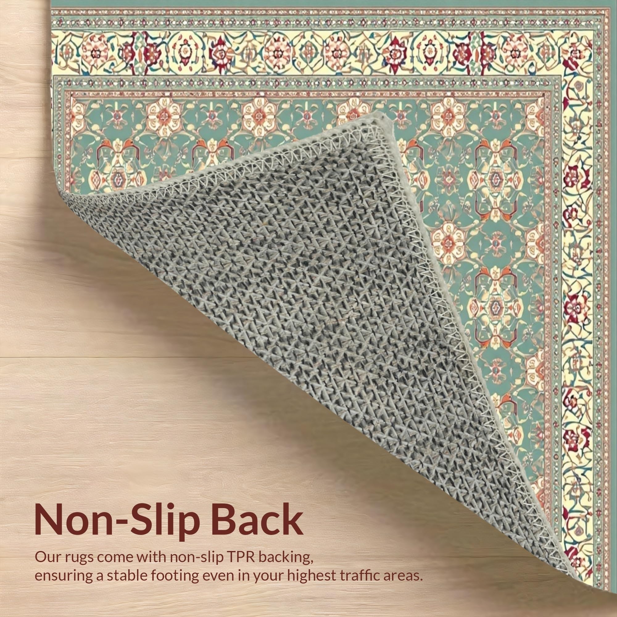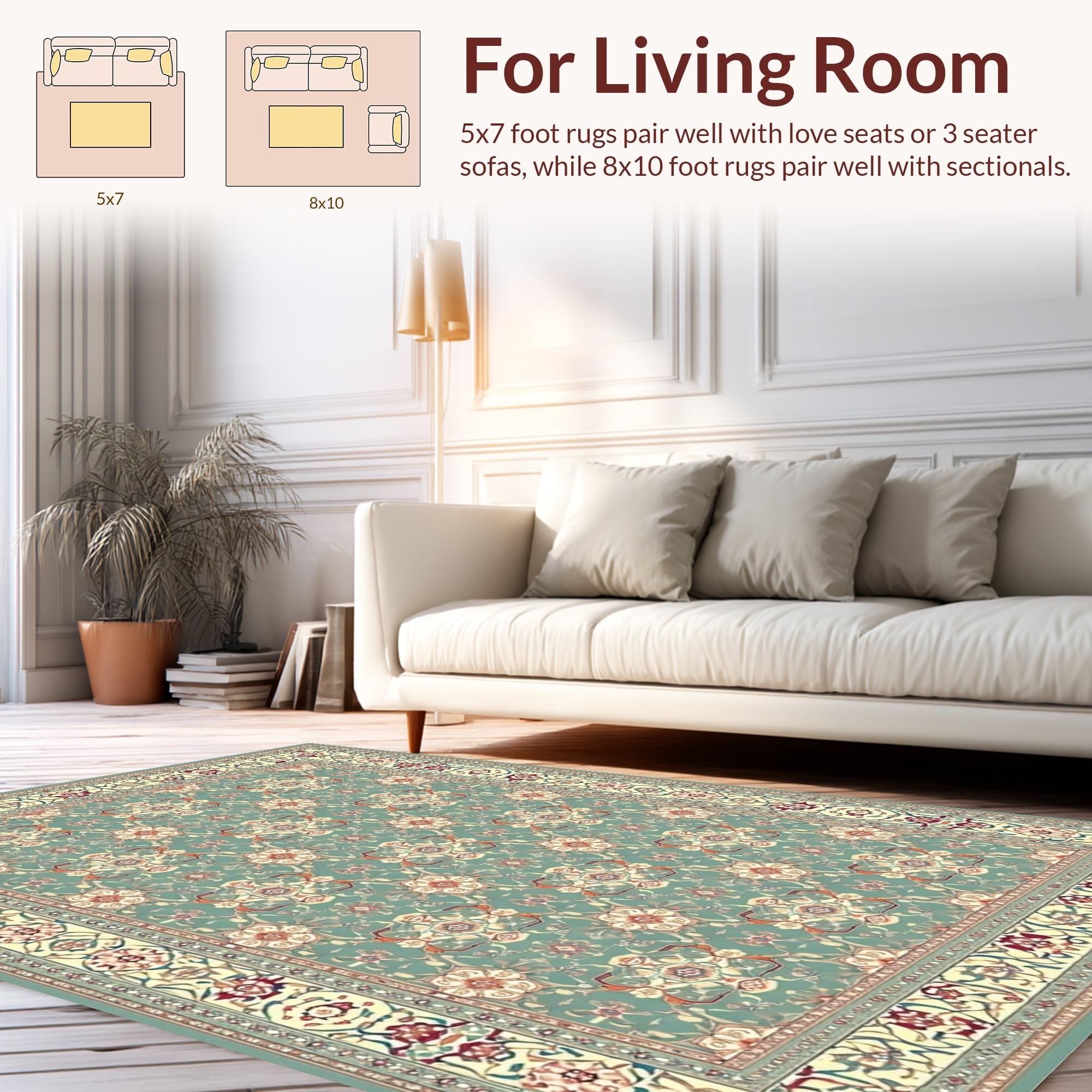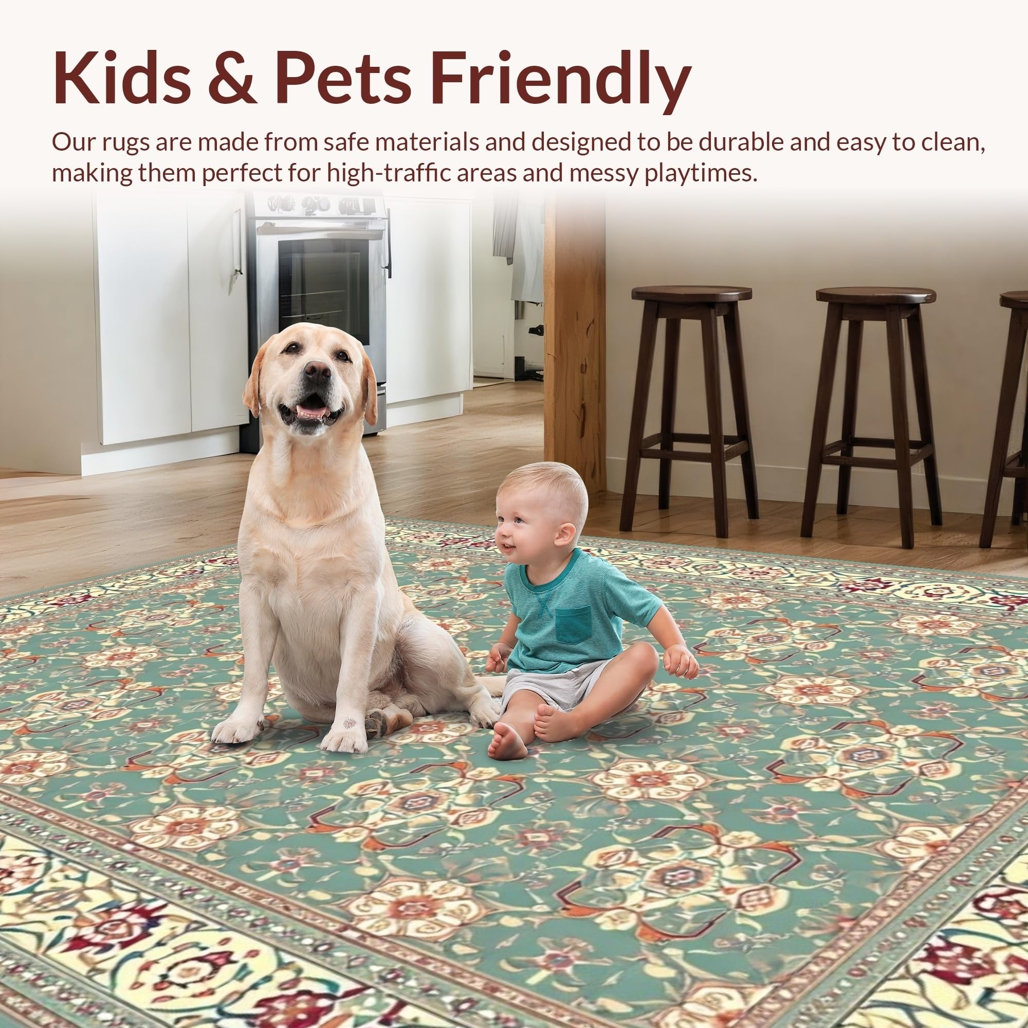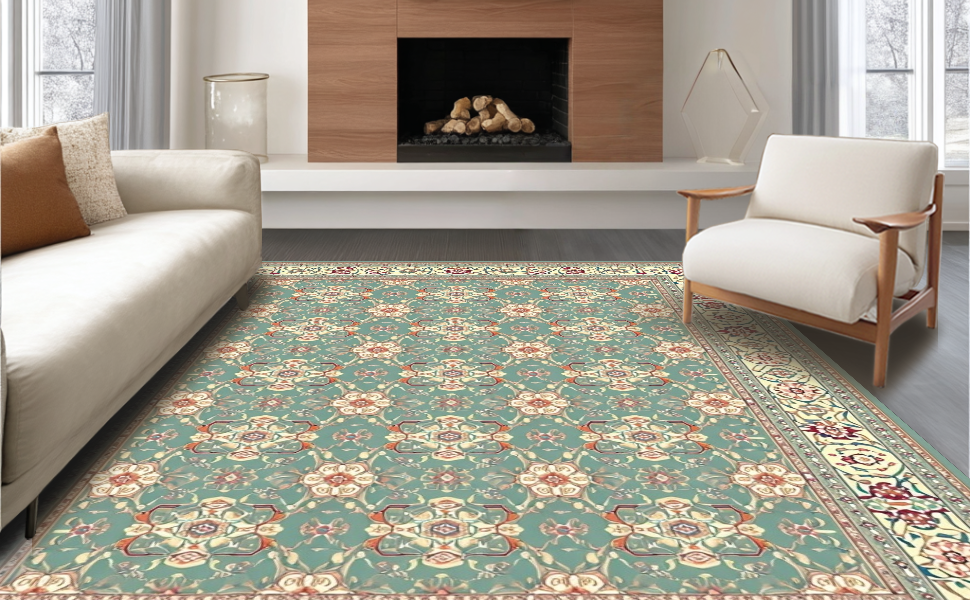 Ultra Soft Area Rug, Non Slip, Stain Resistant, Washable Area Rugs for Living Room, Bedroom, Luxurious Ivory Medallion Style(Beige) Overview: